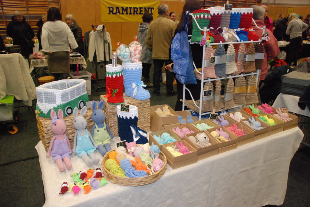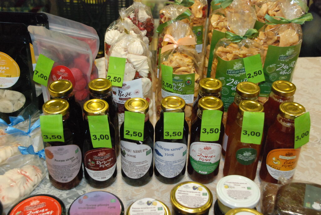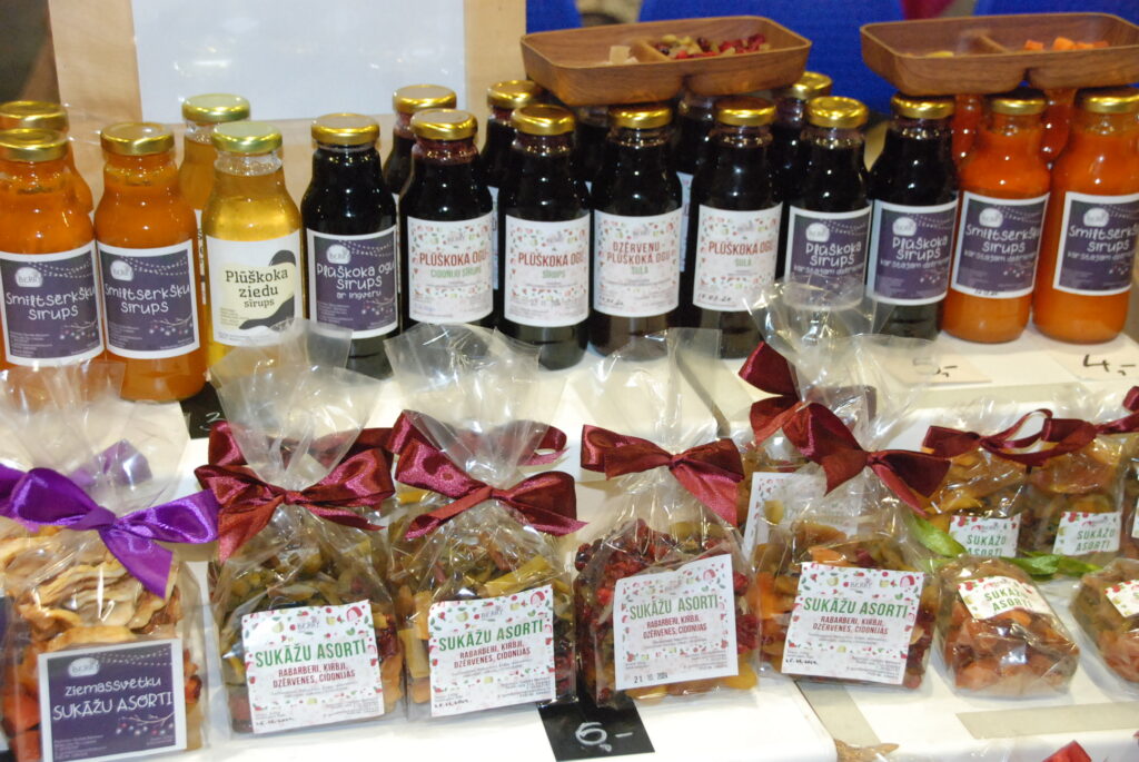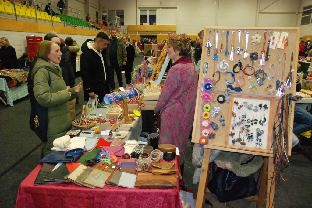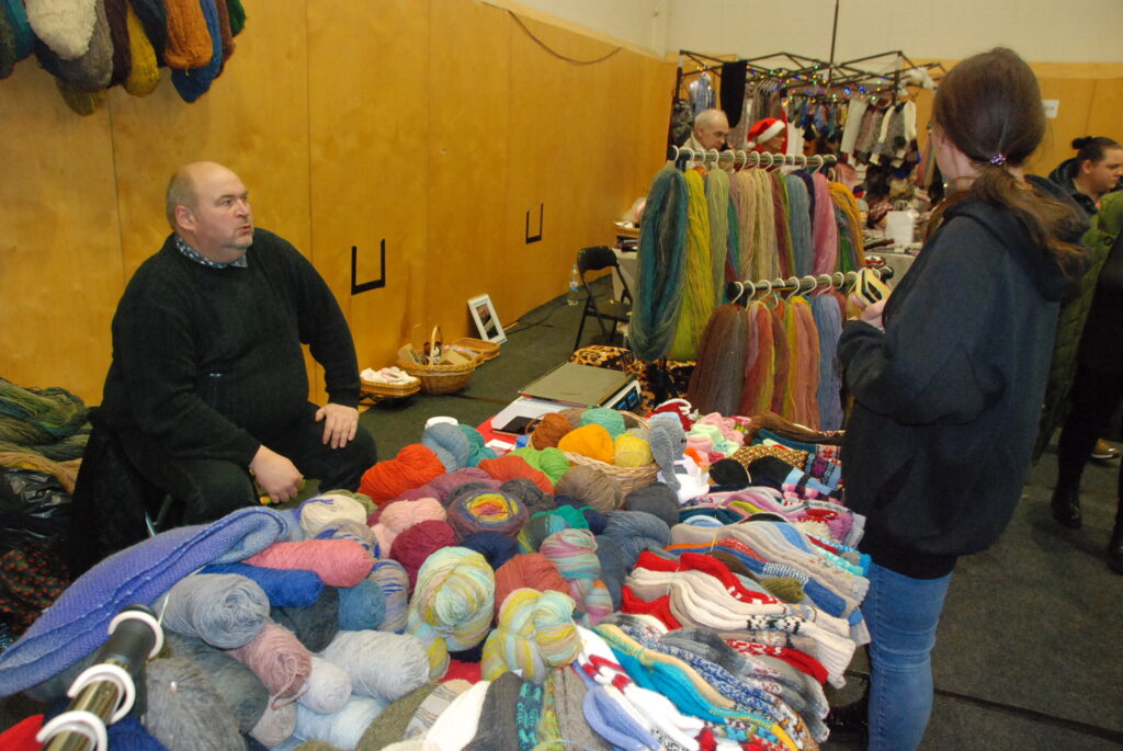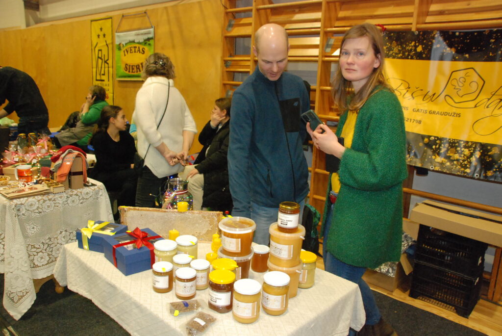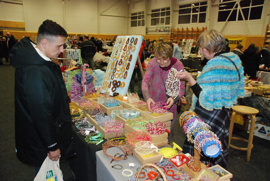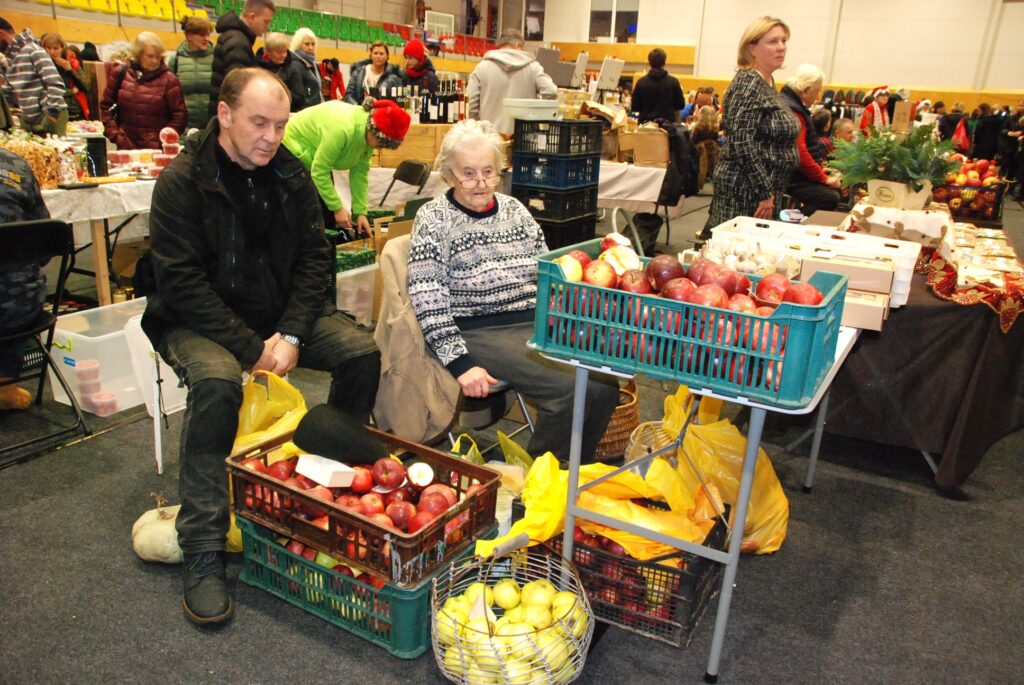 Grobiņas Sporta centra arēna bija piepildīta ar tirgotājiem, kuri piedāvāja gan dažādus gardumus, gan citas lietas gaidāmajiem Ziemassvētkiem.