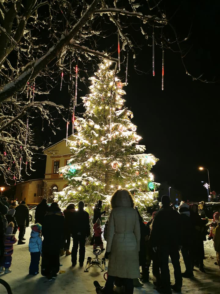 Svētdienas, 5. decembra, vakarā Dienvidkurzemes novada administratīvajā centrā Grobiņā tika iedegta Ziemassvētku egle.