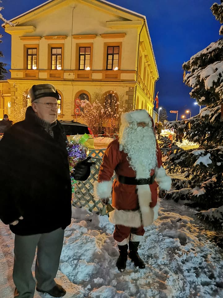 FOTO: Grobiņā kopā ar Ziemassvētku vecīti iededz egli