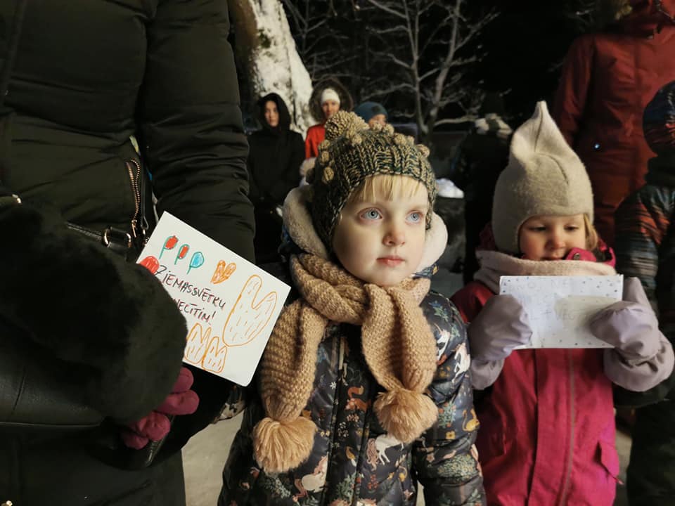 Iedegšanas mirklī klāt bija arī Rūķupes rūķi un Ziemassvētku vecītis, informē Dienvidkurzemes novada pašvaldība.