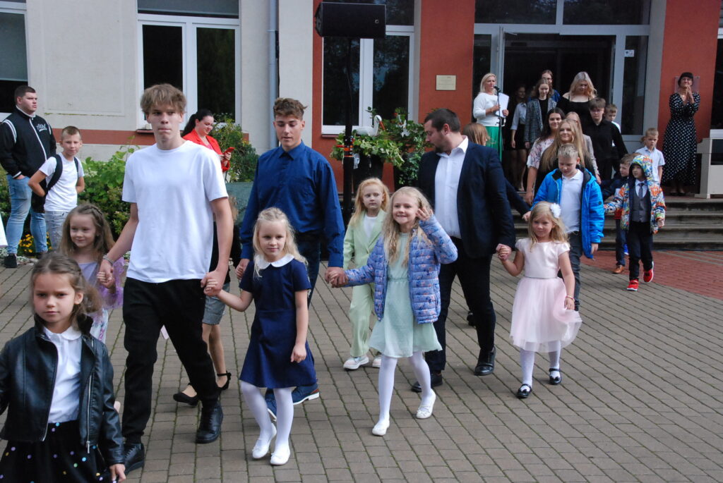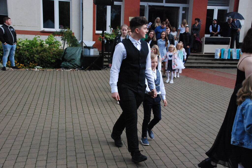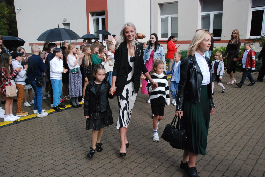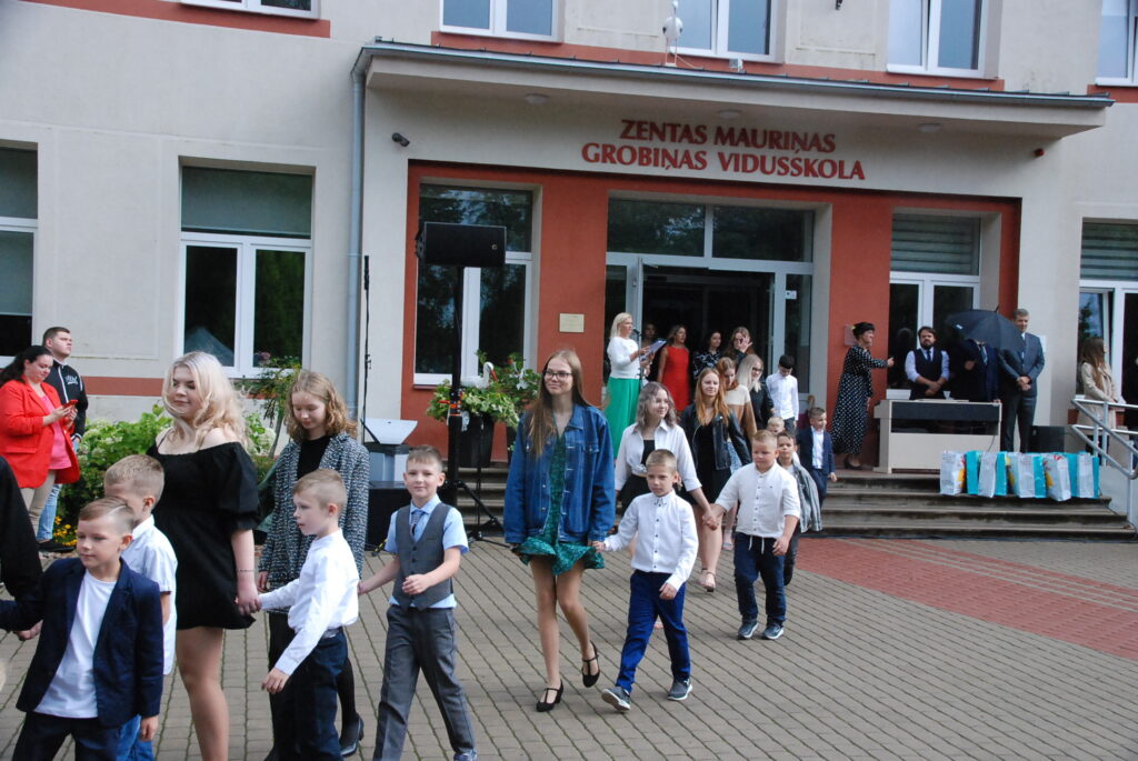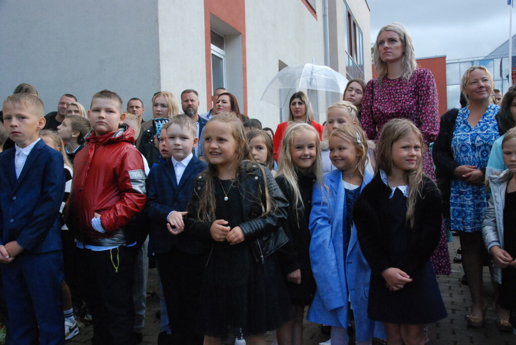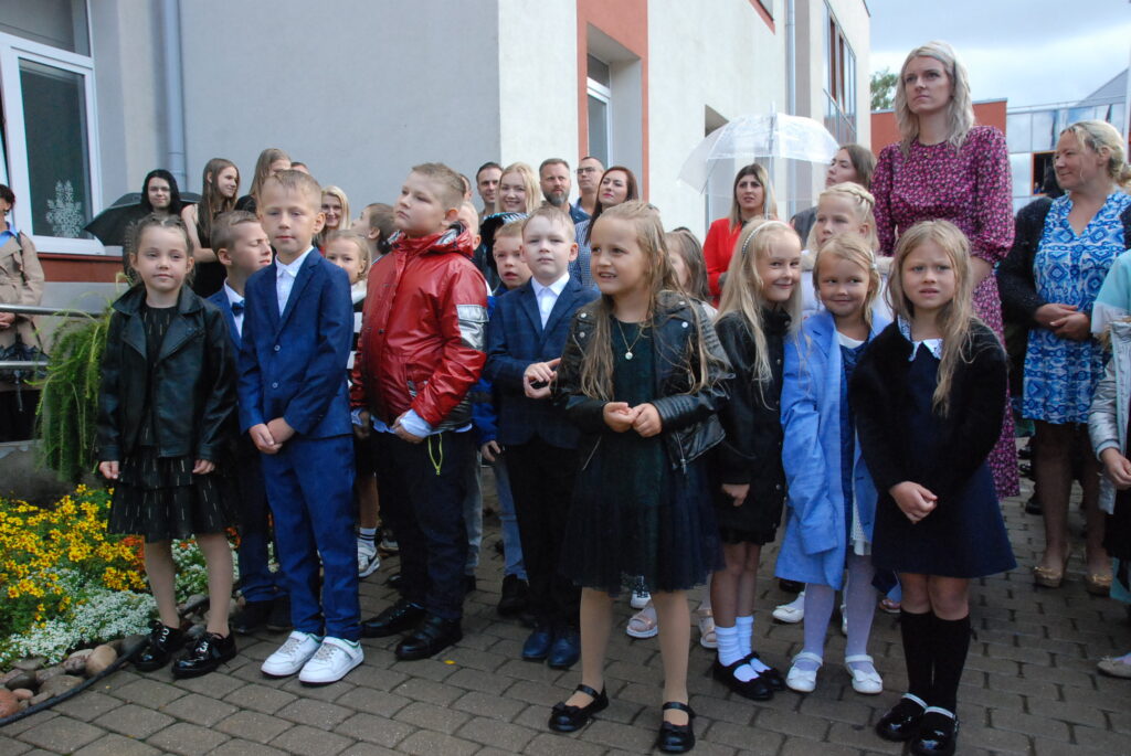 Zentas Mauriņas Grobiņas vidusskolas 1. septembra svinīgajā pasākumā skolēnus šogad laikapstākļi nelutināja.