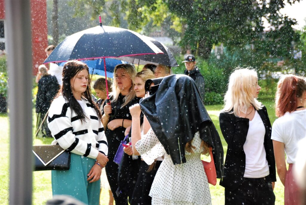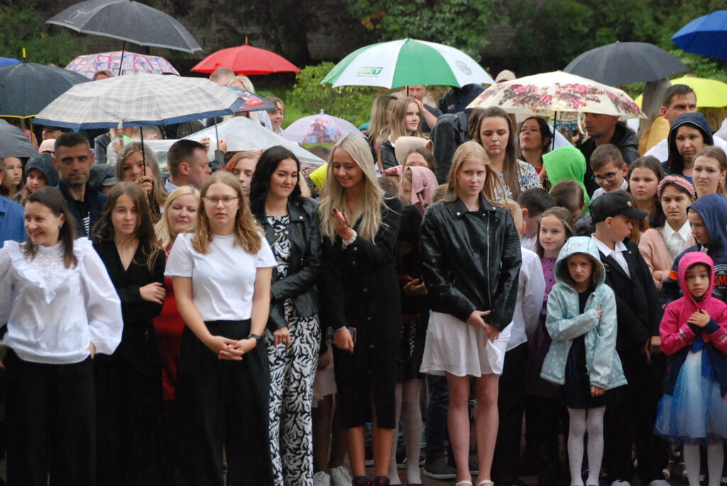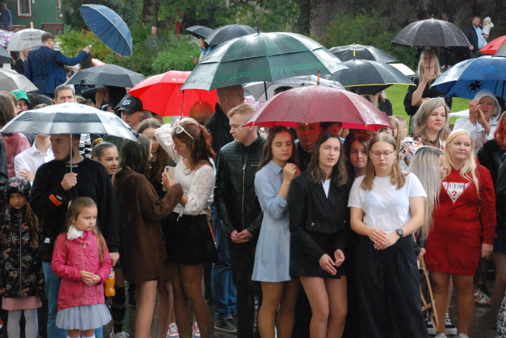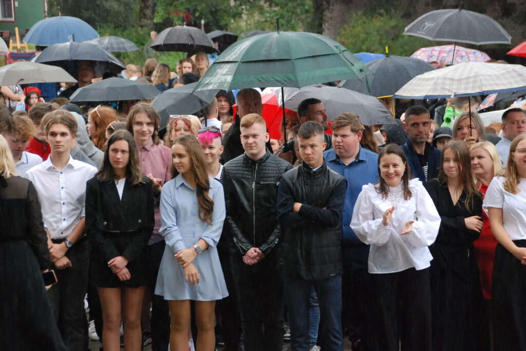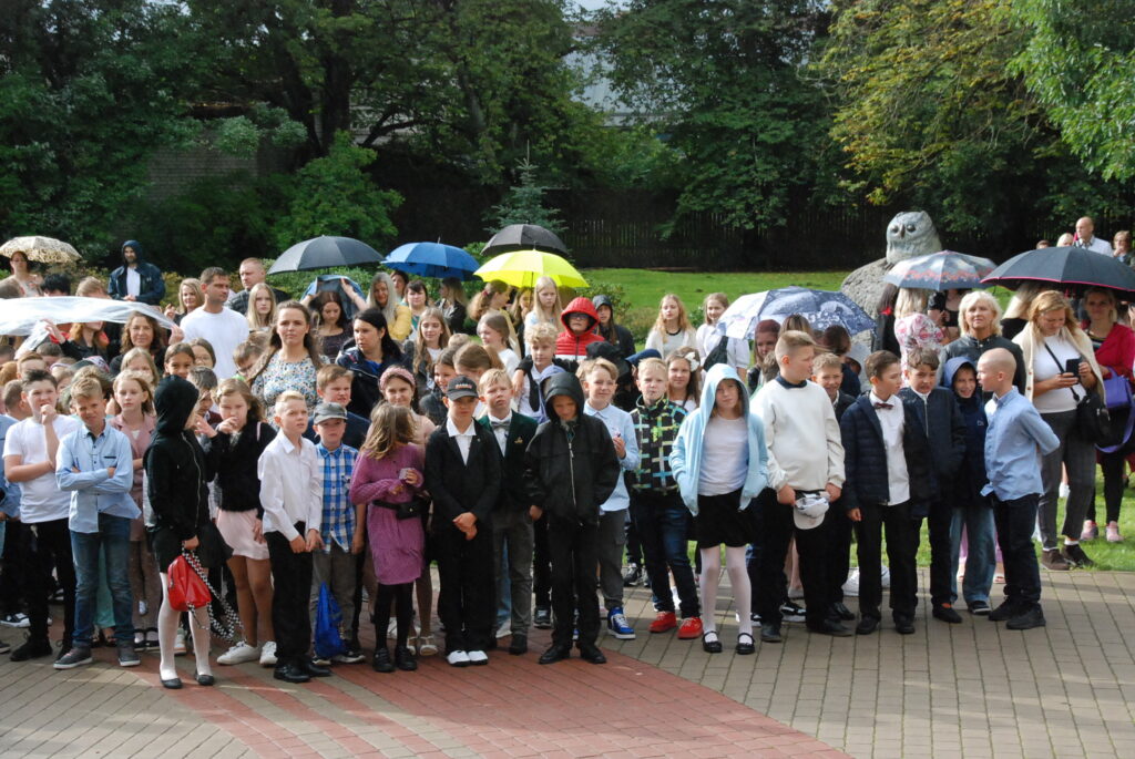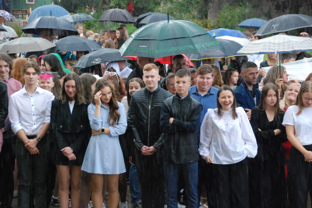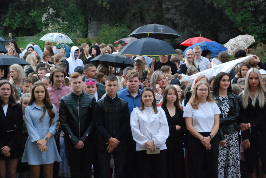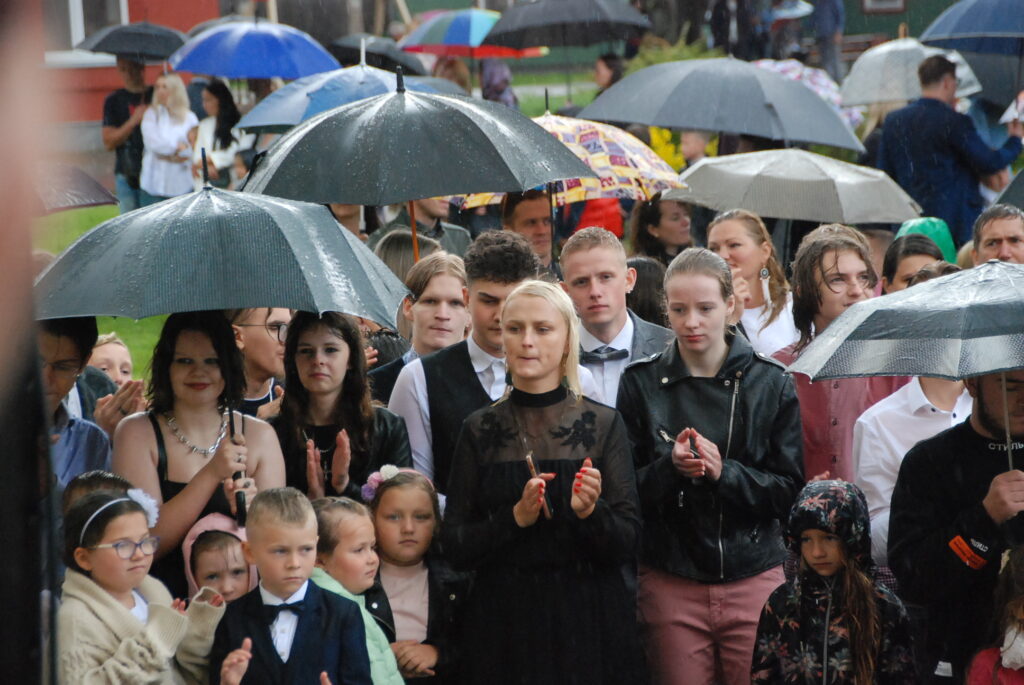 Svinīgo runu un apsveikumu laikā lietus nerimās un tika sagaidīta arī lietusgāze, kas daudzus skolēnus pamatīgi izmērcēja.