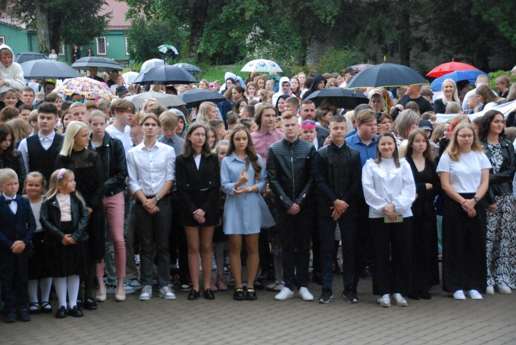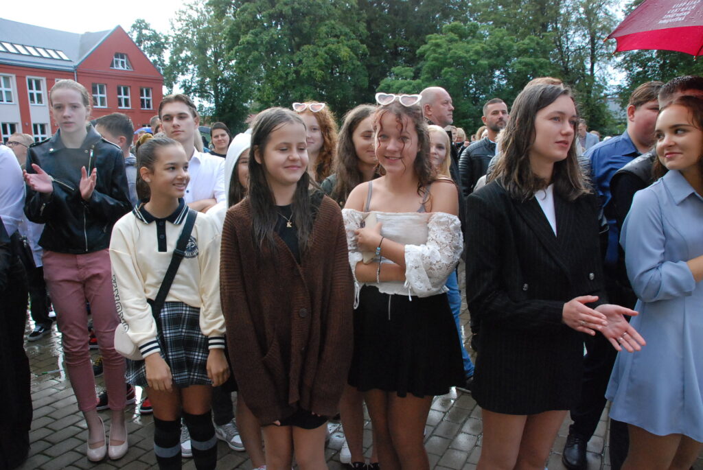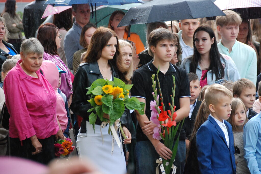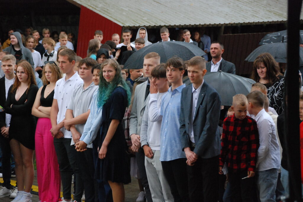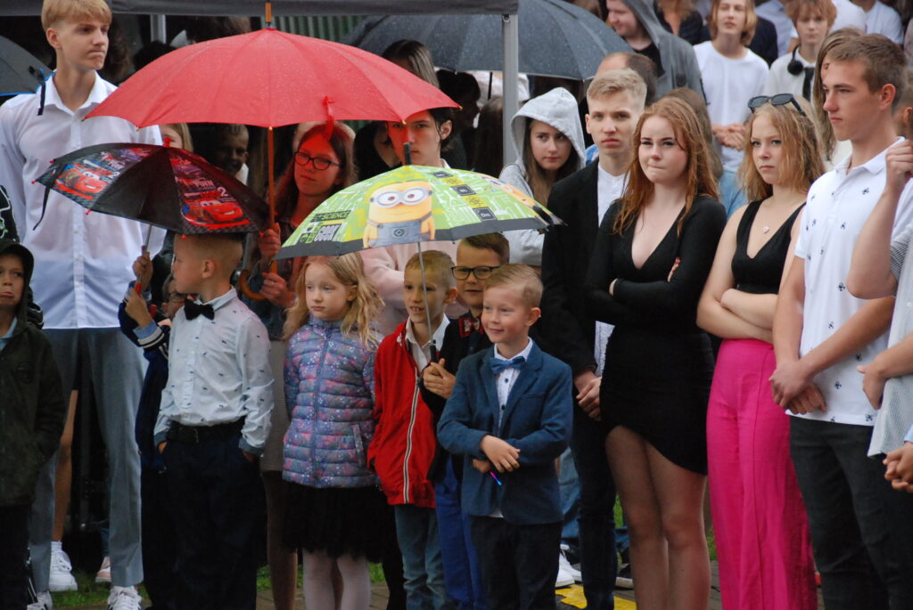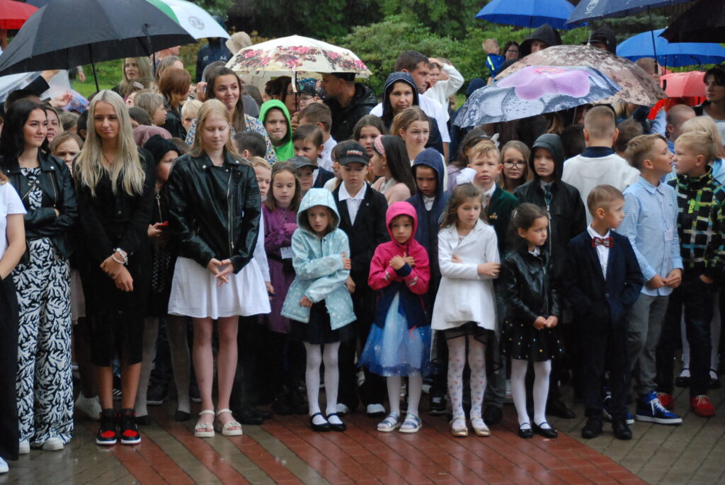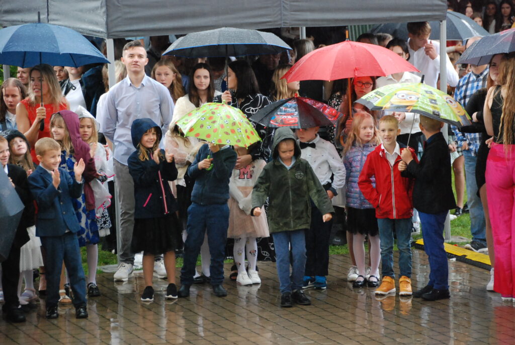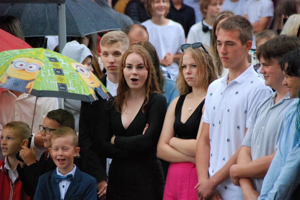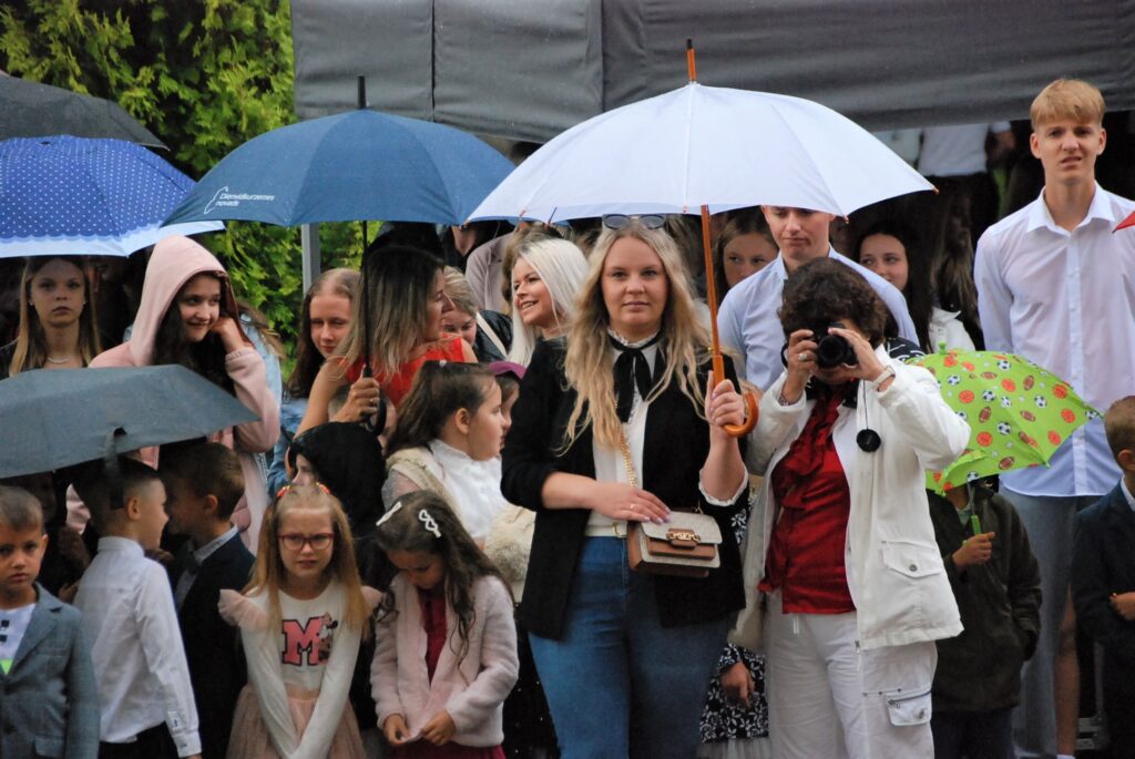 Svinīgo runu un apsveikumu laikā lietus nerimās un tika sagaidīta arī lietusgāze, kas daudzus skolēnus pamatīgi izmērcēja.
