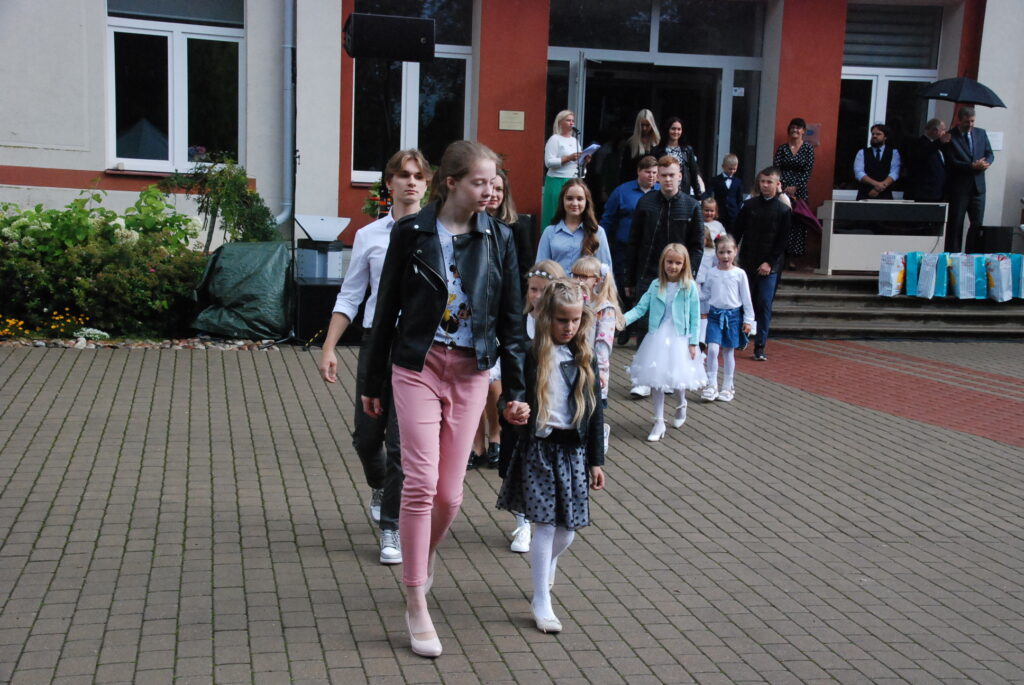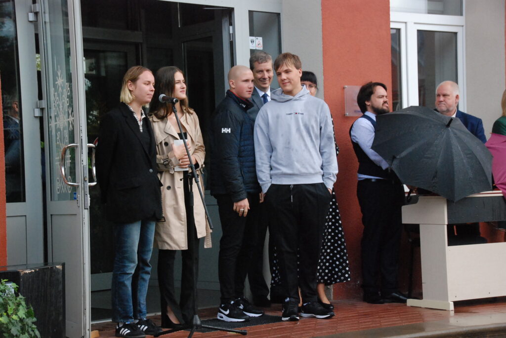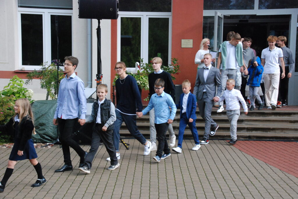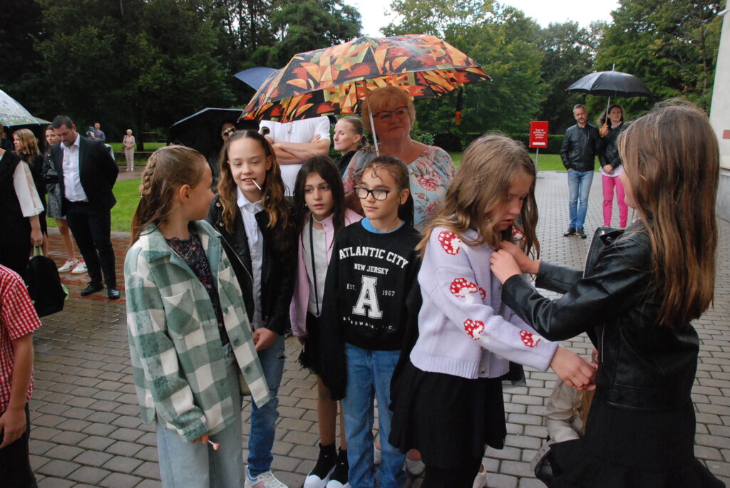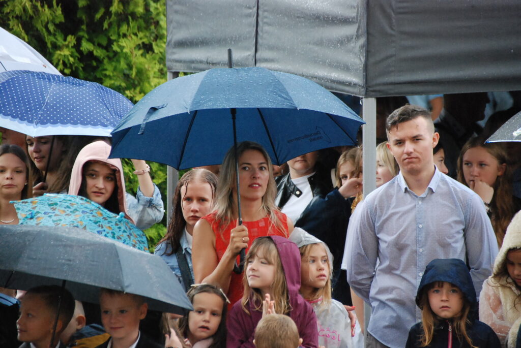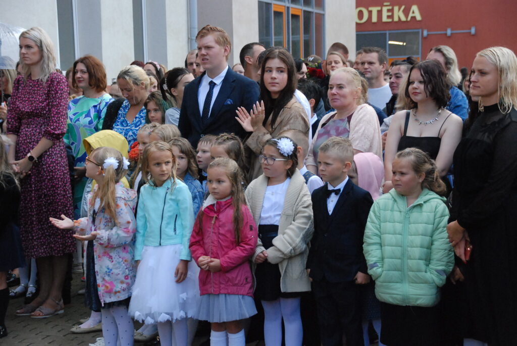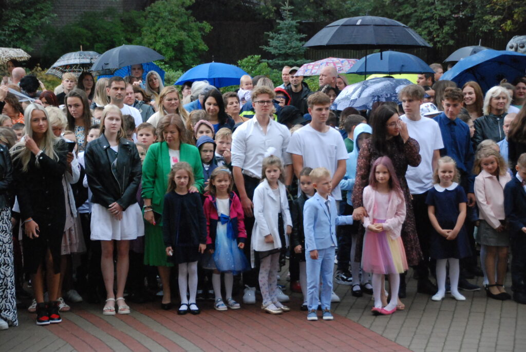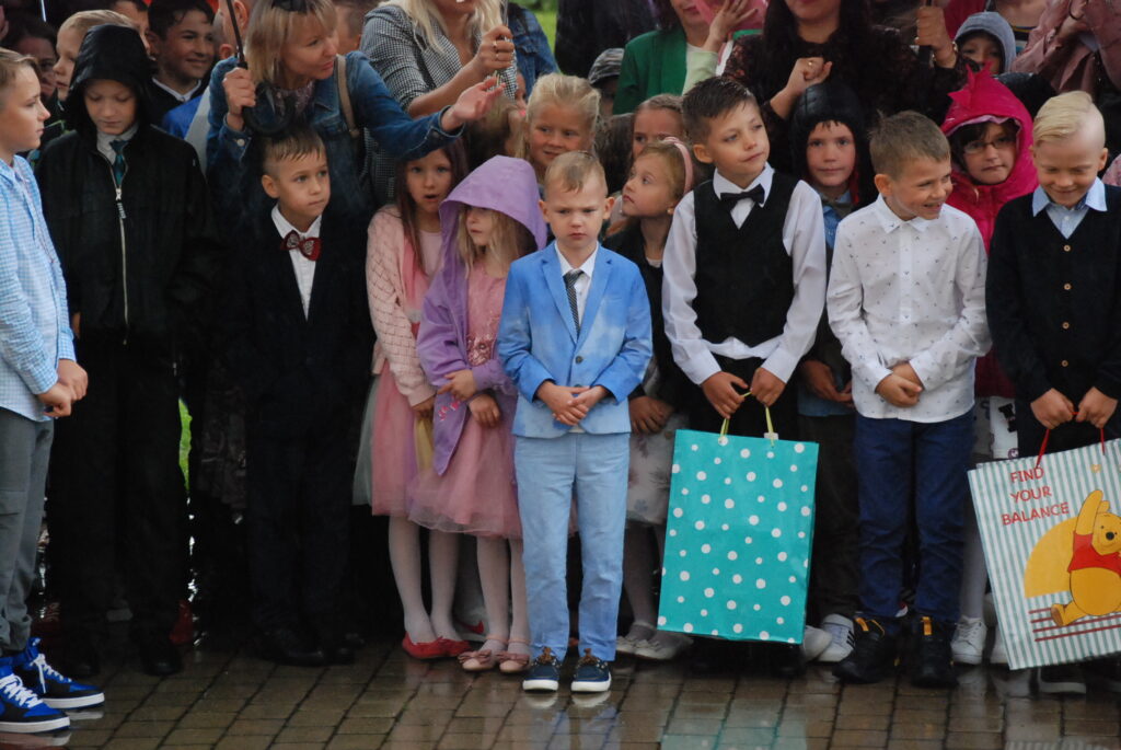 Svinīgo runu un apsveikumu laikā lietus nerimās un tika sagaidīta arī lietusgāze, kas daudzus skolēnus pamatīgi izmērcēja.