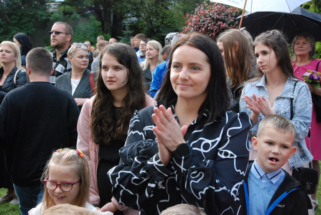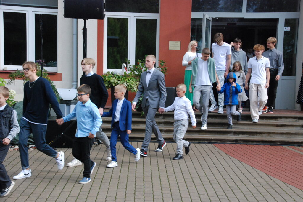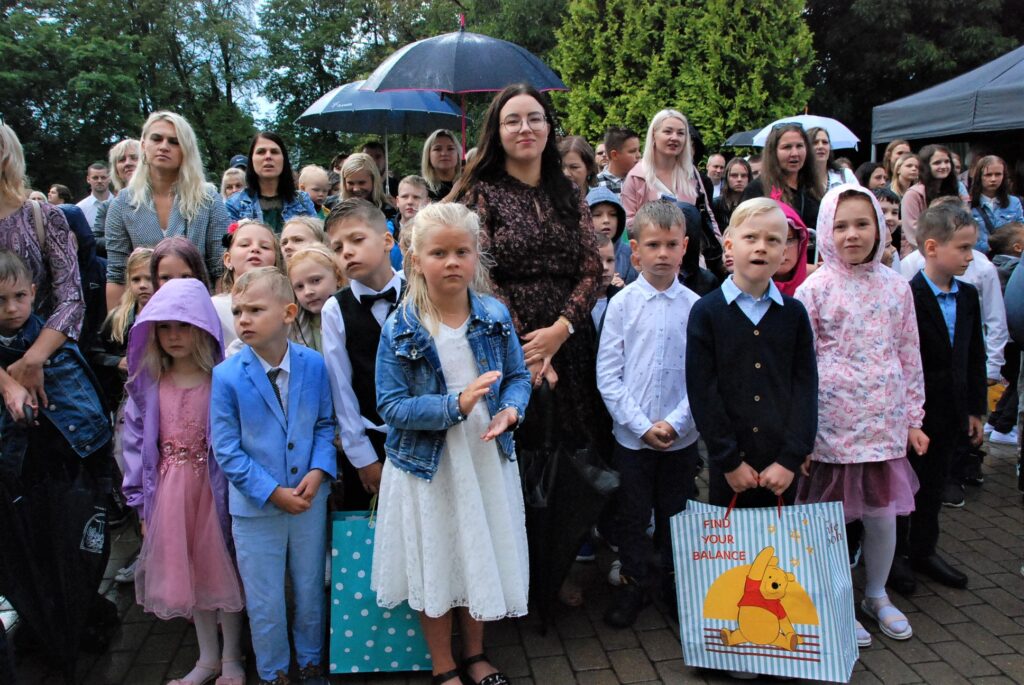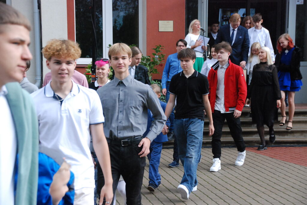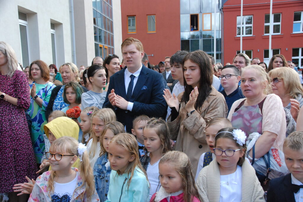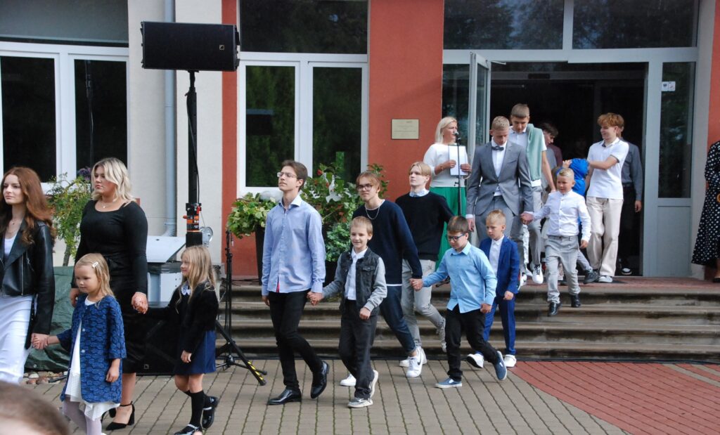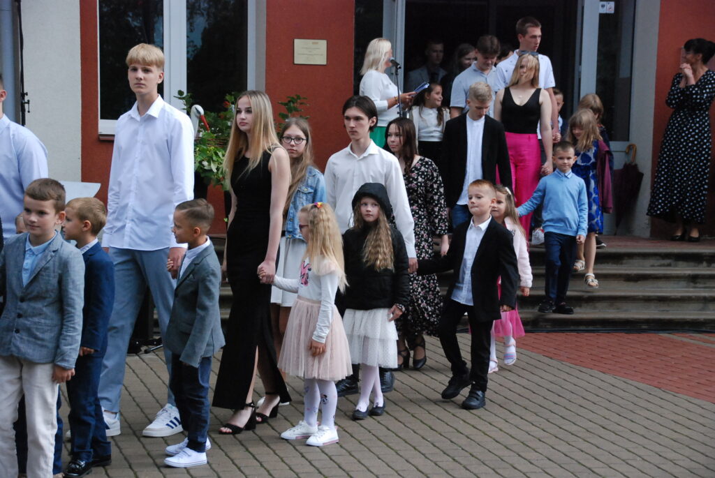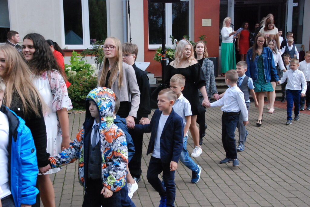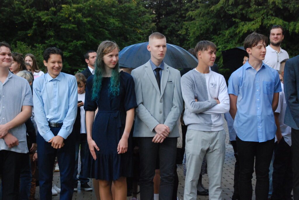 Svinīgo runu un apsveikumu laikā lietus nerimās un tika sagaidīta arī lietusgāze, kas daudzus skolēnus pamatīgi izmērcēja.