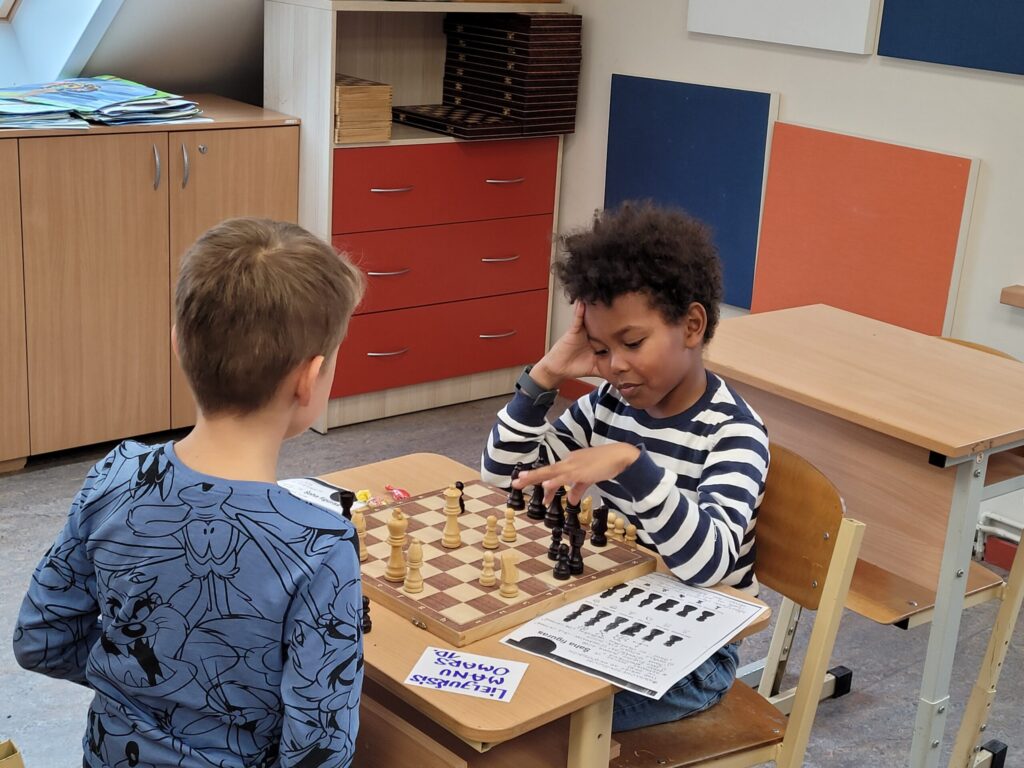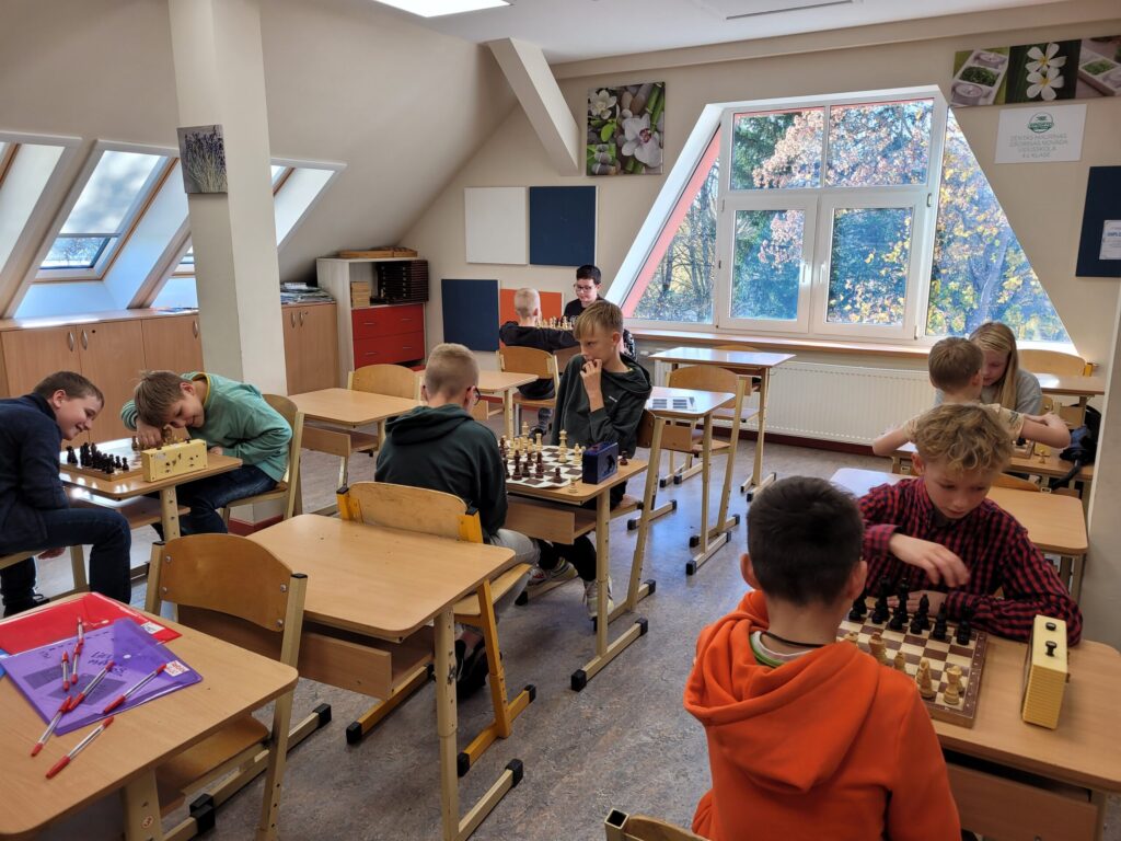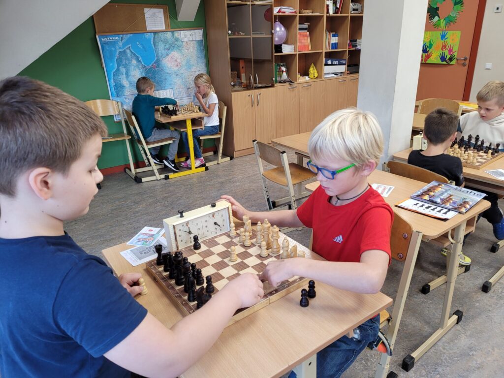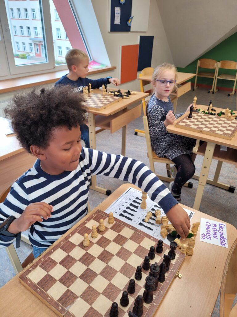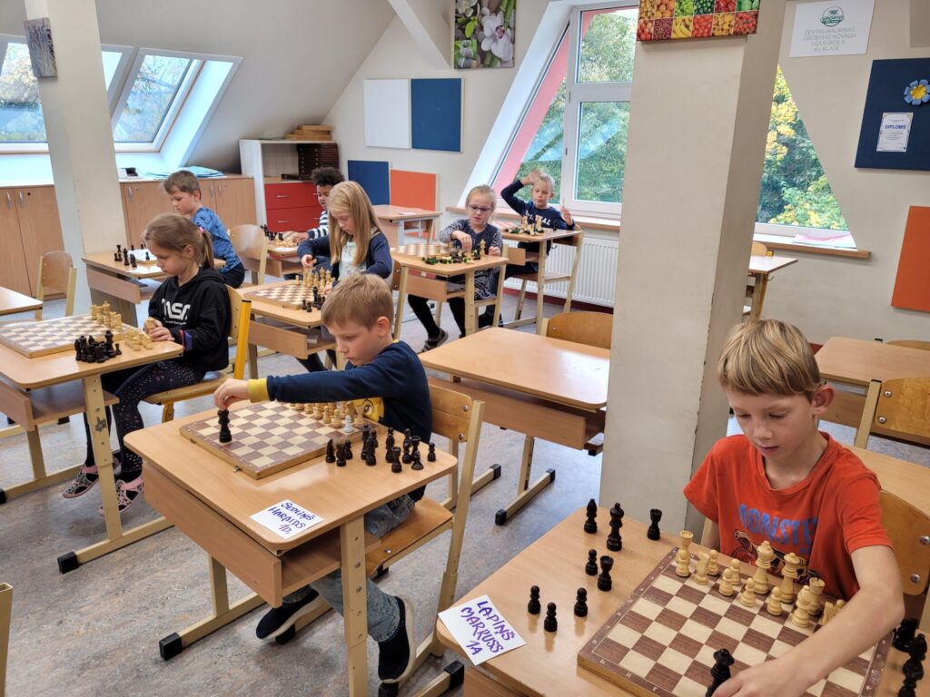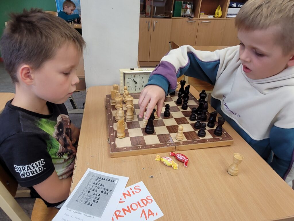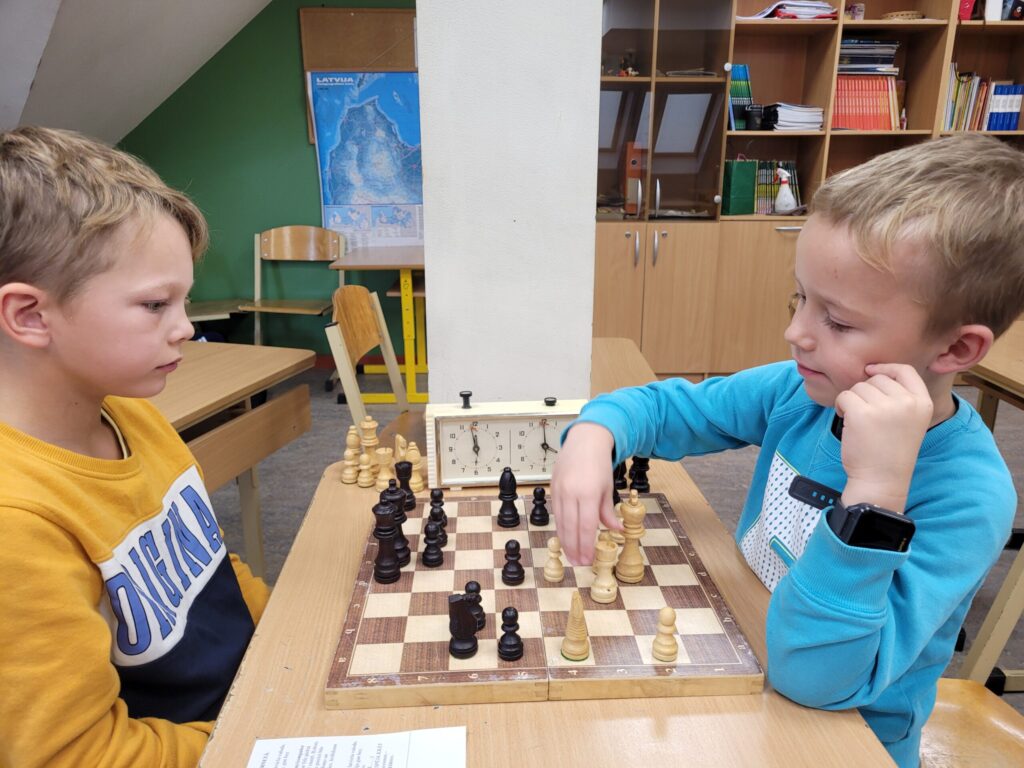 Gustavs Baumanis (8b. klase) un Eduards Vārna (8a. klase) 16. novembrī startēja Liepājas Kompleksās sporta skolas atklātajā čempionātā 3.sporta klasēm, kur pārējie konkurenti bija Liepājas un Kuldīgas sporta skolu audzēkņi. Gustavs bija tuvu, tuvu otrās vietas medaļai. “Ja būtu bijusi veiksme un uzvara pēdējā, izšķirošajā spēlē, tad godpilnā sudraba medaļa. Zēni cīnījās braši,” savus šahistus uzslavē R. Bērziņa.