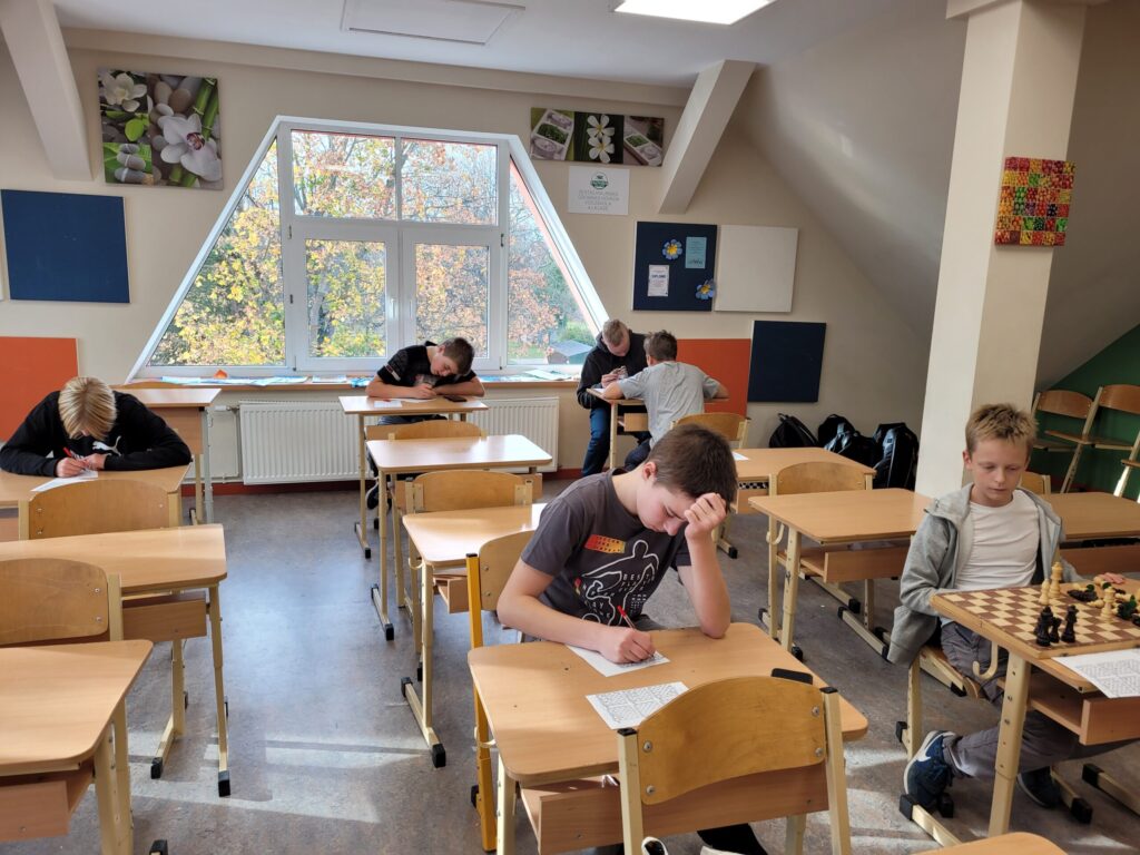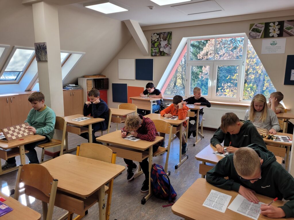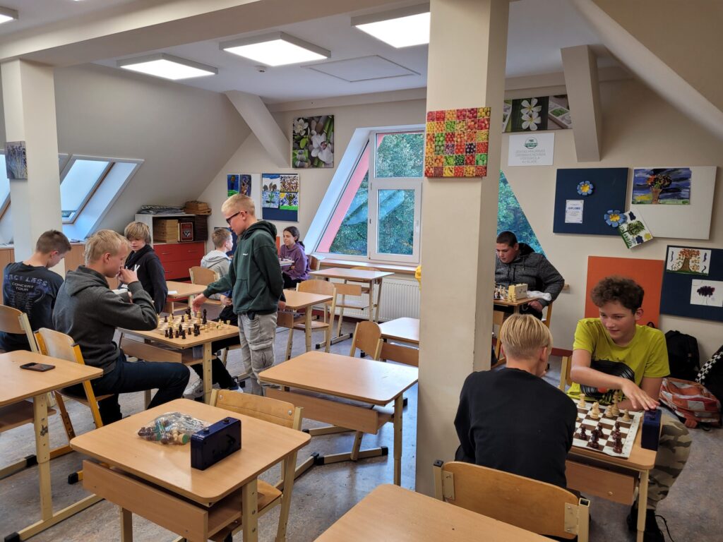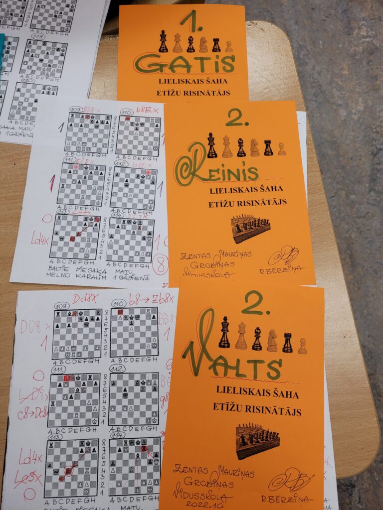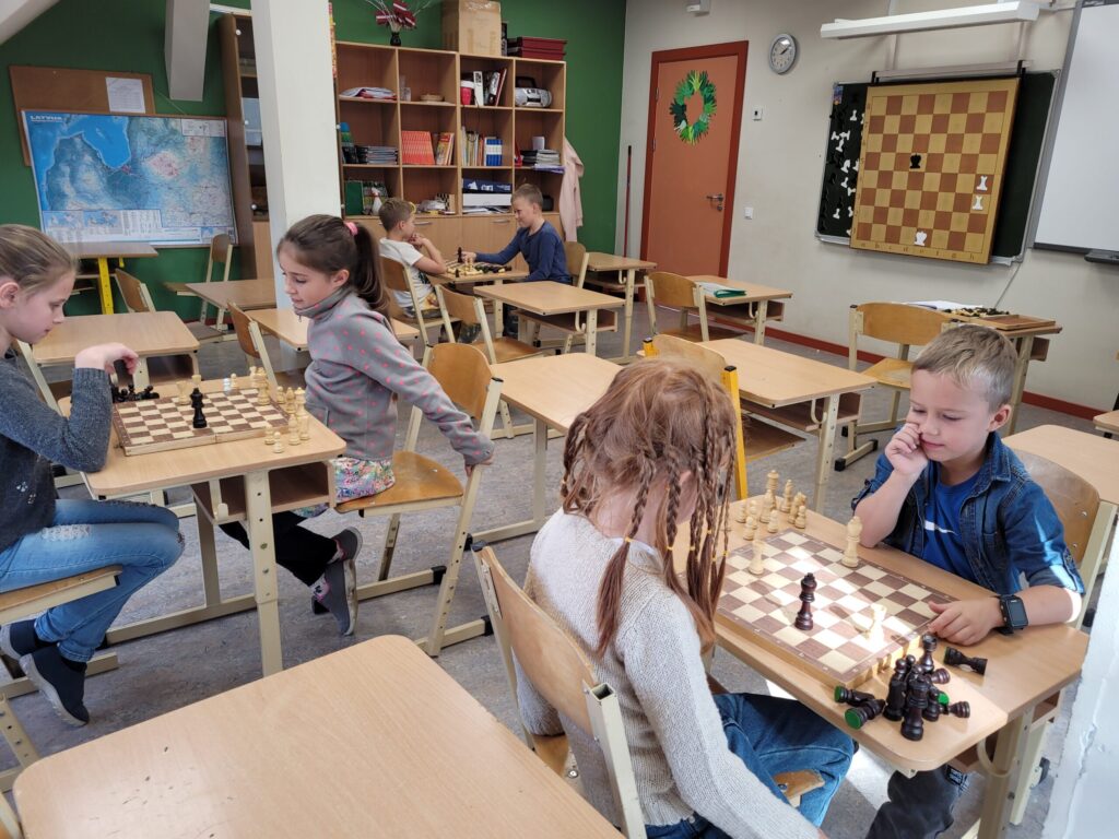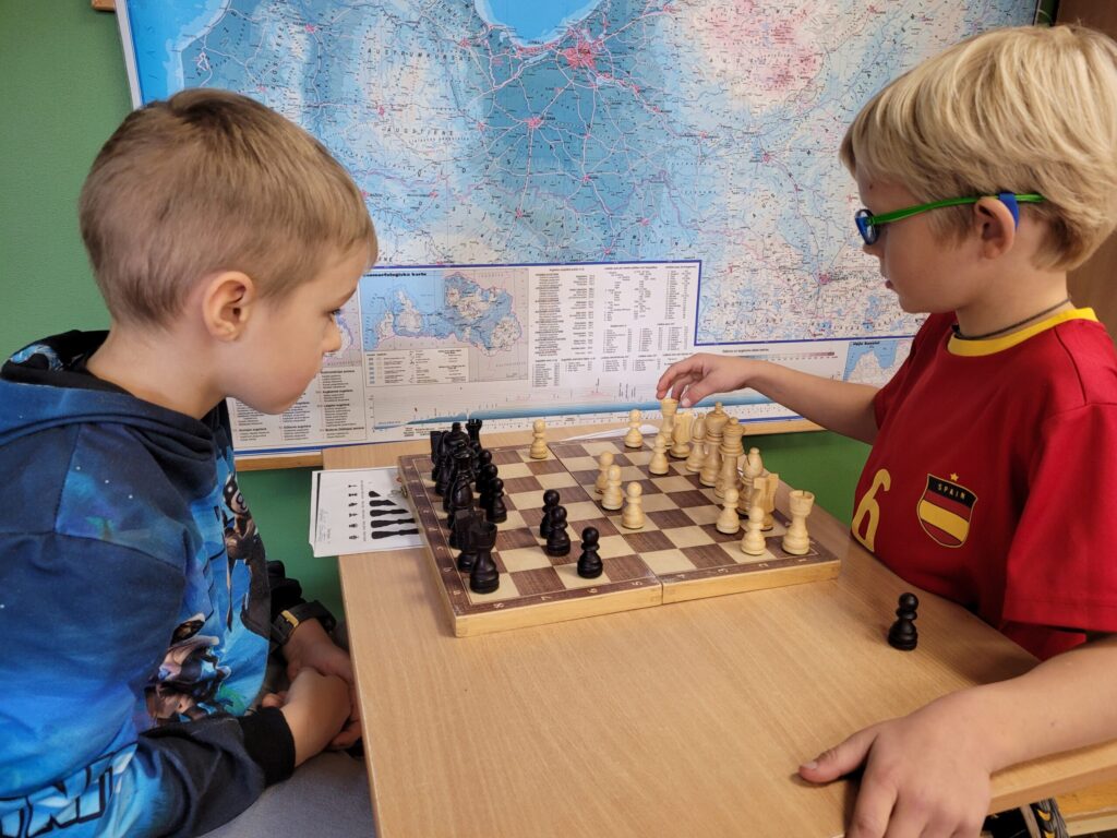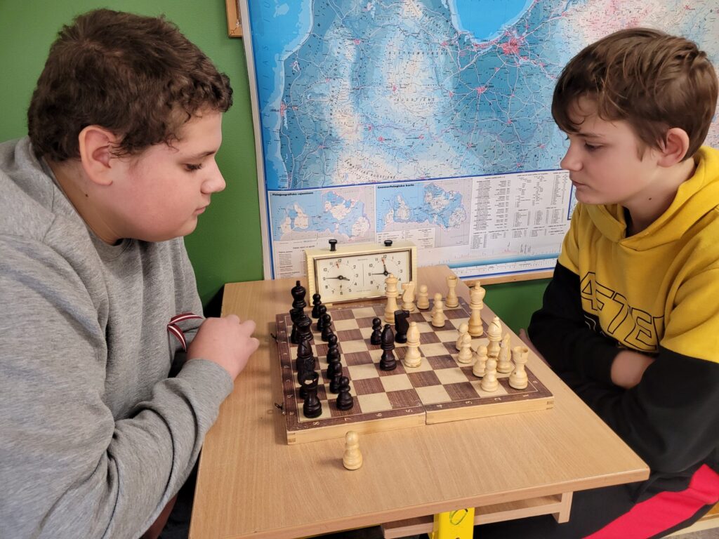 Gustavs Baumanis (8b. klase) un Eduards Vārna (8a. klase) 16. novembrī startēja Liepājas Kompleksās sporta skolas atklātajā čempionātā 3.sporta klasēm, kur pārējie konkurenti bija Liepājas un Kuldīgas sporta skolu audzēkņi. Gustavs bija tuvu, tuvu otrās vietas medaļai. “Ja būtu bijusi veiksme un uzvara pēdējā, izšķirošajā spēlē, tad godpilnā sudraba medaļa. Zēni cīnījās braši,” savus šahistus uzslavē R. Bērziņa.