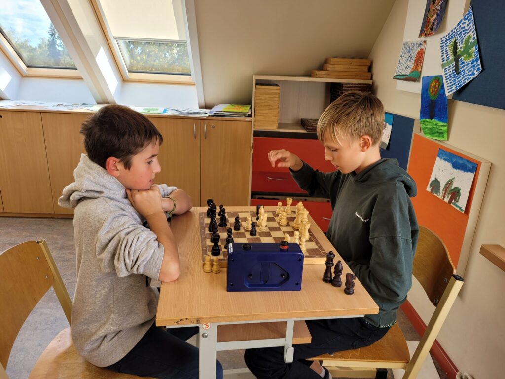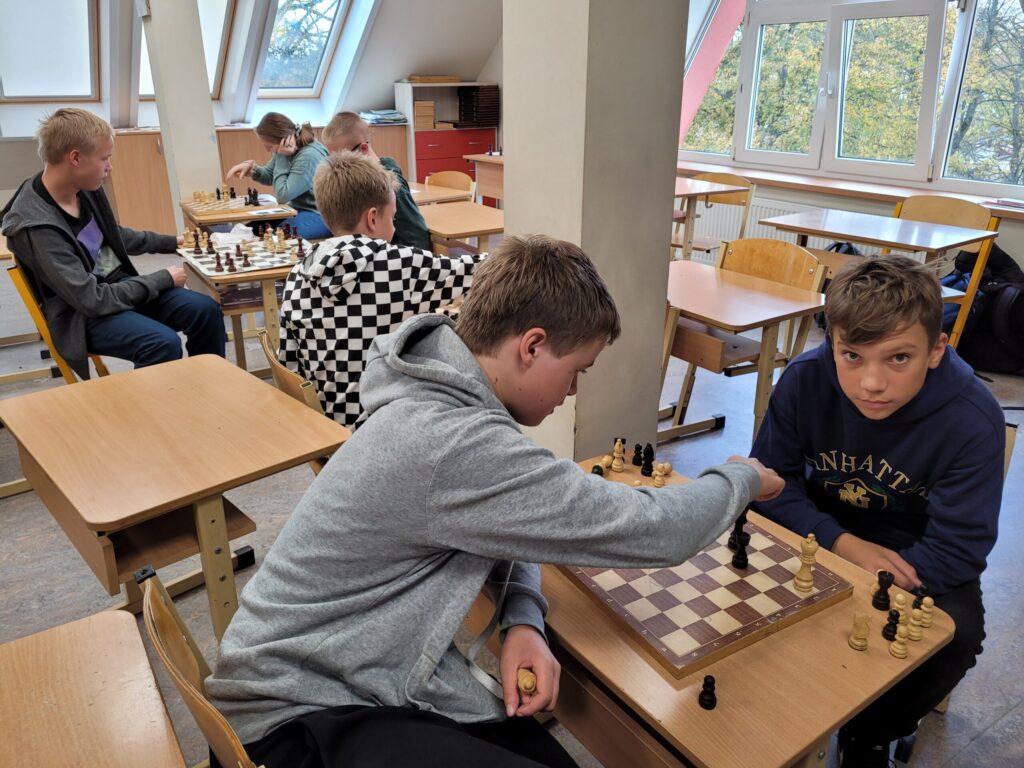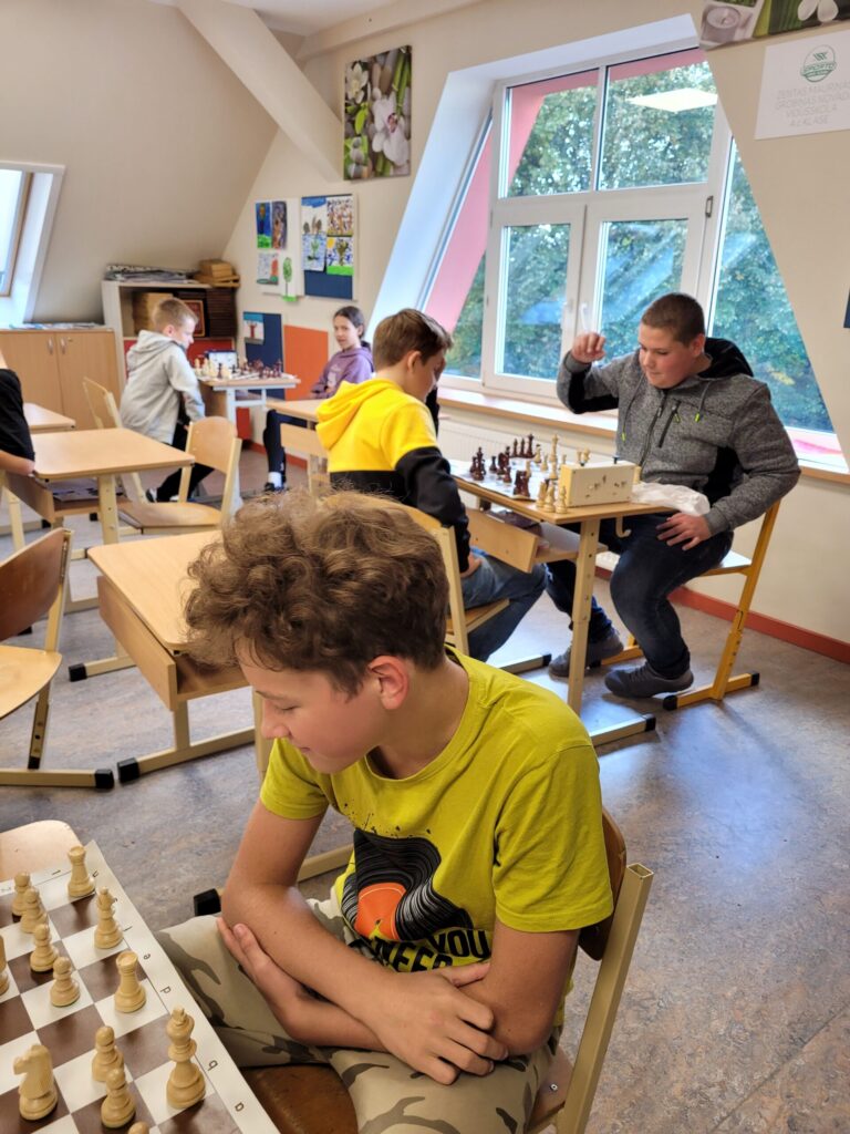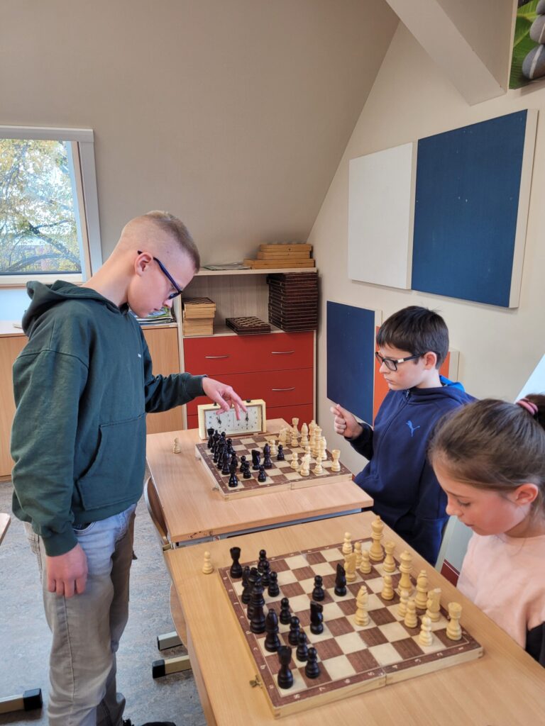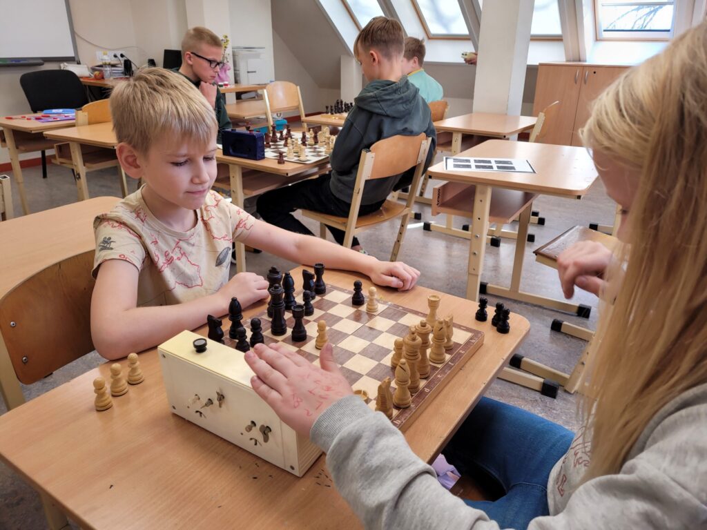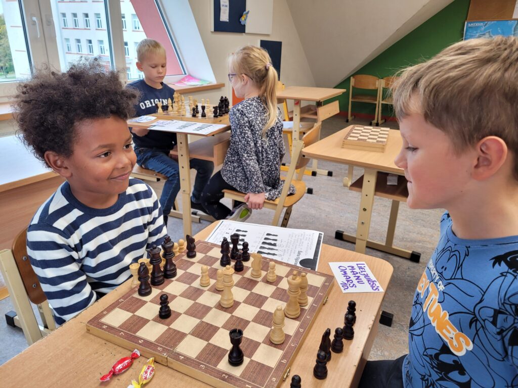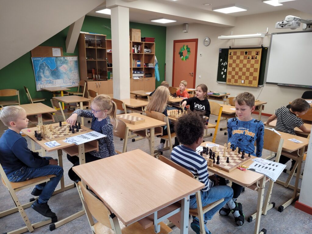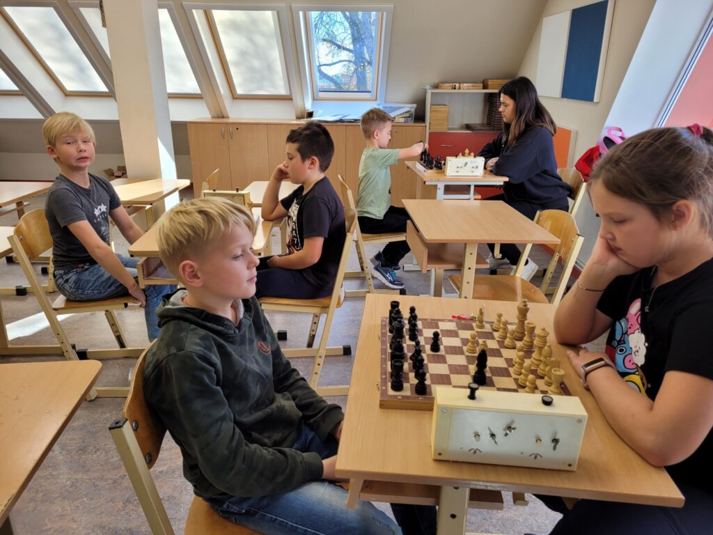 Gustavs Baumanis (8b. klase) un Eduards Vārna (8a. klase) 16. novembrī startēja Liepājas Kompleksās sporta skolas atklātajā čempionātā 3.sporta klasēm, kur pārējie konkurenti bija Liepājas un Kuldīgas sporta skolu audzēkņi. Gustavs bija tuvu, tuvu otrās vietas medaļai. “Ja būtu bijusi veiksme un uzvara pēdējā, izšķirošajā spēlē, tad godpilnā sudraba medaļa. Zēni cīnījās braši,” savus šahistus uzslavē R. Bērziņa.