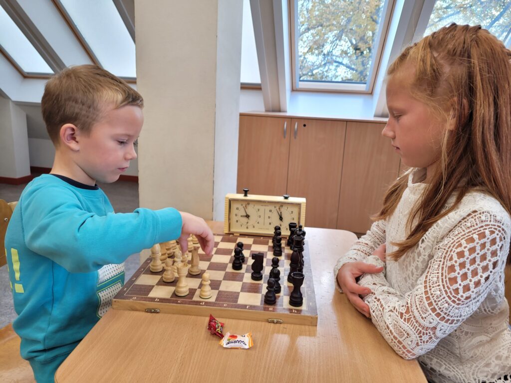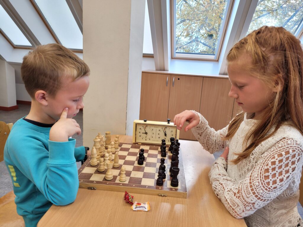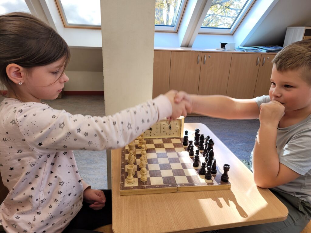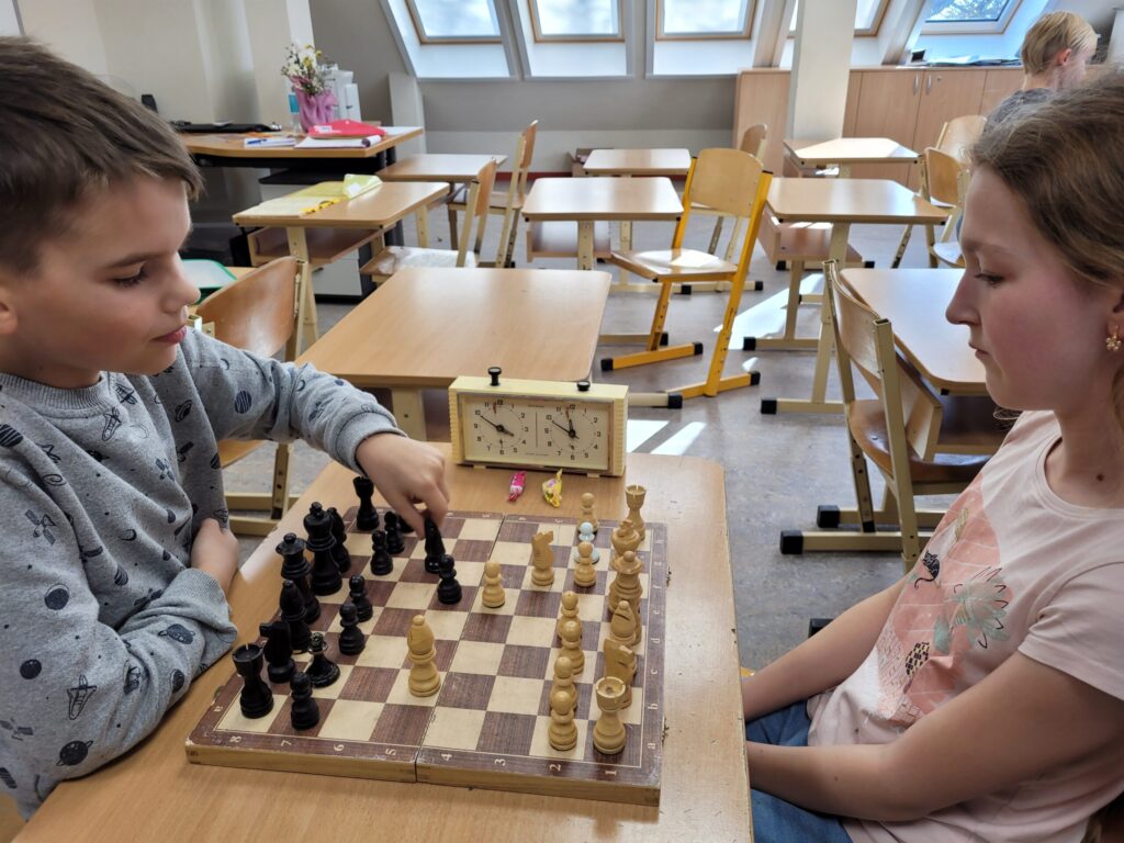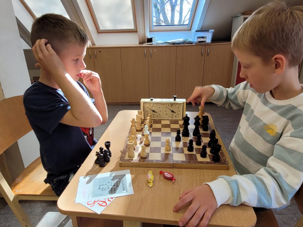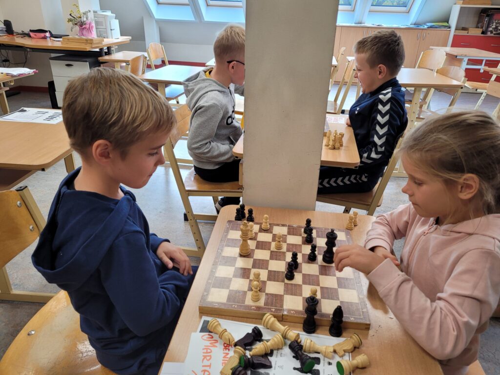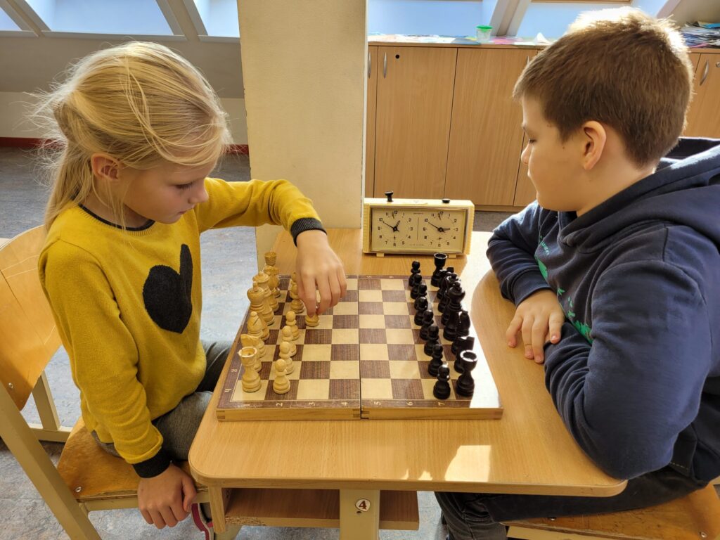 Gustavs Baumanis (8b. klase) un Eduards Vārna (8a. klase) 16. novembrī startēja Liepājas Kompleksās sporta skolas atklātajā čempionātā 3.sporta klasēm, kur pārējie konkurenti bija Liepājas un Kuldīgas sporta skolu audzēkņi. Gustavs bija tuvu, tuvu otrās vietas medaļai. “Ja būtu bijusi veiksme un uzvara pēdējā, izšķirošajā spēlē, tad godpilnā sudraba medaļa. Zēni cīnījās braši,” savus šahistus uzslavē R. Bērziņa.