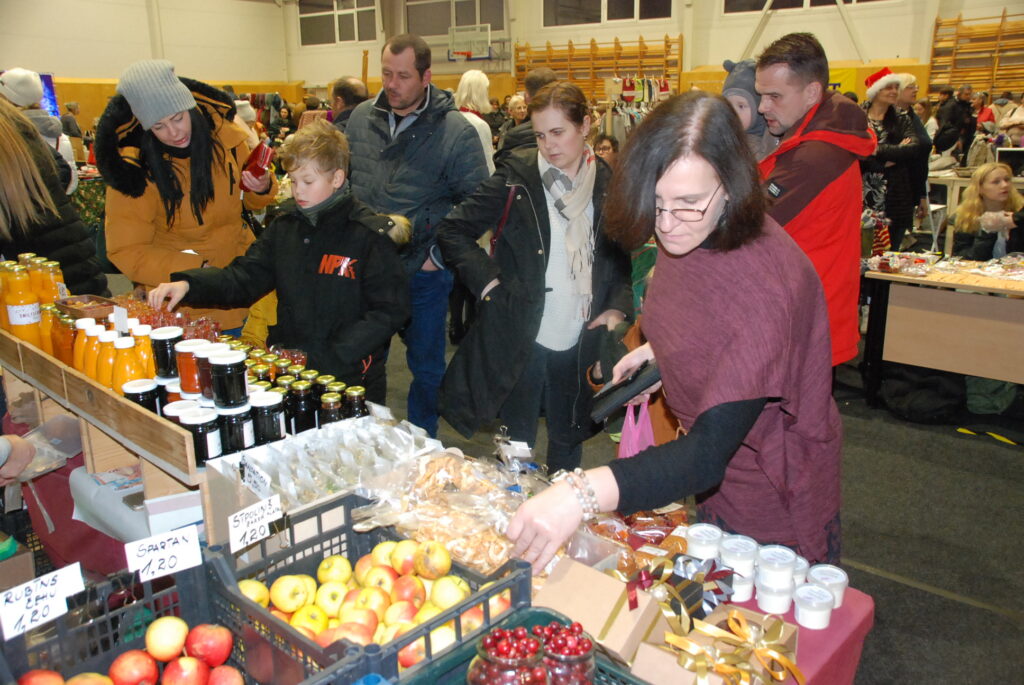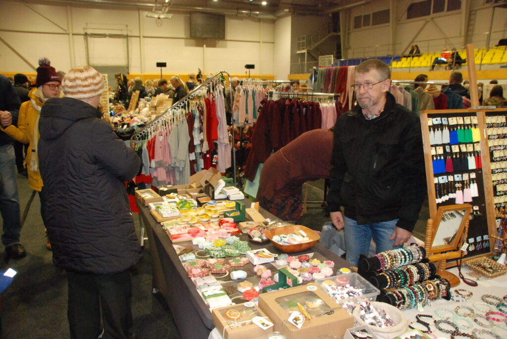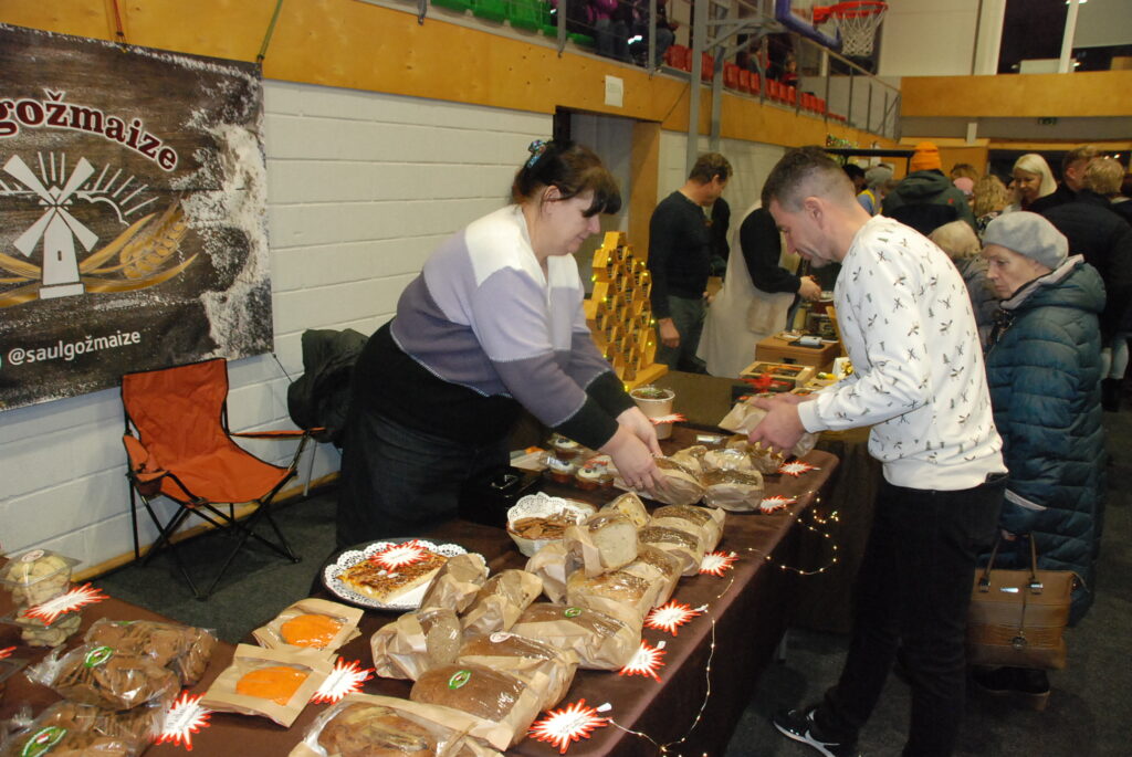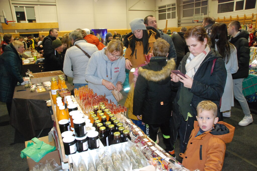 Grobiņas Sporta centra lielā arēna bija ar tirgotājiem un pircējiem pilna. Tirdziņā bija lieliska iespēja iegādāties Ziemassvētku dāvanas, netrūka arī dažādu gardumu vēdera priekiem.