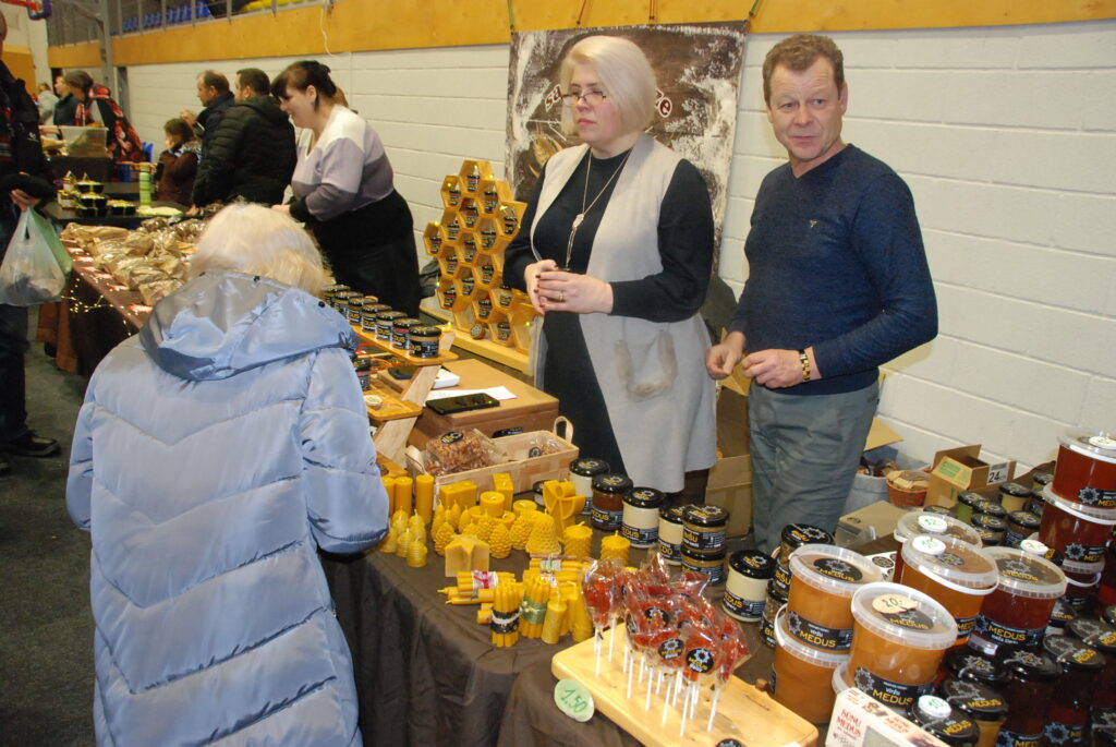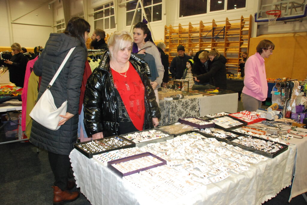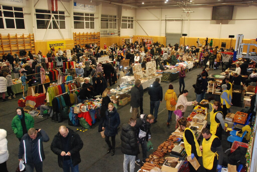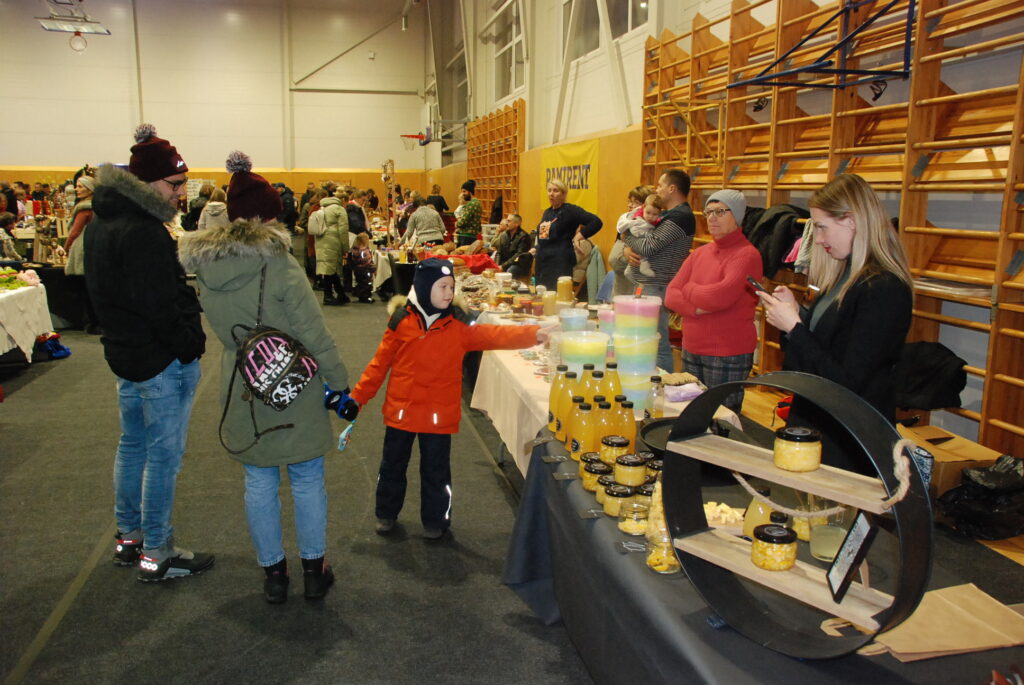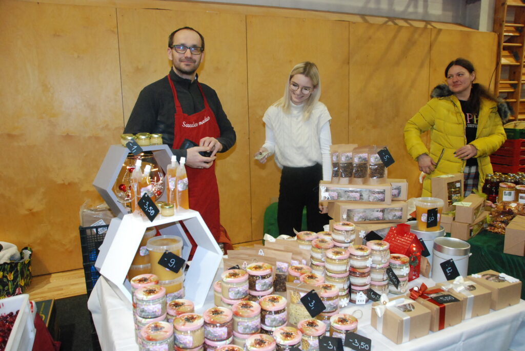 Grobiņas Sporta centra lielā arēna bija ar tirgotājiem un pircējiem pilna. Tirdziņā bija lieliska iespēja iegādāties Ziemassvētku dāvanas, netrūka arī dažādu gardumu vēdera priekiem.
