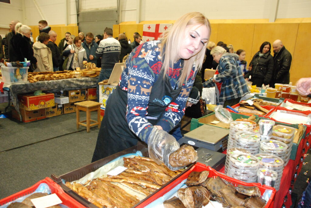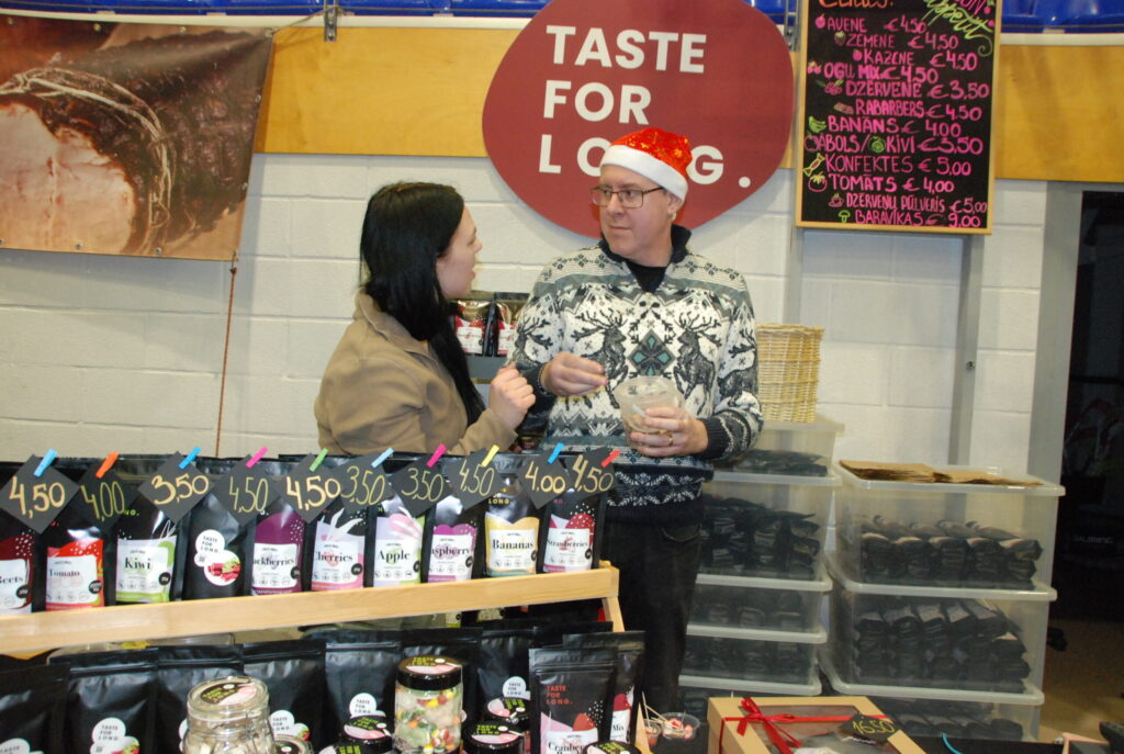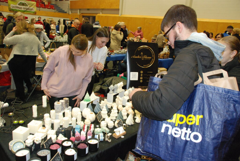 Piektdienas, 13. decembra, vakarā Grobiņas Sporta centra arēna bija piepildīta ar tirgotājiem, kuri Ziemassvētku noskaņās iecienītajā Ziemas vakara tirgū piedāvāja visdažādākās lietas gan svētku galdam, gan Ziemassvētku dāvanām.