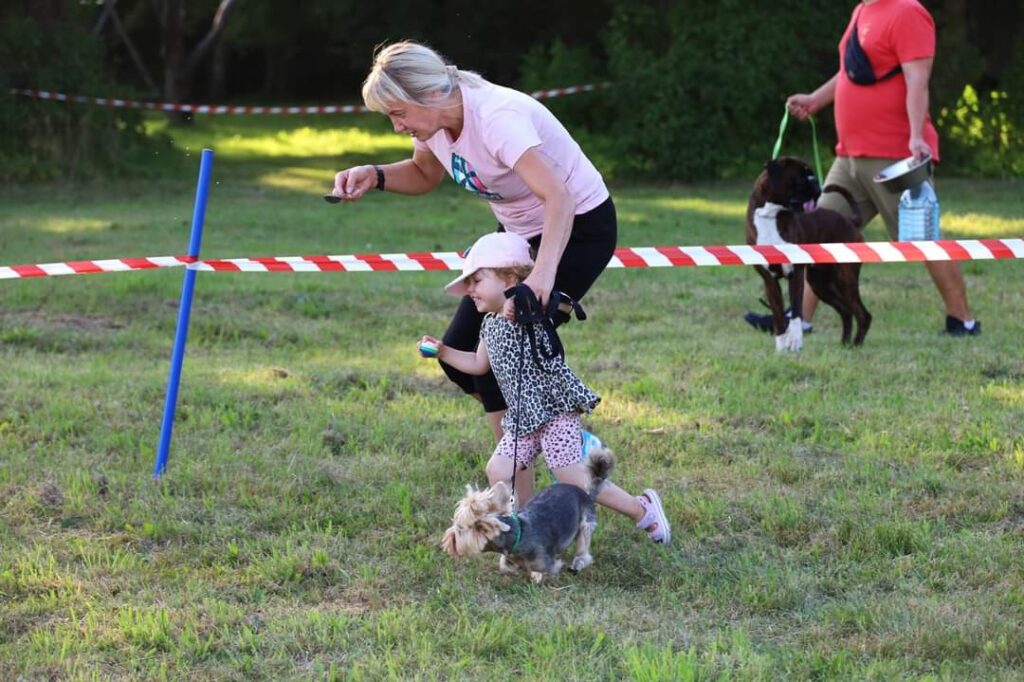 FOTO: Grobiņas pagastā ķer azartu pirmajos suņu sporta svētkos "Jautrās ķepas"