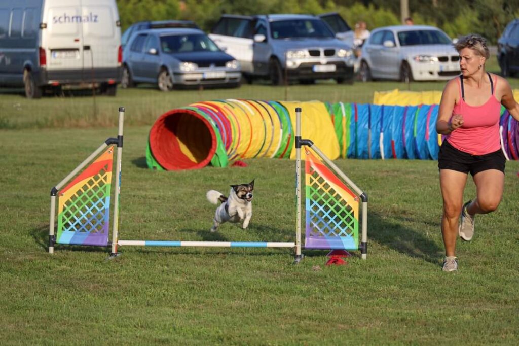 Pārsvarā vakara aktivitātes ar suņiem notika vienlaicīgi citām aktivitātēm. Izveidotajā suņu laukumā norisinājās adžilitī trases un tuneļu trase, bet ārpus laukuma tika īstenotas divas stafetes: stafete- “Piesaukšana” un stafete- “Jautrais skrējiens ar suni.”
