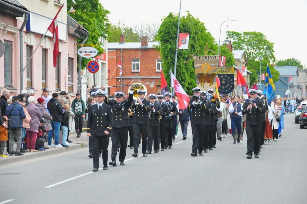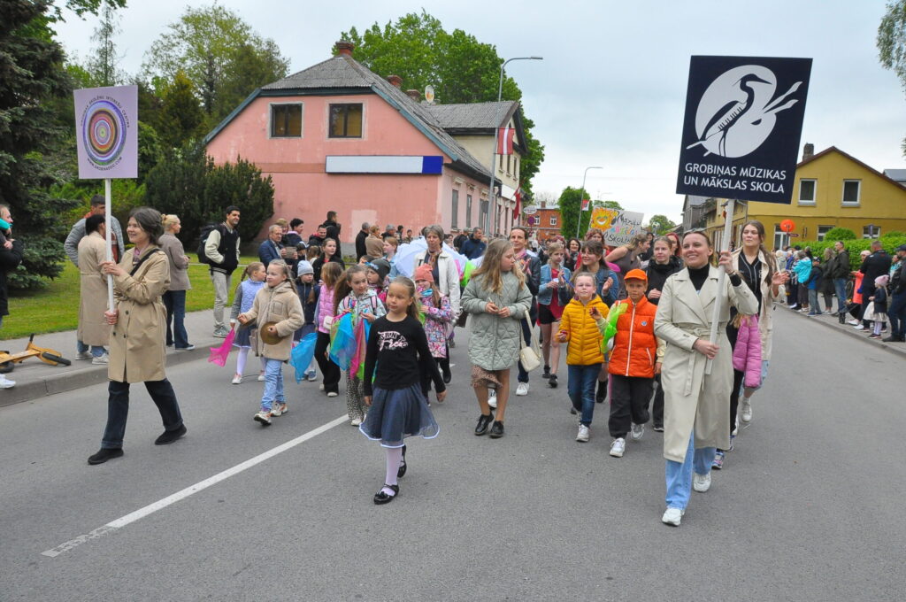 Grobiņas pilsētas svētku gājienā devās gan grobiņnieki, gan pilsētas viesi, dodoties no stadiona līdz pilsdrupām, kur pēc tam uzstājās “Queentessence” un Rihards Saule.