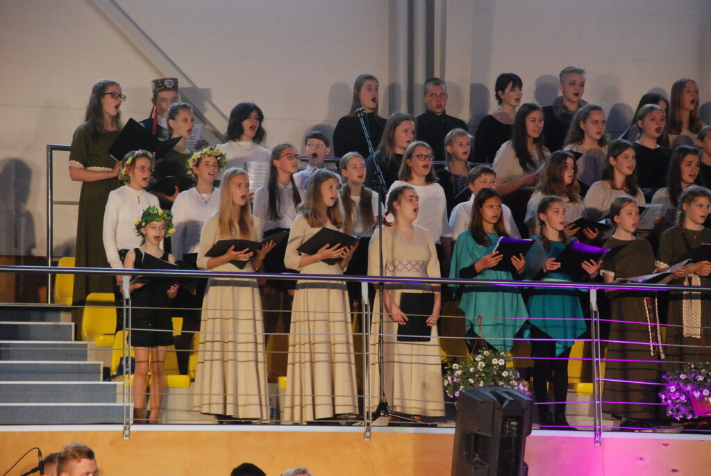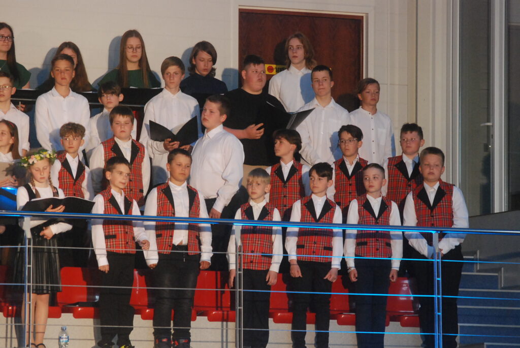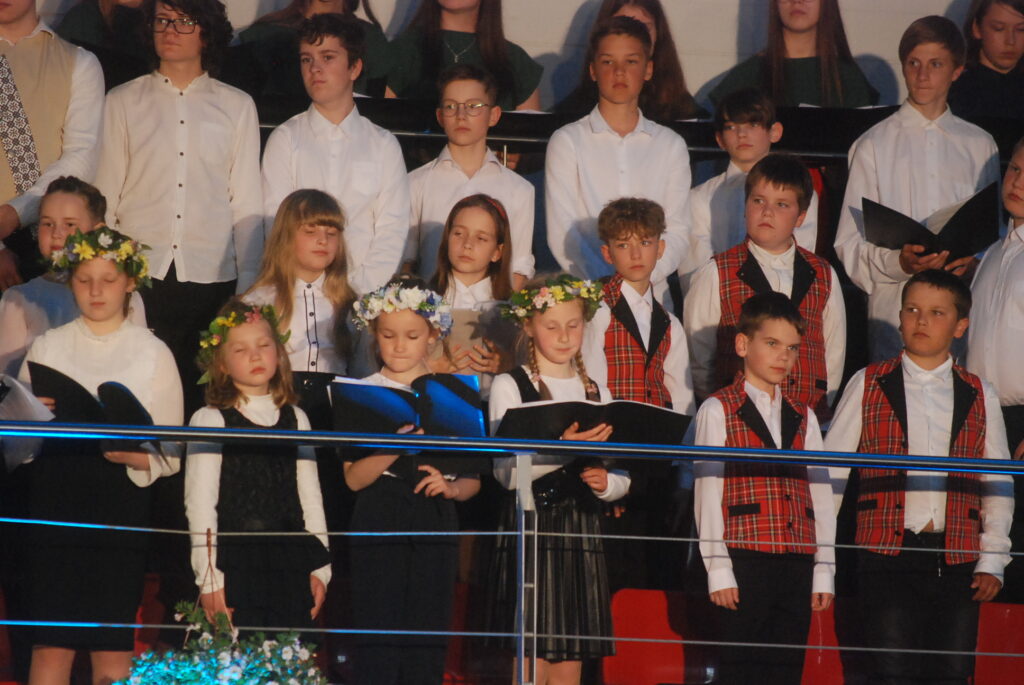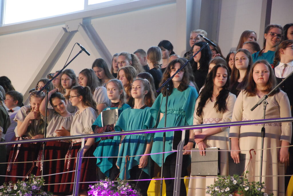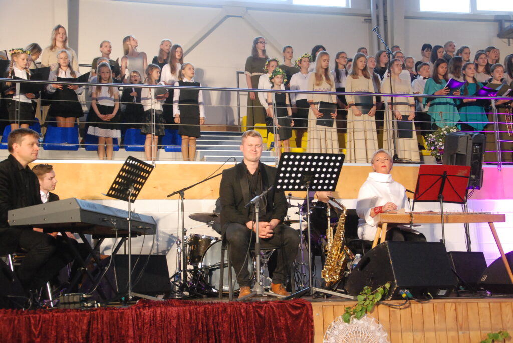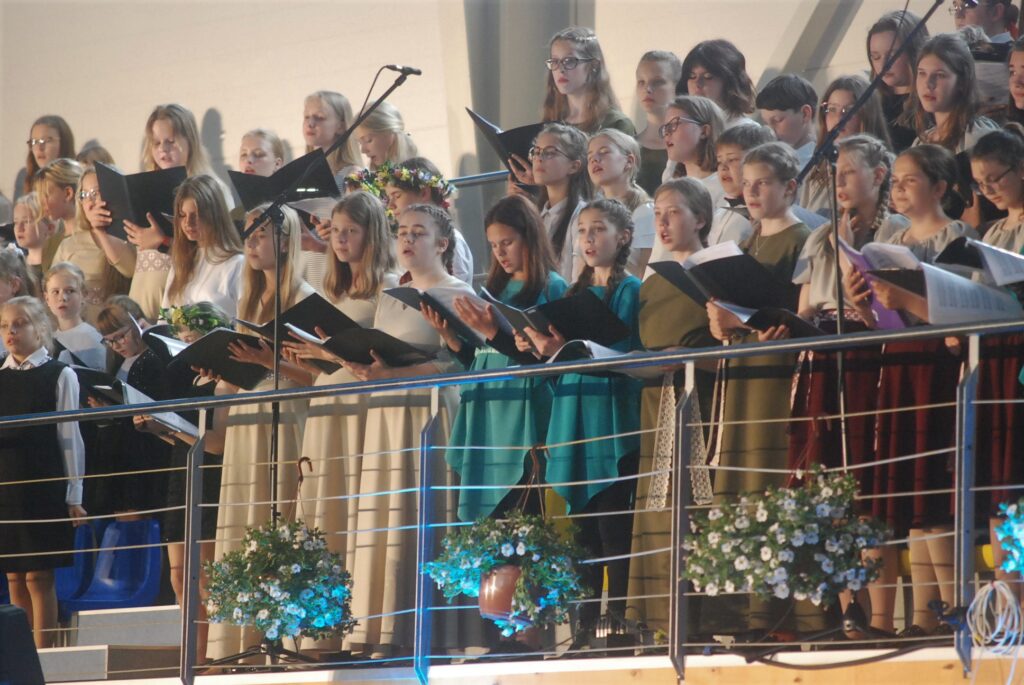 Grobiņas pilsētas svētku galvenais notikums piektdien, 27. maijā, notika Grobiņas Sporta centrā, kur pēc gājiena Dienvidkurzemes novada skolu koristi vienojās kopīgā lielkoncertā “Svētī debesīs šo zemi”.