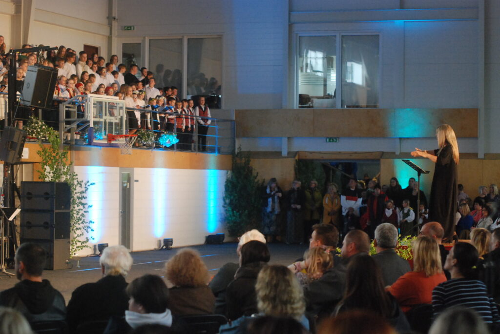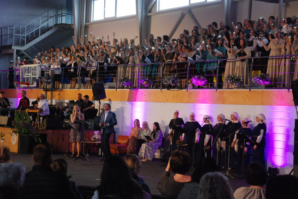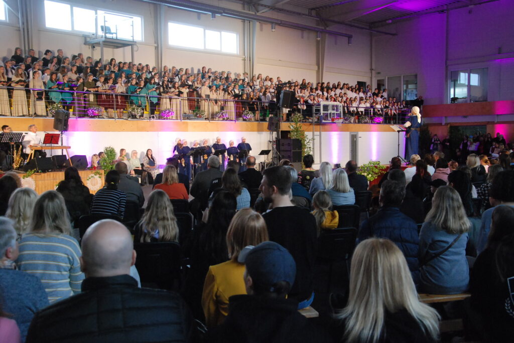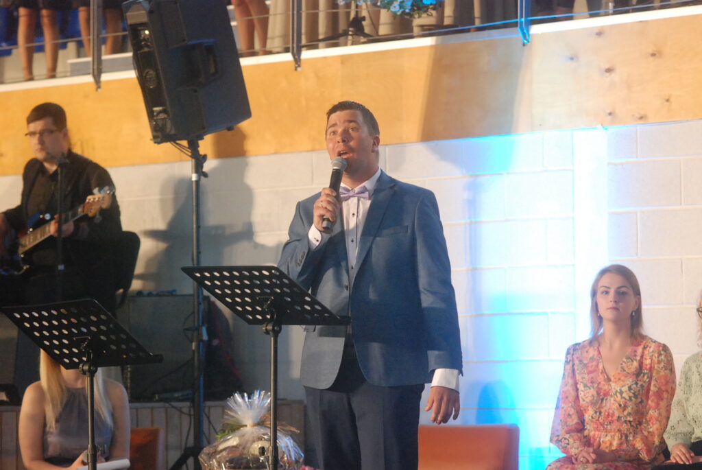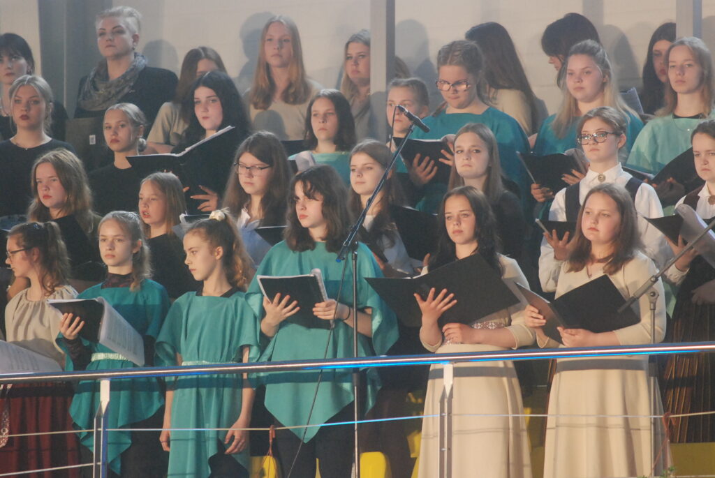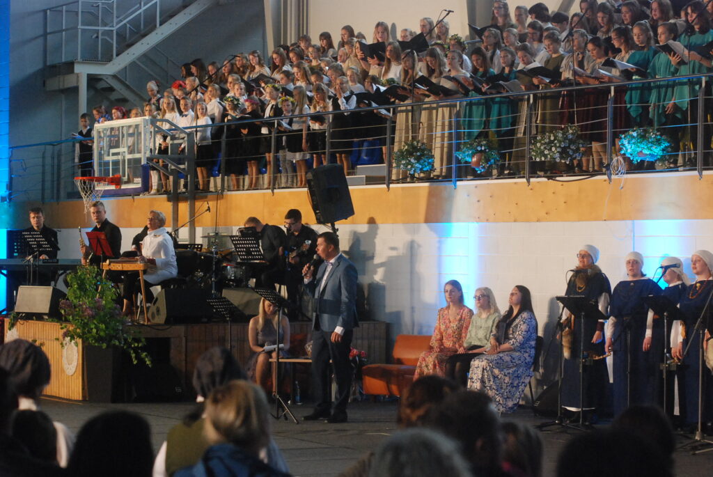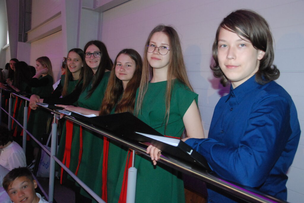 Grobiņas pilsētas svētku galvenais notikums piektdien, 27. maijā, notika Grobiņas Sporta centrā, kur pēc gājiena Dienvidkurzemes novada skolu koristi vienojās kopīgā lielkoncertā “Svētī debesīs šo zemi”.