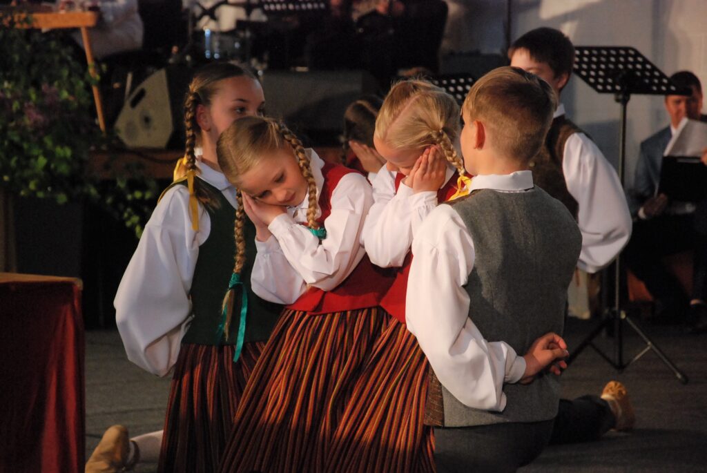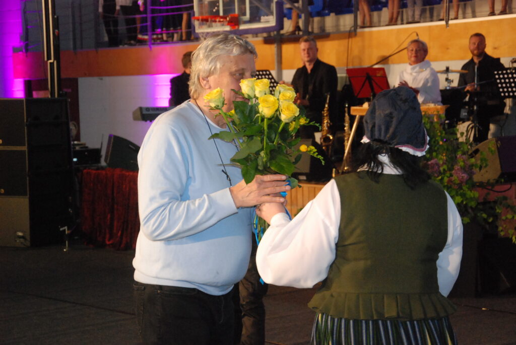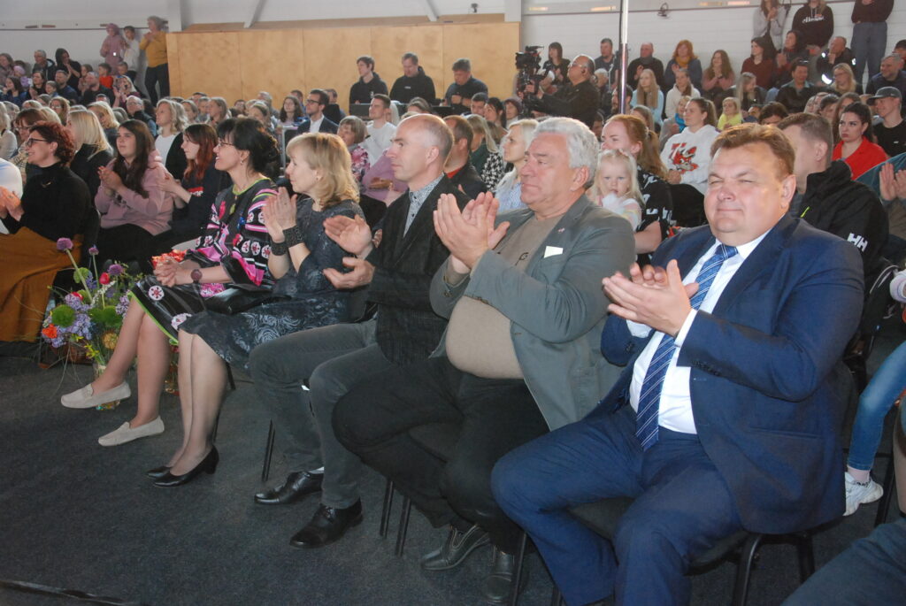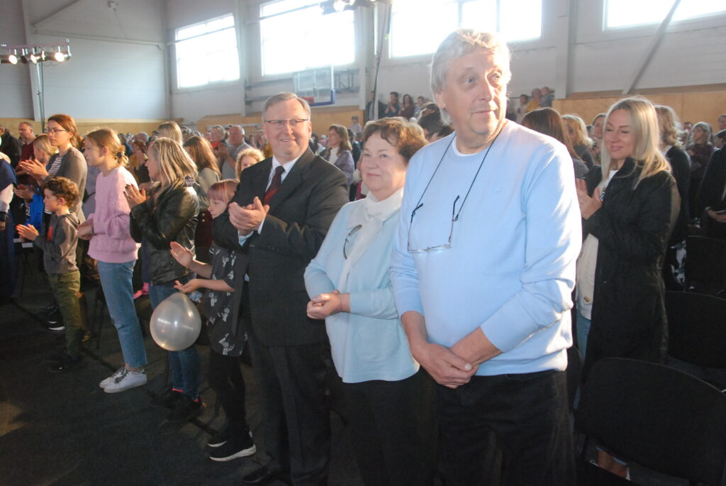 FOTO: Grobiņas pilsētas svētkos novada skolēni ar lielkoncertu sveic jubilejā Zigmāru Liepiņu