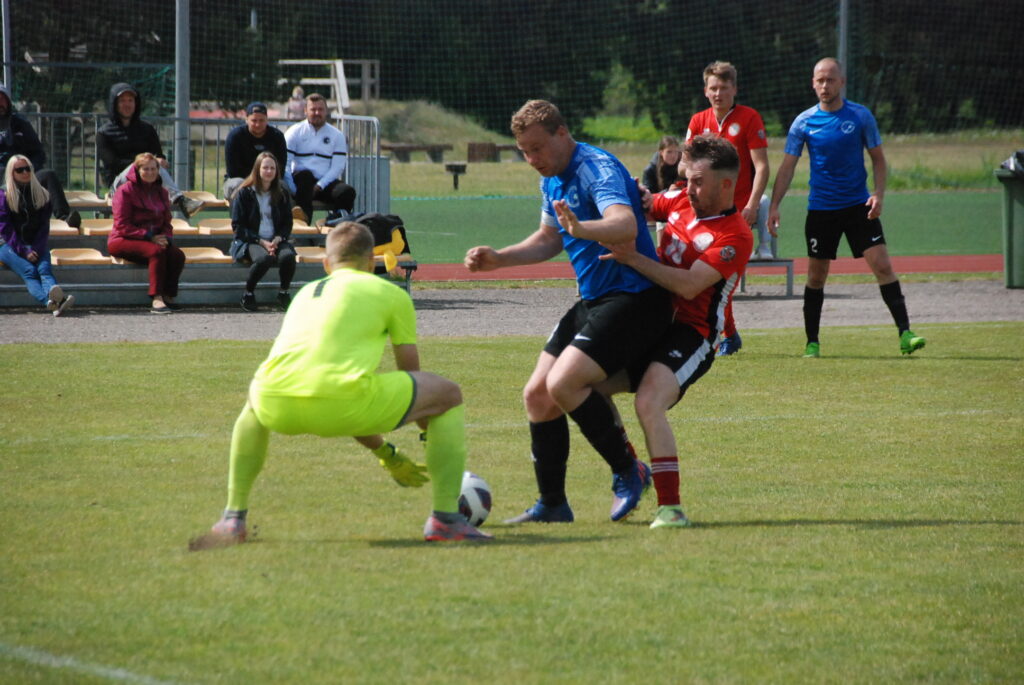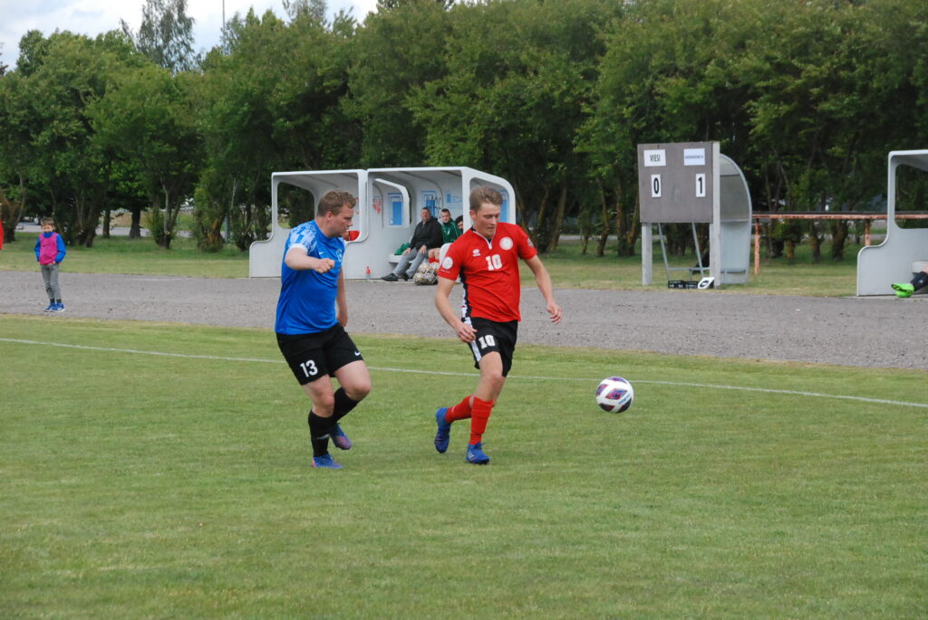 Pirmā puslaika 21. minūtē mājiniekus vadībā izvirzīja Jānis Freimanis, bet 45. minūtē pārsvaru dubultoja Sergejs Nagornijs.