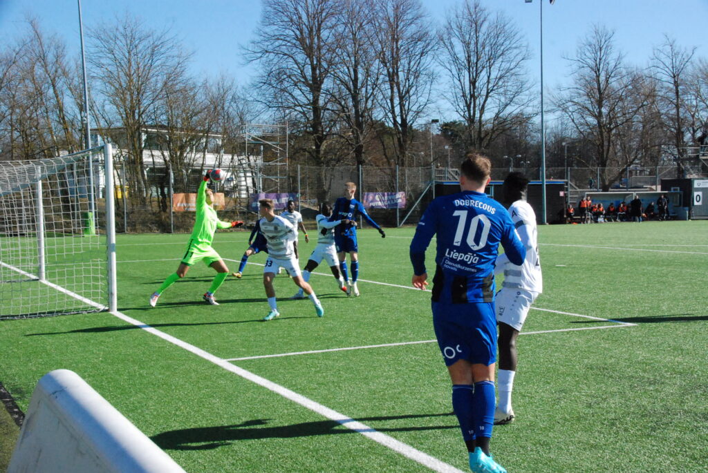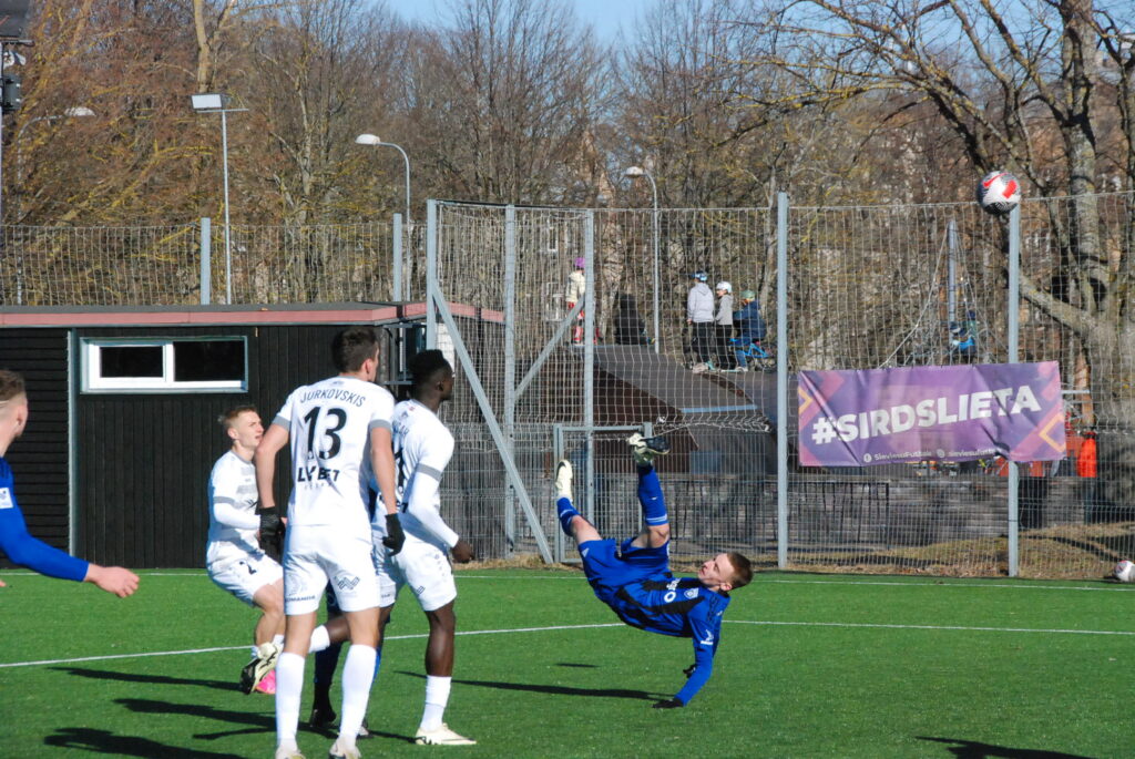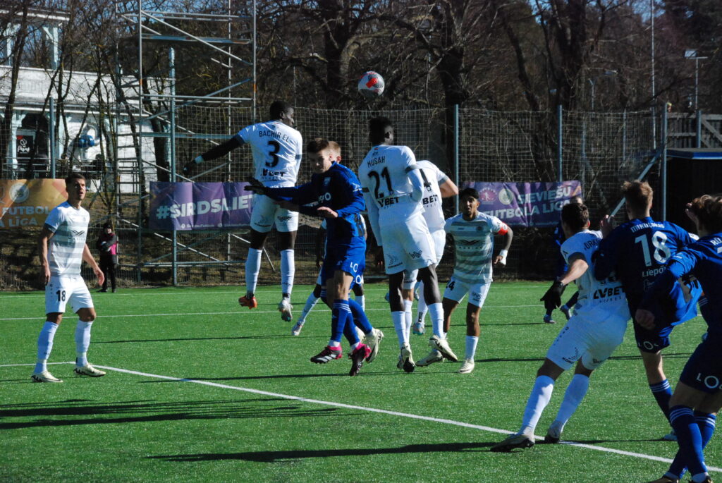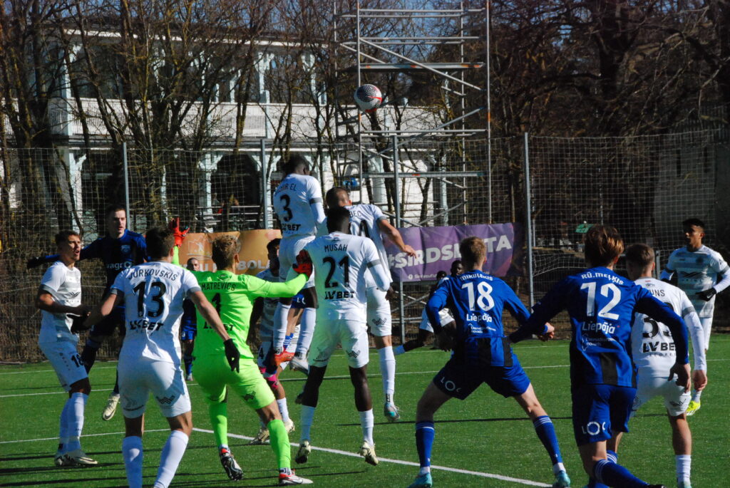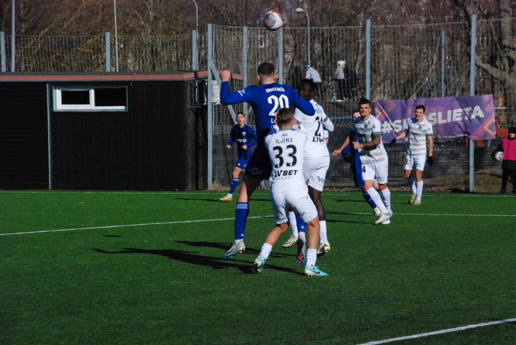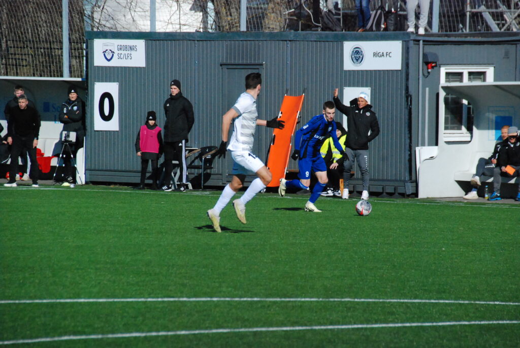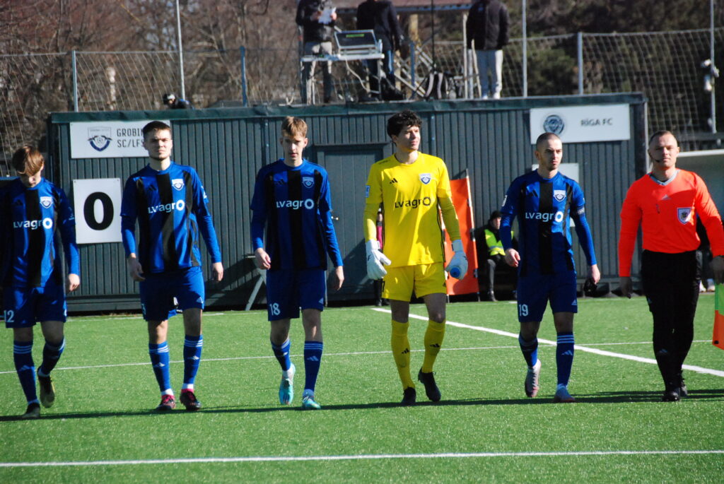 FOTO: "Grobiņas SC/LFS" vēsturiskajā debijā virslīgā izrāda sīkstu pretestību "Riga FC"