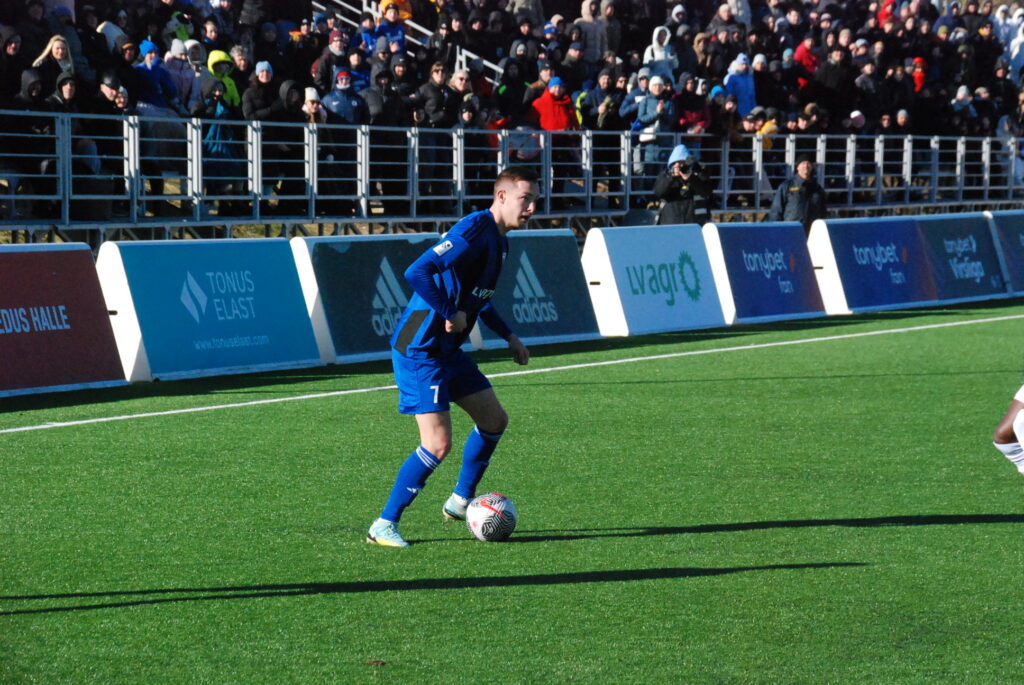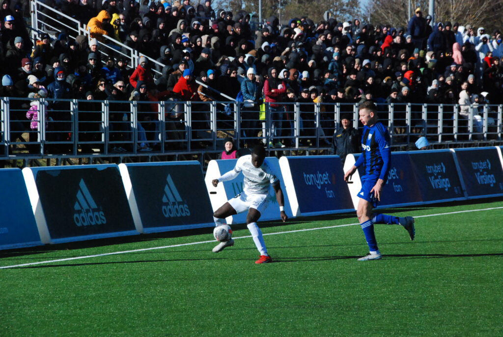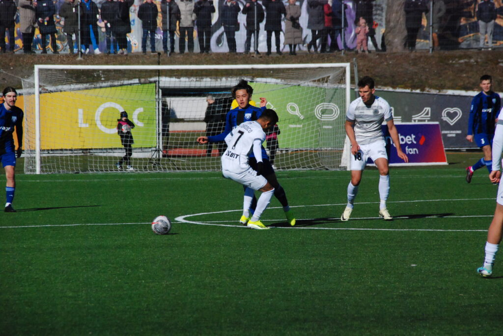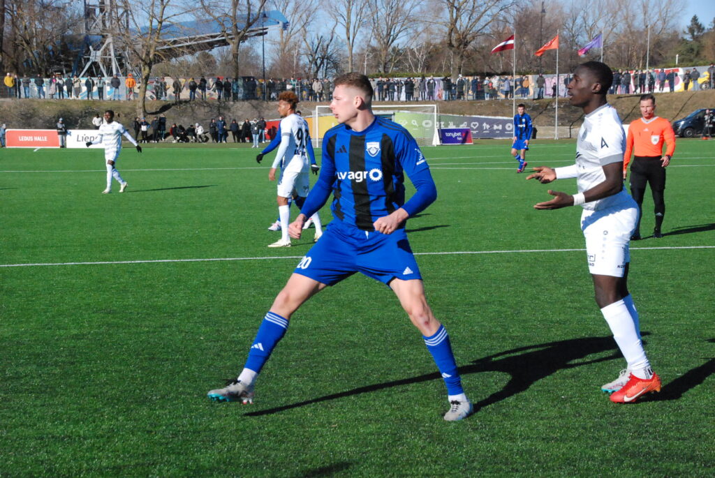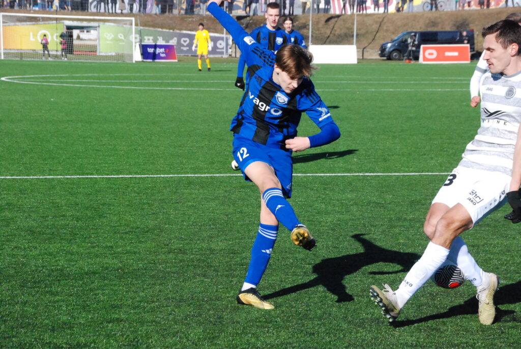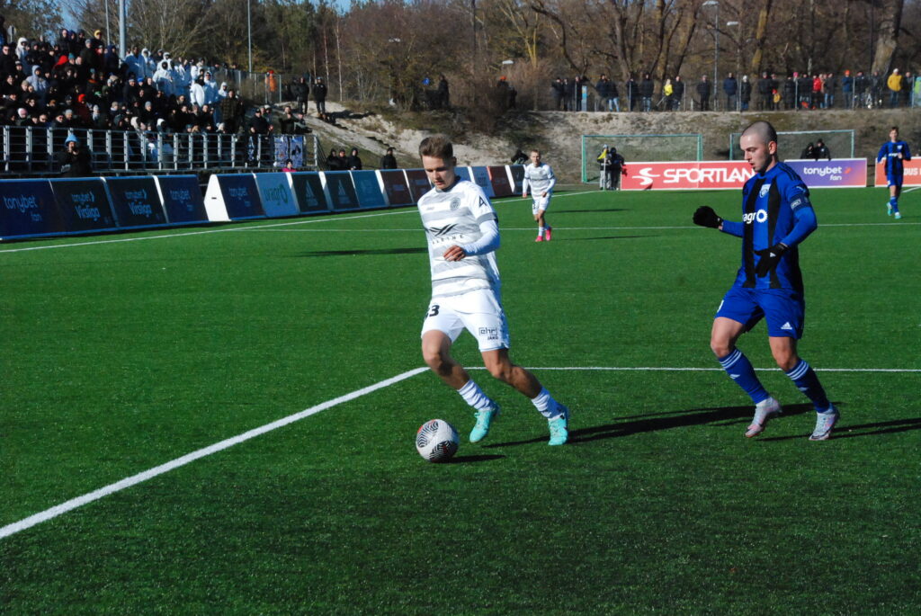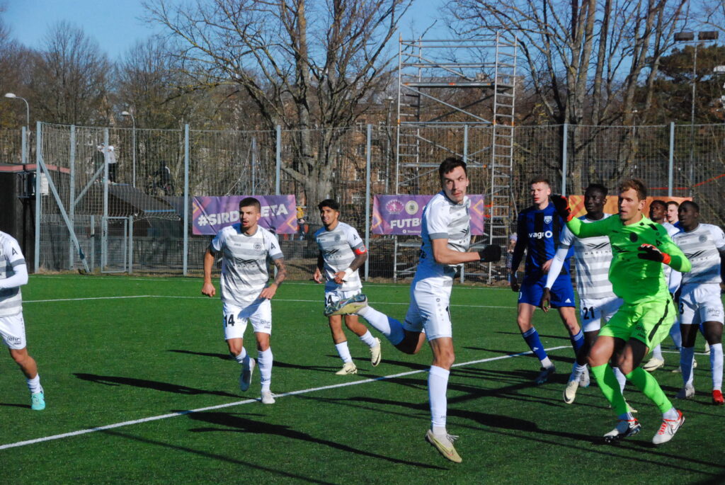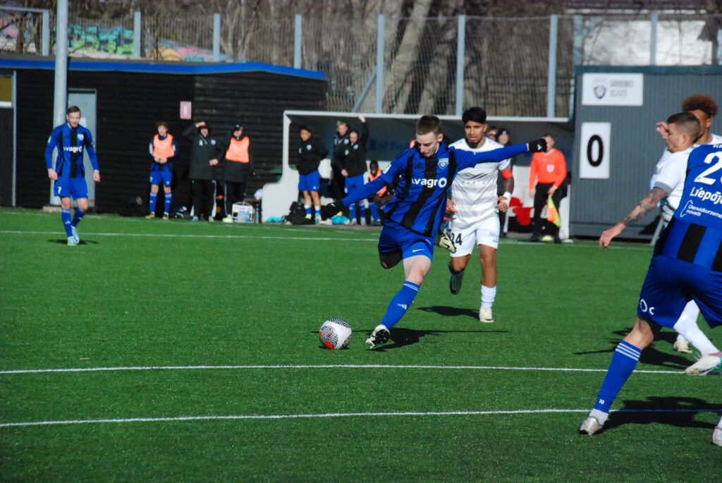 FOTO: "Grobiņas SC/LFS" vēsturiskajā debijā virslīgā izrāda sīkstu pretestību "Riga FC"