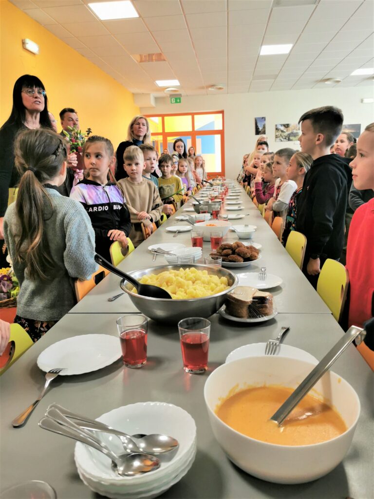 V. Asne neslēpa, ka joprojām skolēnu iecienītākais ēdiens ir makaroni ar sieru. “Bet mēs ēdienkarti taisām ļoti dažādu un mācām bērnu jau no pirmās klasītes iepazīt garšas un pašiem arī izvēlēties,” viņa pastāstīja. Tieši tāpēc uz kopgalda ēdiens ir lielajos traukos, no kuriem katrs ēdējs paņem tik, cik vēlas: gan zupu, gan kartupeļus, mērci, gaļu un salātus.