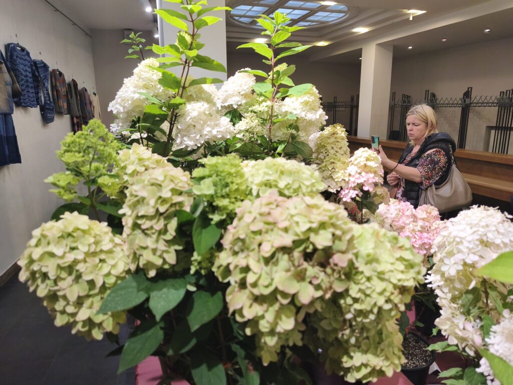 Fotoieskats hortenziju ziedu izstādē, kas augusta beigās bija skatāma Liepājas Latviešu biedrības namā.