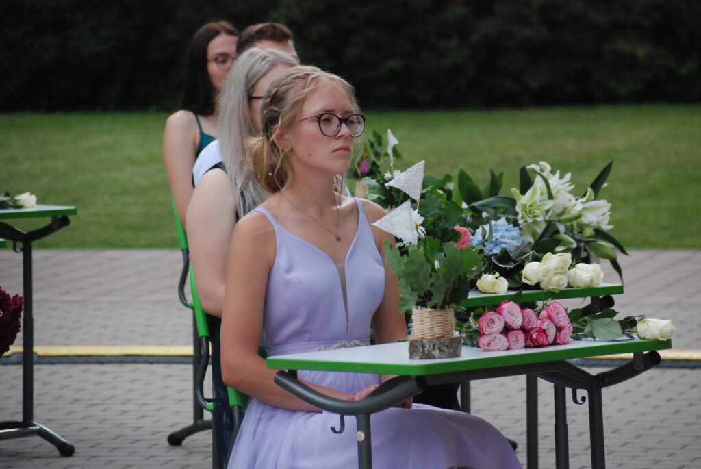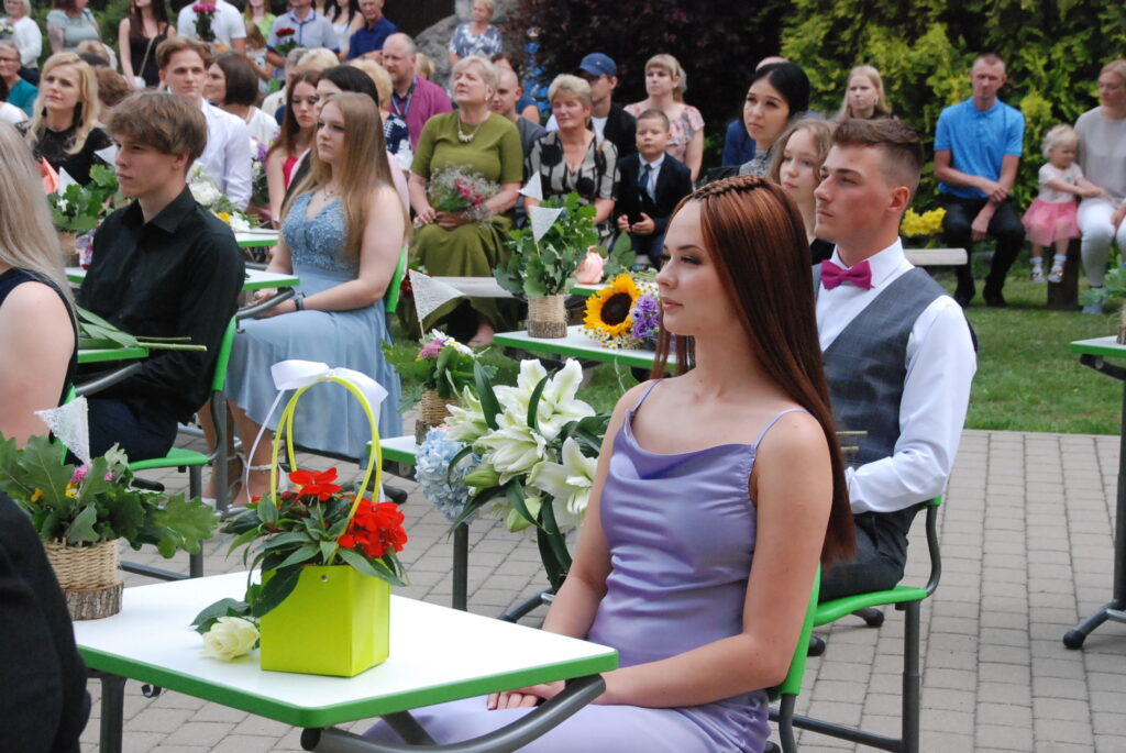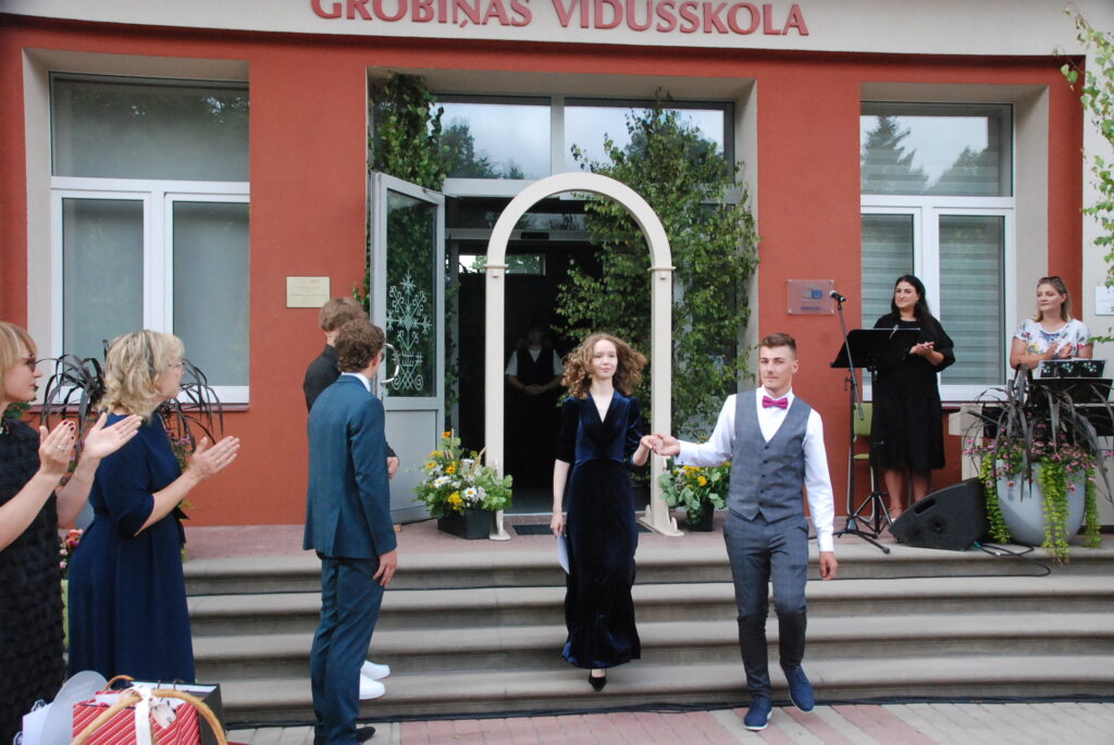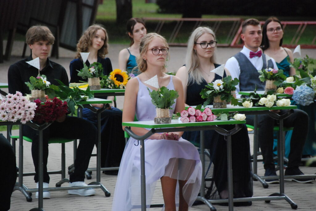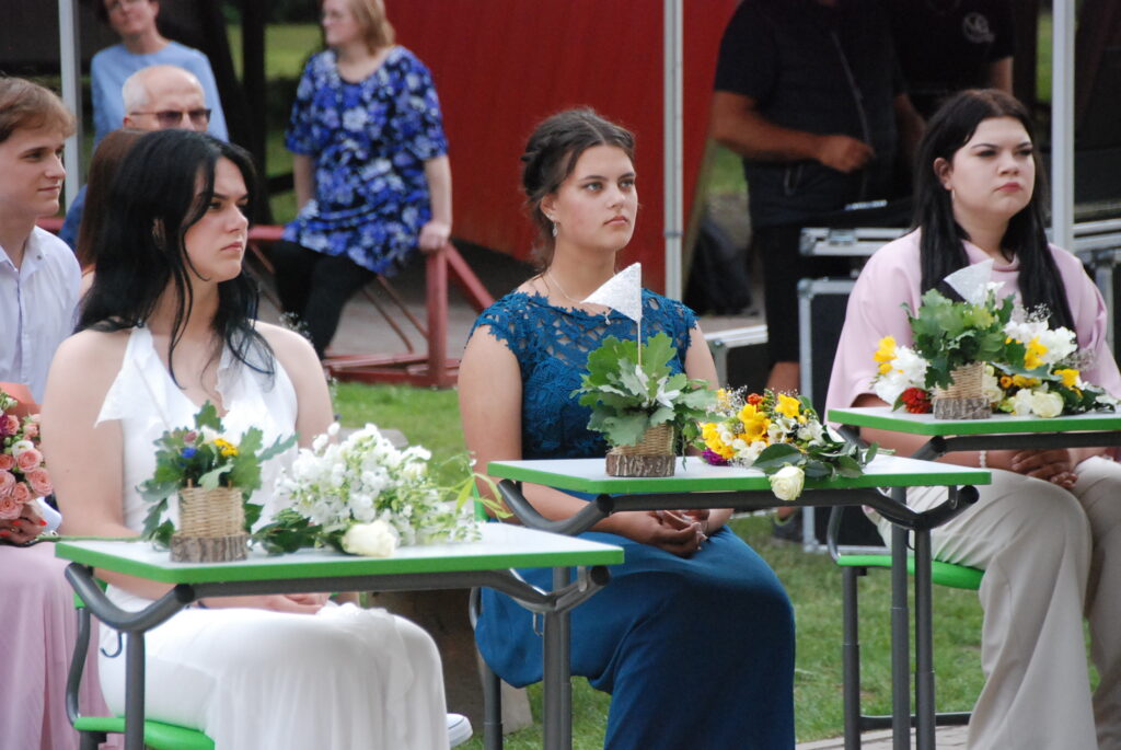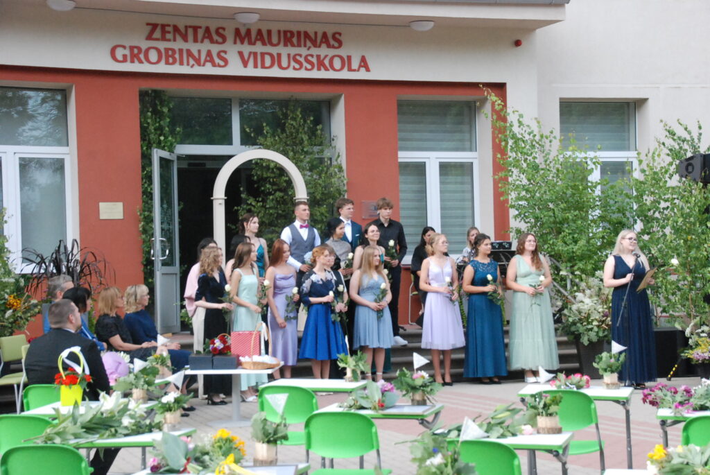 Fotoieskats Zentas Mauriņas Grobiņas vidusskolas 12. klases izlaidumā, kas skolas pagalmā notika 12. jūlija vakarpusē.