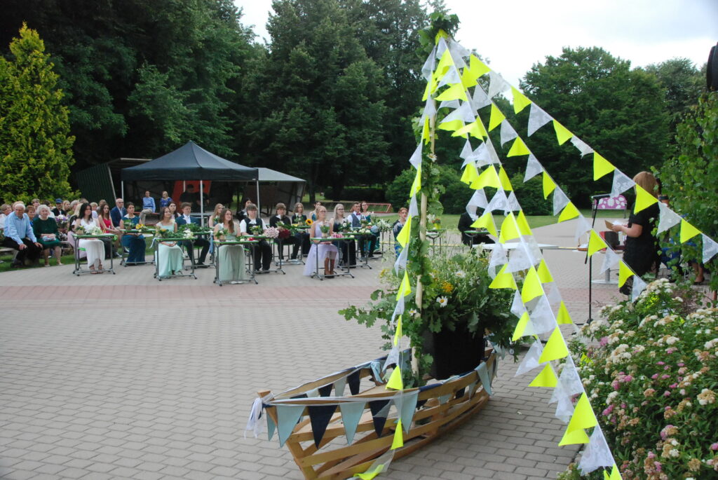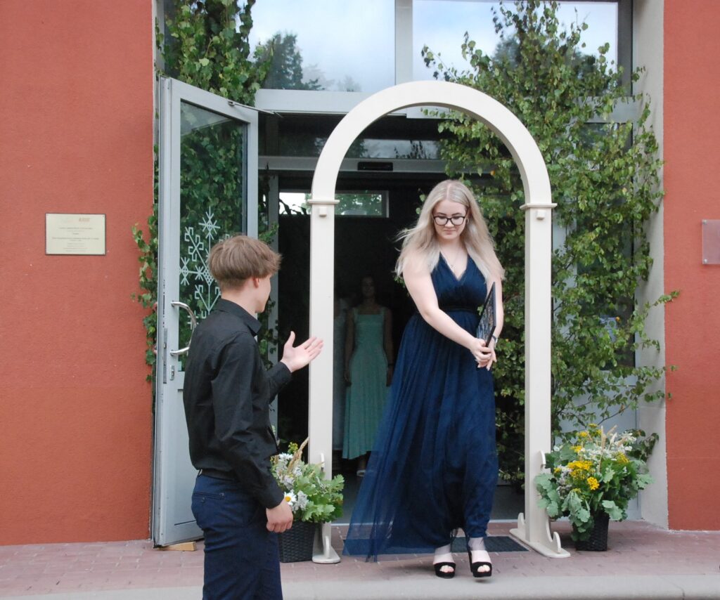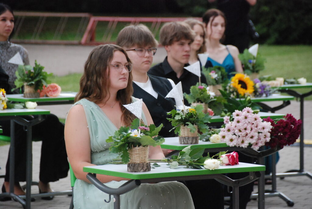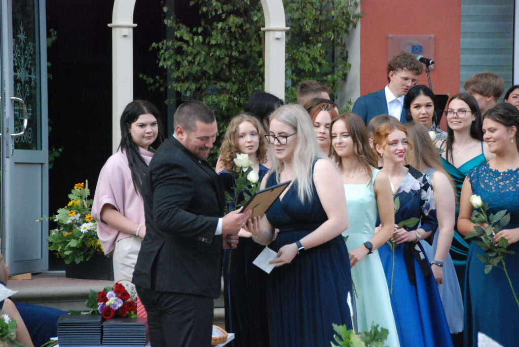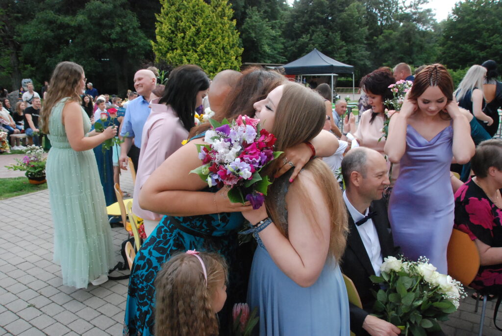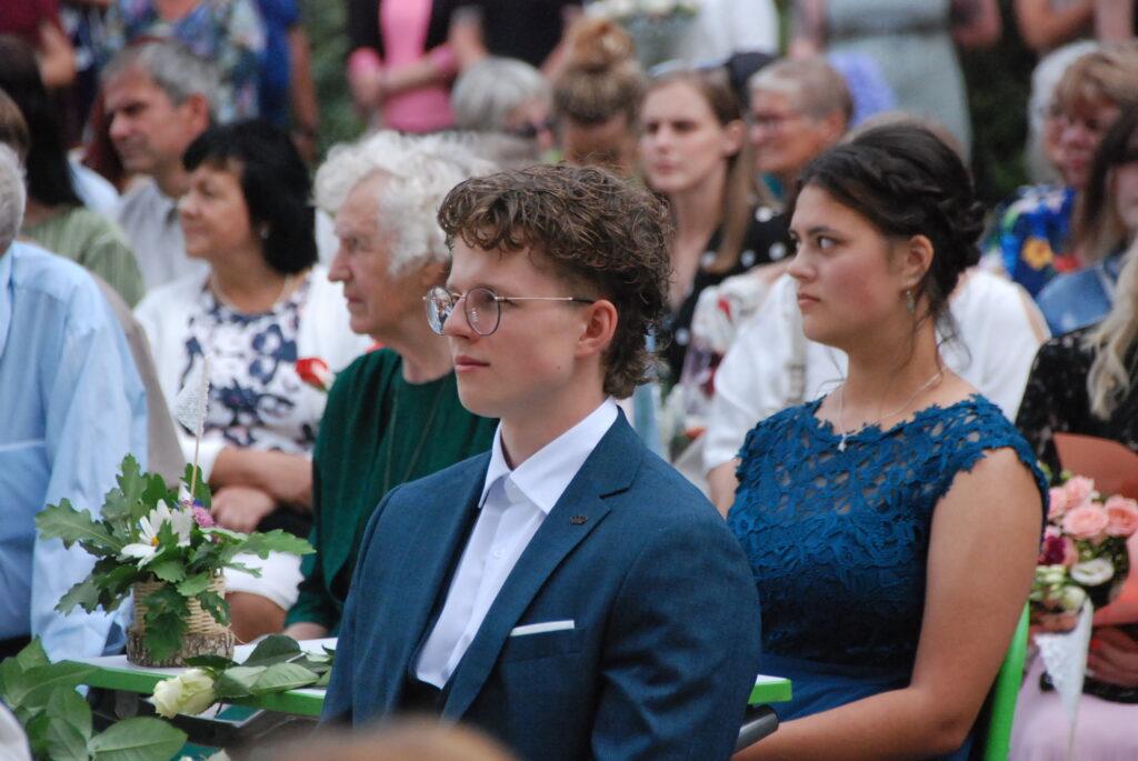 Fotoieskats Zentas Mauriņas Grobiņas vidusskolas 12. klases izlaidumā, kas skolas pagalmā notika 12. jūlija vakarpusē.