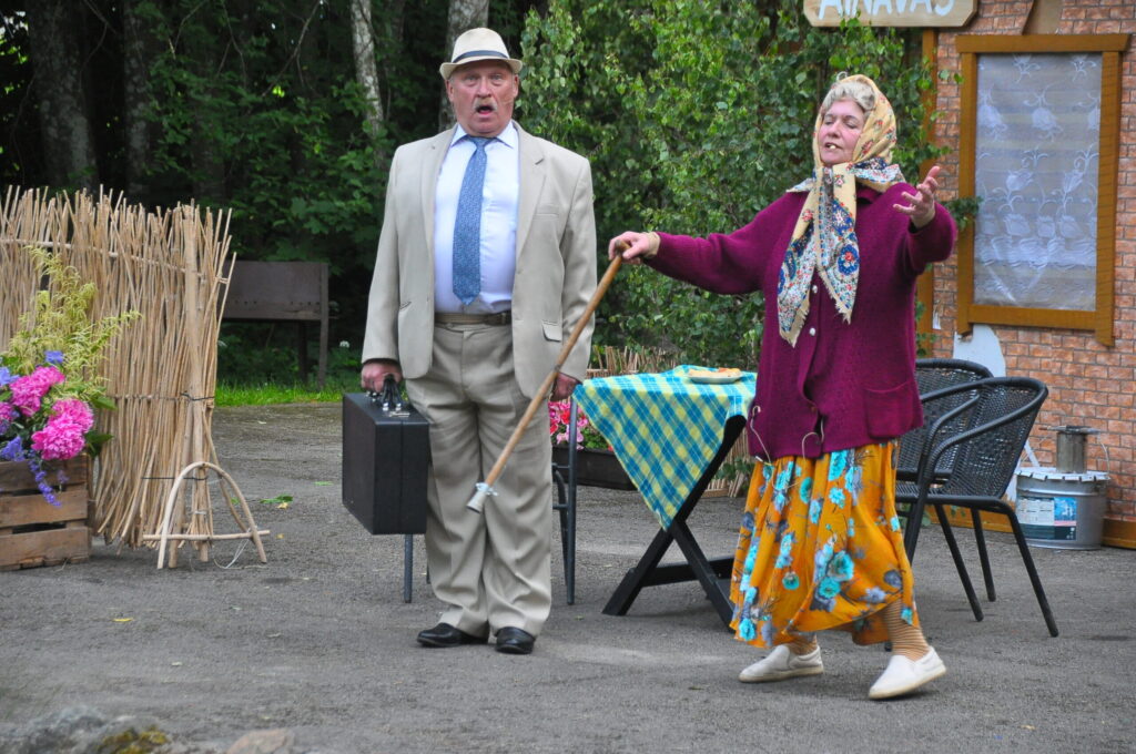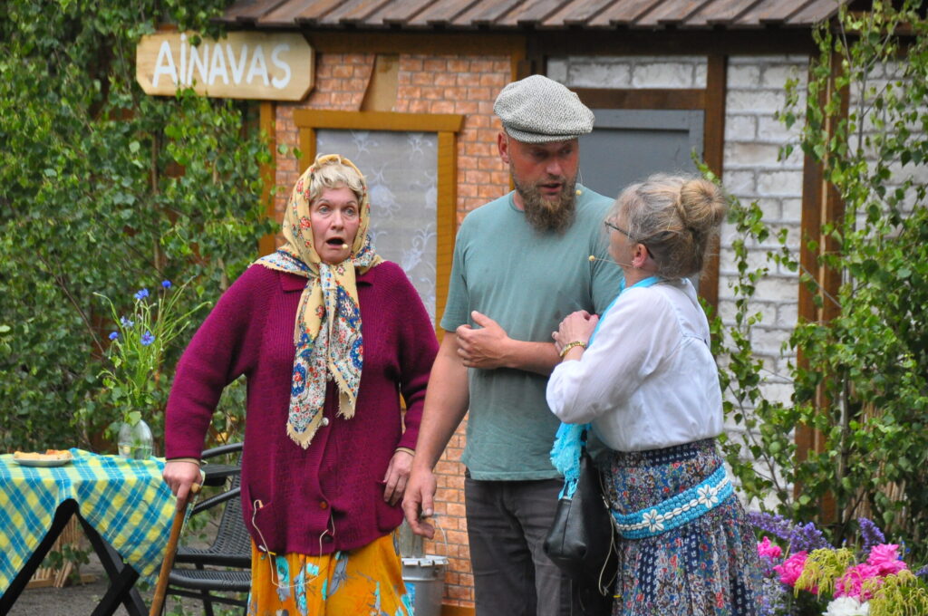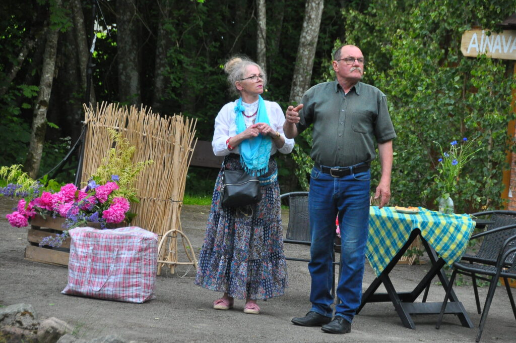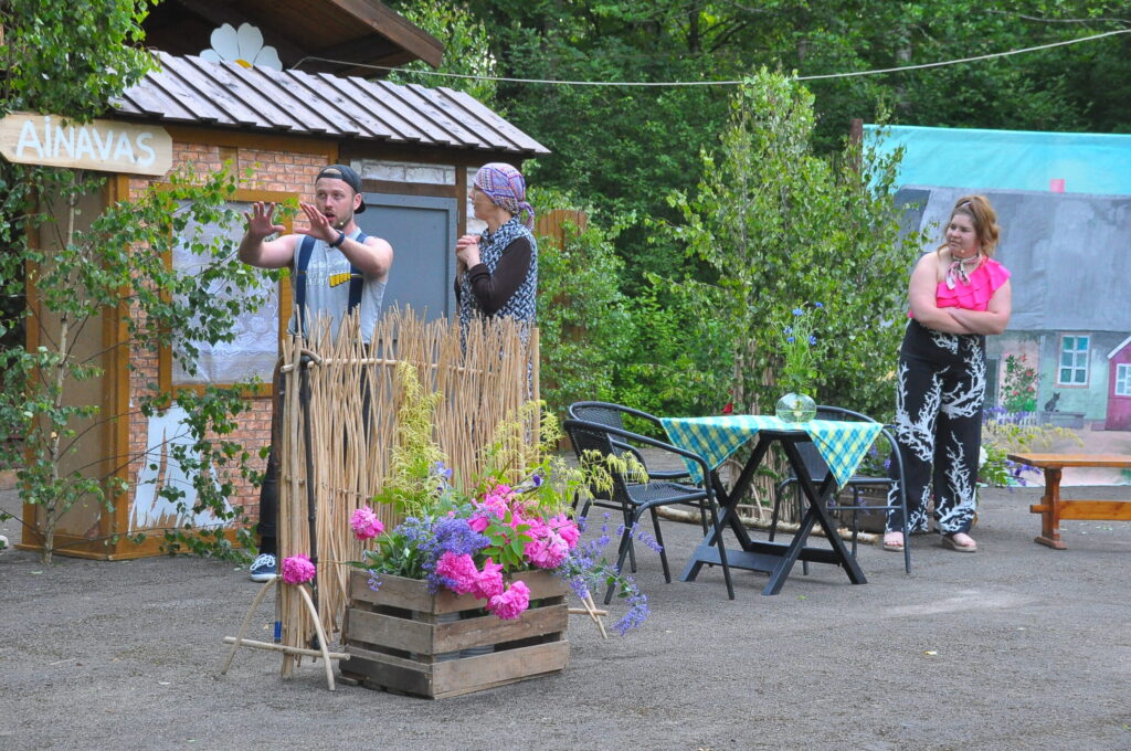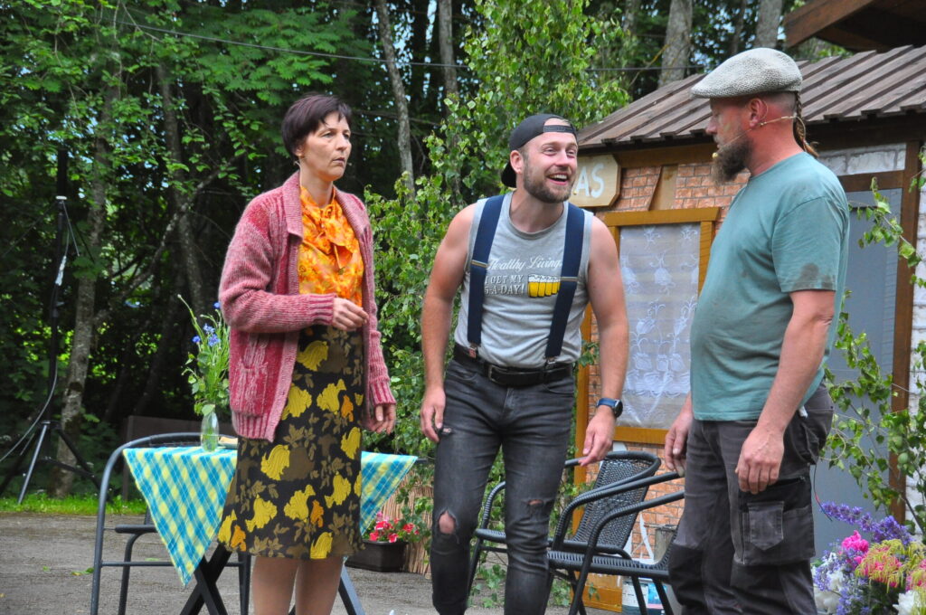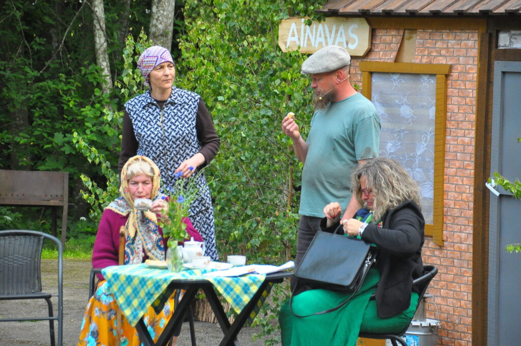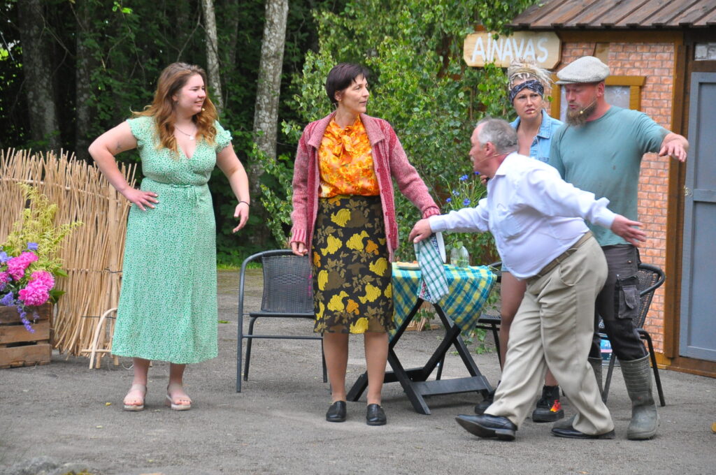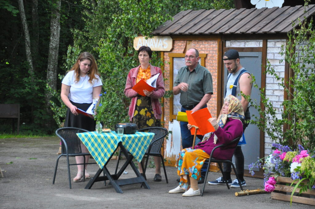 FOTO: Kalvenes amatierteātris "Nebēda" skatītājus sasmīdina ar lustīgu brīvdabas izrādi