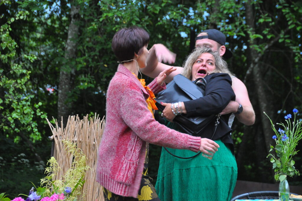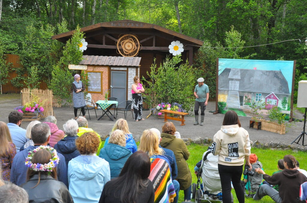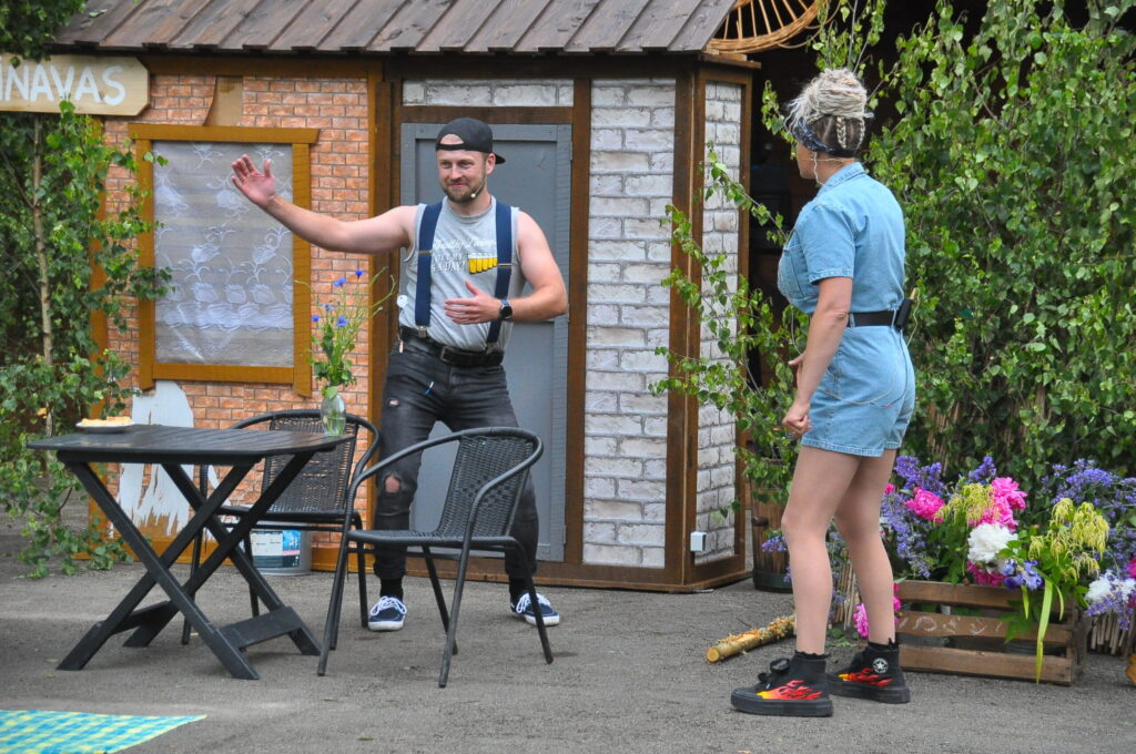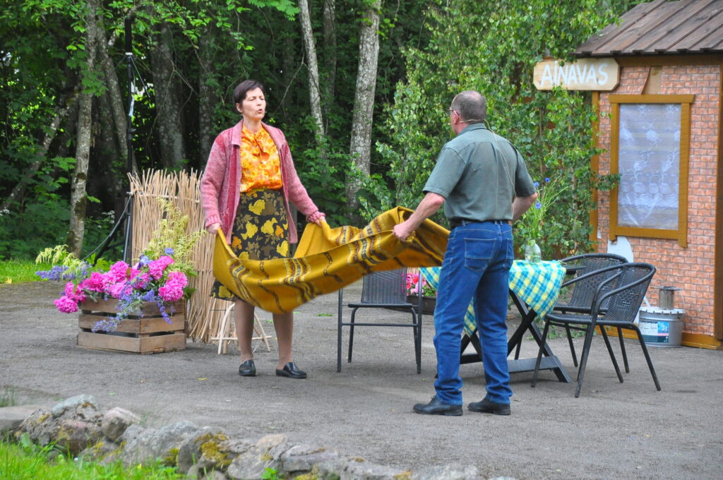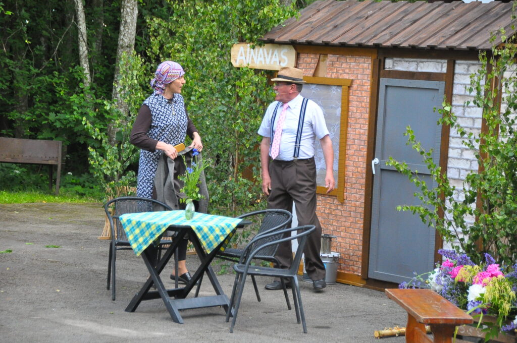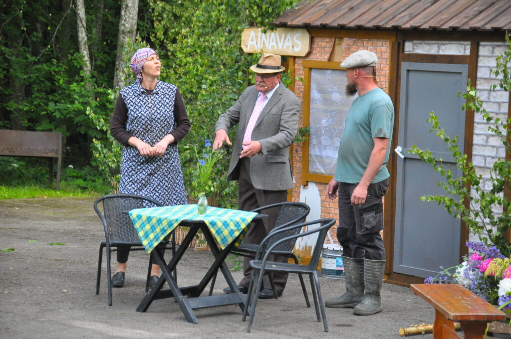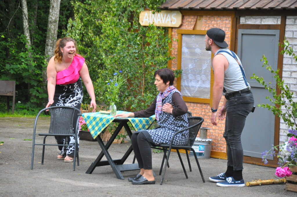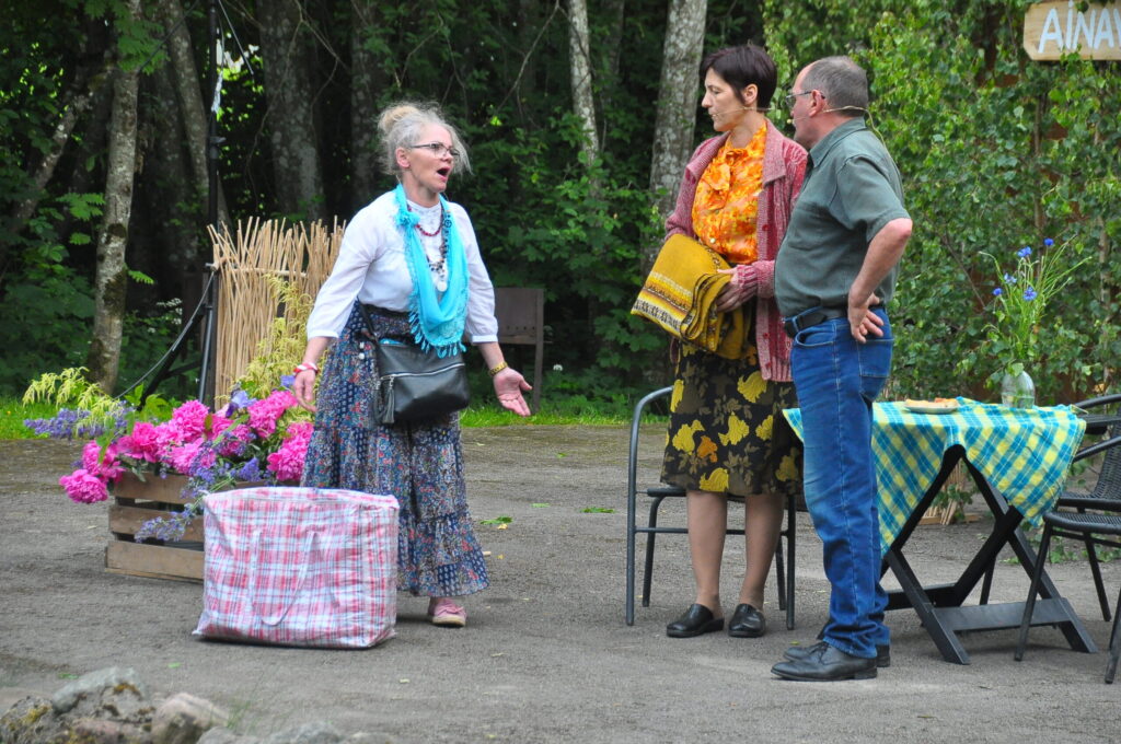 FOTO: Kalvenes amatierteātris "Nebēda" skatītājus sasmīdina ar lustīgu brīvdabas izrādi
