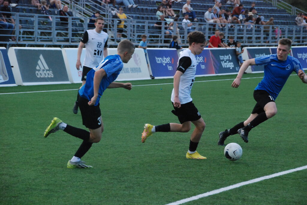 “Karostai” pirmos trīs vārtus pirmajā puslaikā guva Nauris Dobelis, bet ar vienu vārtu guvumu izcēlās Ričards Auznieks.