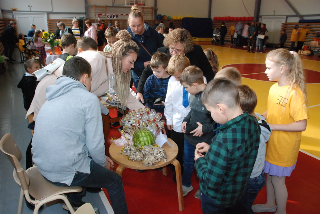 Miķeļdienas tirgus Krotes Kronvalda Ata pamatskolas sporta zālē. Foto – Uldis Dobelis
