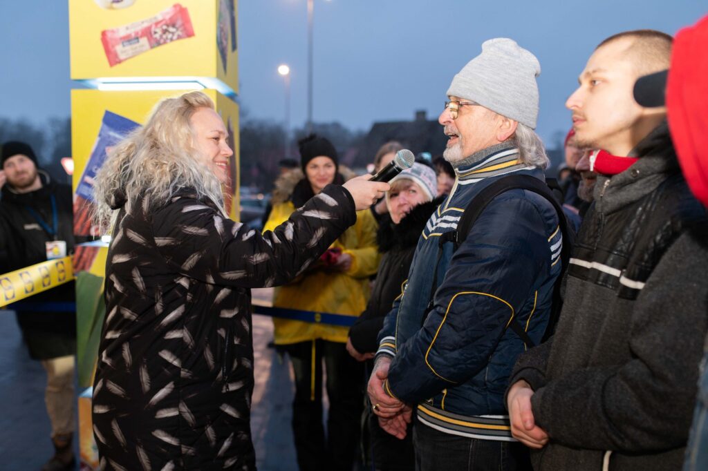 Atverot veikalu, jau tradicionālās 30 EUR dāvanu kartes saņēma pirmie trīs rindā stāvošie klienti. Pirmais apmeklētājs, kuldīdznieks Roberts, rindā bija iestājies jau ap plkst. 23.00. Viņš pastāstīja, ka ir uzticīgs veikalu tīkla klients un šodien ieradies, lai izbaudītu pasākumu. Par iegūto dāvanu karti Roberts plāno iegādāties savus mīļākos “Lidl” produktus – kafiju, dažādus piena produktus un dārzeņus.