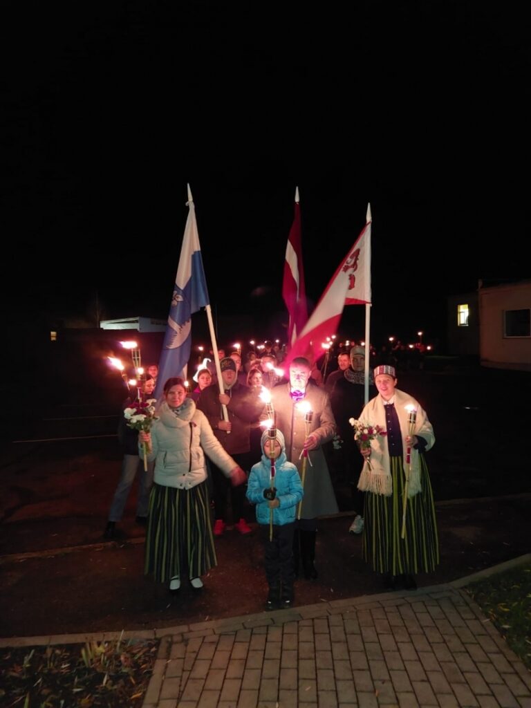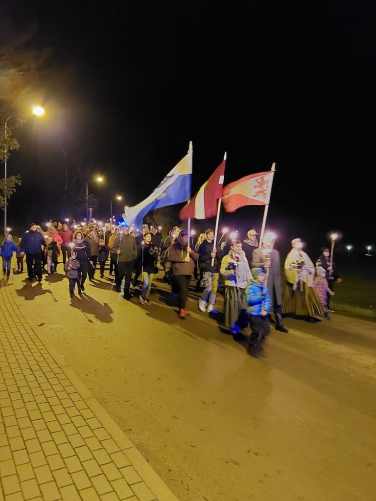 - novembrī Dienvidkurzemes novada pilsētās un pagastos dega gaišas ugunis – sveču un lāpu liesmas, un pulcējās ļaudis, lai dotos kopīgos lāpu gājienos vai vienkārši esot kopā, iededzot pa svecītei, tā godinot mūsu varoņus un pateicoties par to, ka esam brīva un neatkarīga valsts, kā arī iesvētīts un pirmo reizi pie pilsētu un pagastu pārvaldēm un citām pašvaldības iestādēm svinīgi pacelts jaunais Dienvidkurzemes novad karogs, kas turpmāk lepni plīvos karogu mastos, informē Dienvidkurzemes novada pašvaldība.
