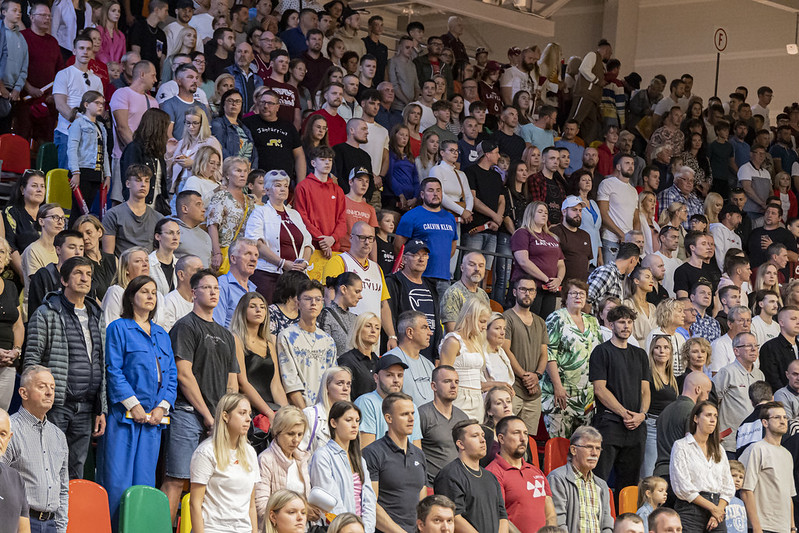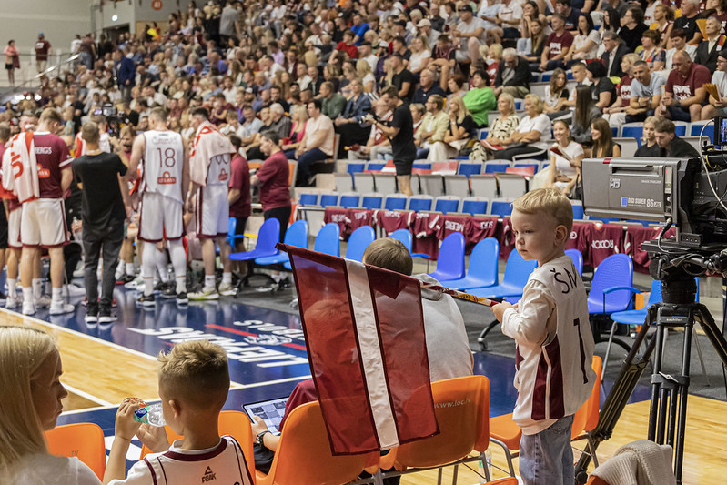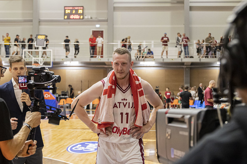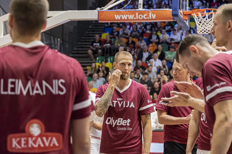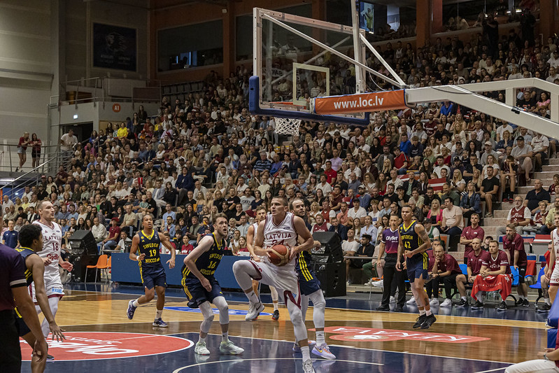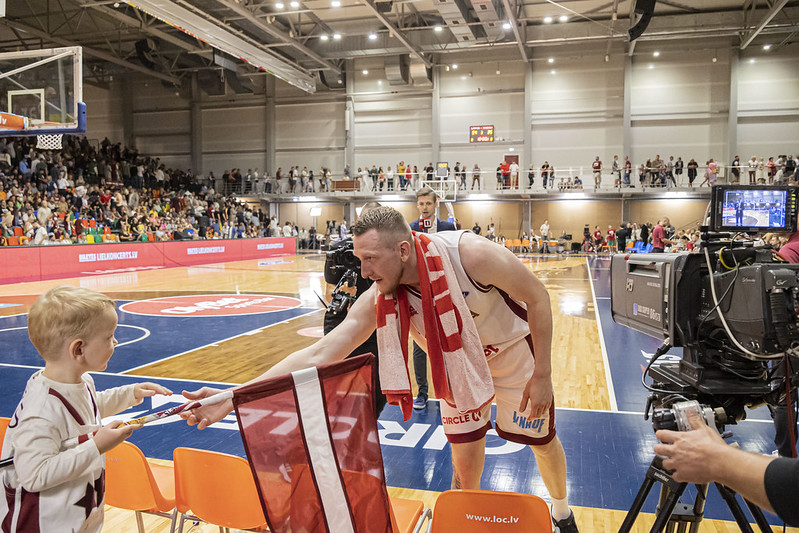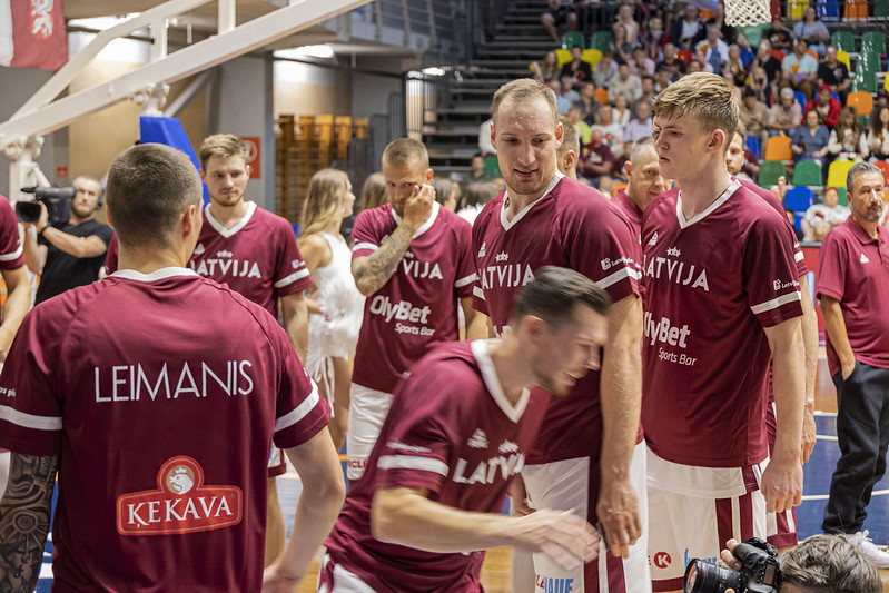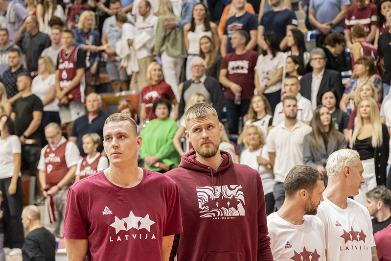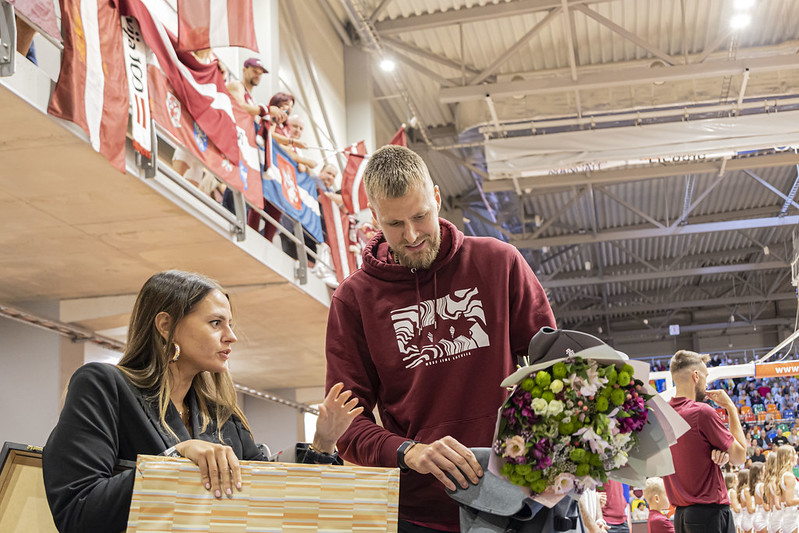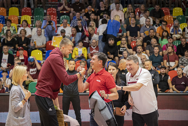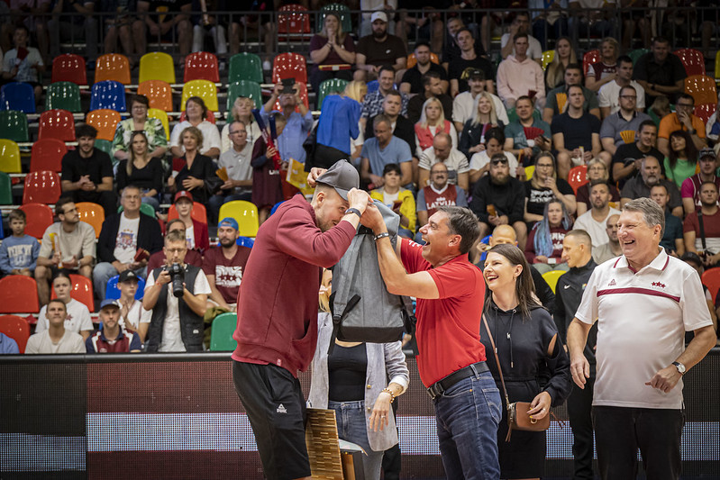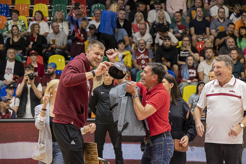 FOTO: Latvija Liepājā uzvar Zviedriju; Porziņģi sumina 28 gadu jubilejā