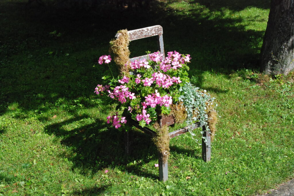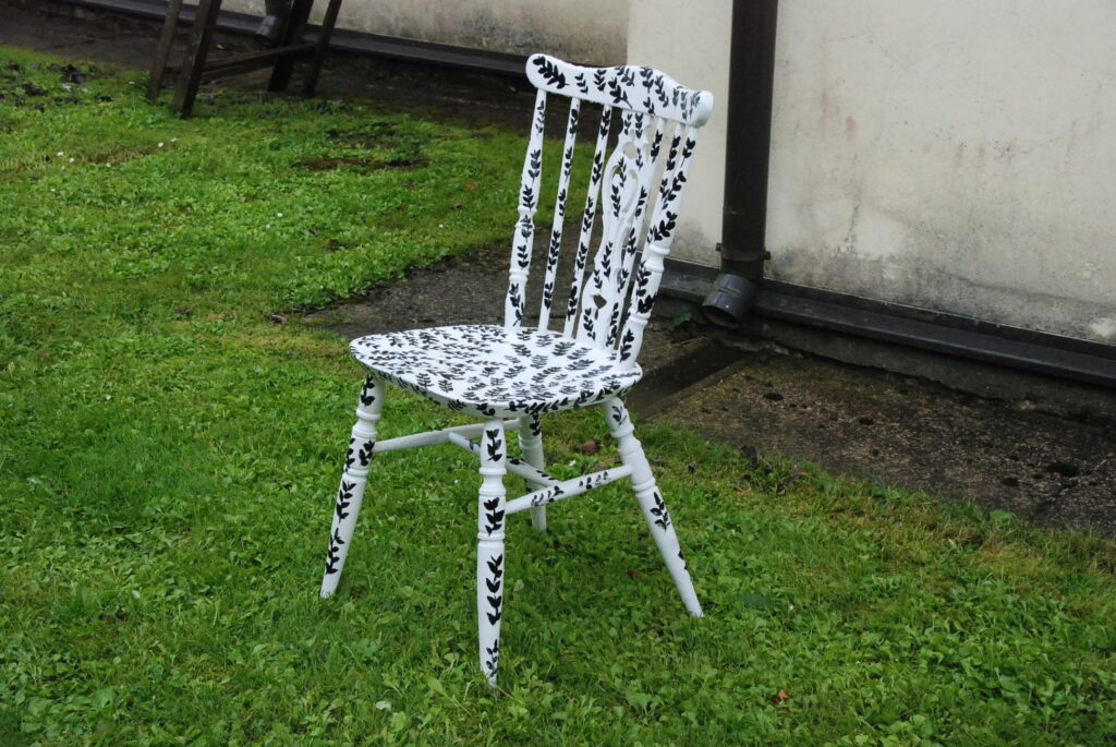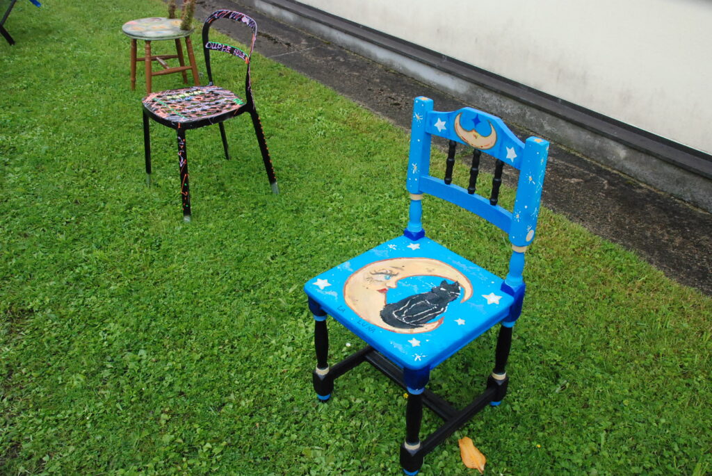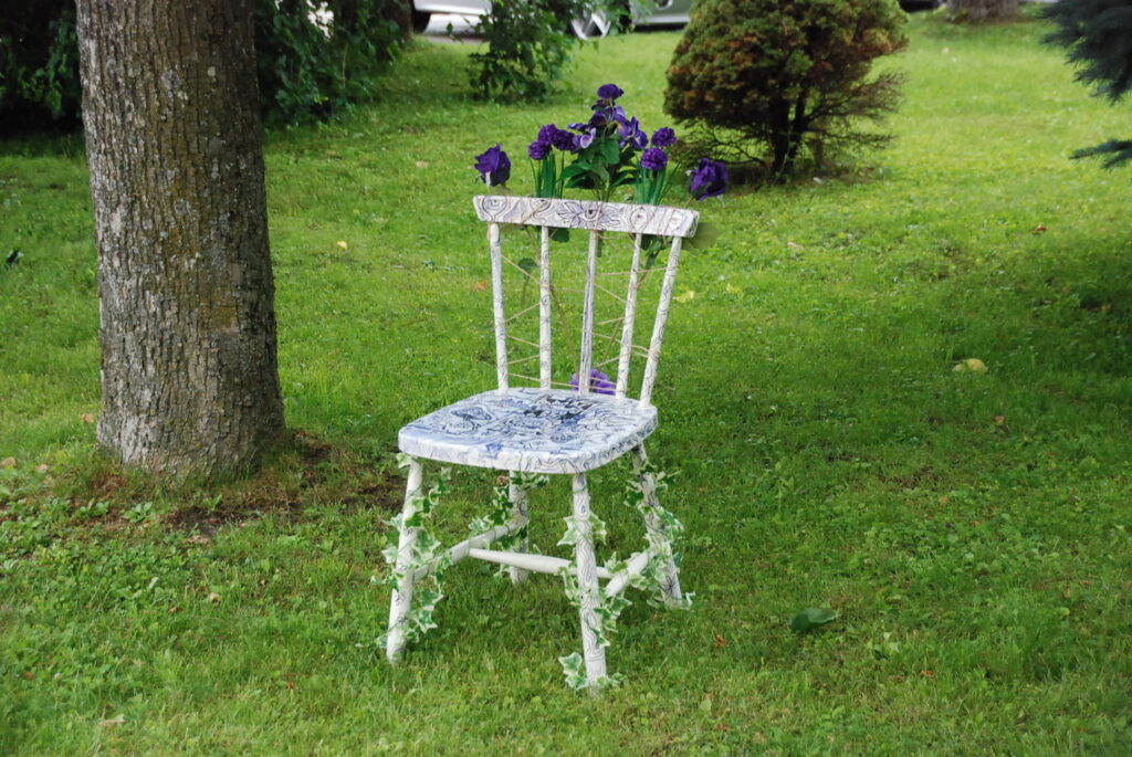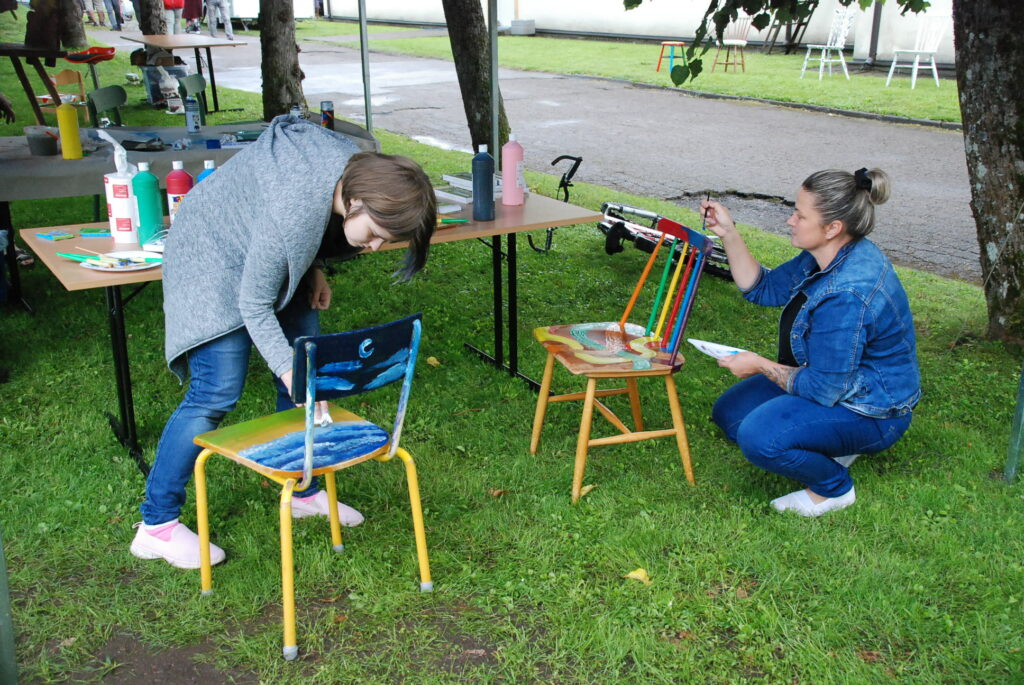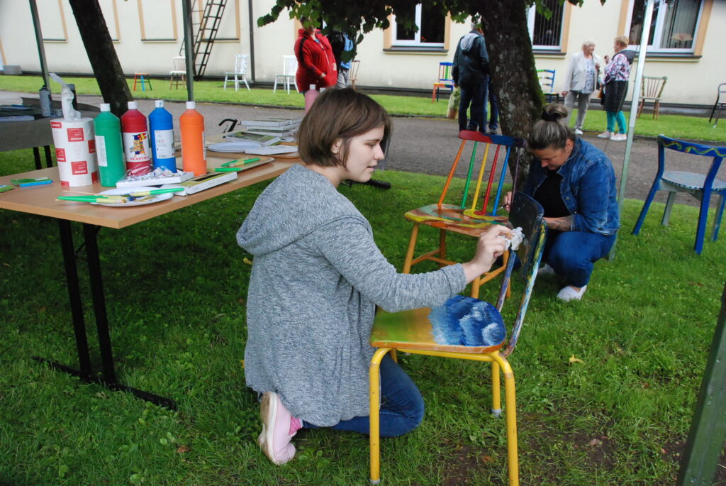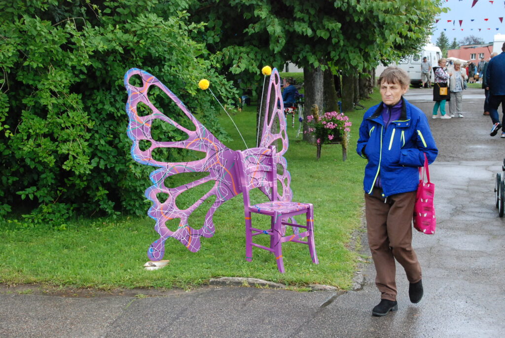 Durbes pilsētas svētkos krēslu apglezno durbeniece Inga Freimane. Foto – Uldis Dobelis