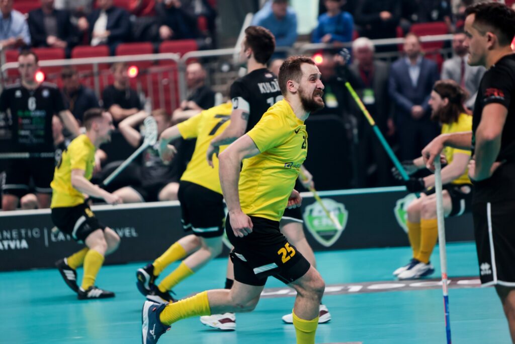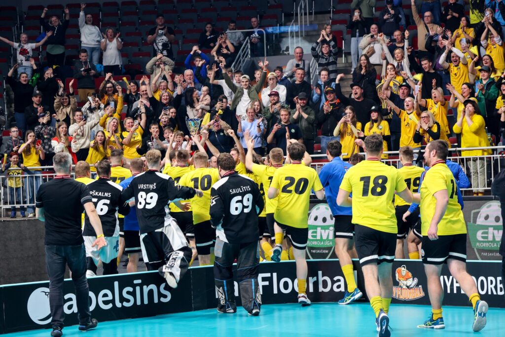 Par Latvijas čempionāta florbolā vīriešu pirmās līgas uzvarētāju sestdien, 15. aprīlī, “Arēnā Rīga” kļuva “Leģions/Grobiņas SC”, kas finālspēles pagarinājumā ar 4:3 pārspēja komandu “Kuldīga/KNSS”. Izšķirošais vārtu guvums Edgara Freimaņa kontā.