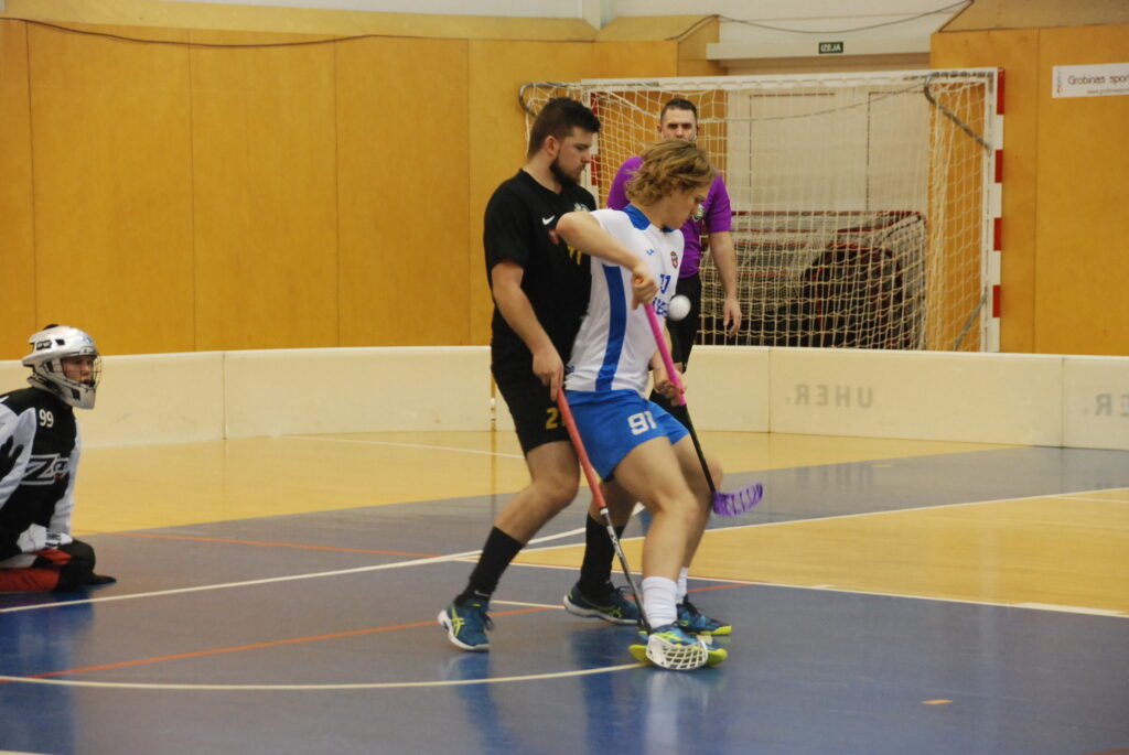 Grobiņniekiem divus vārtus guva Toms Ēvalds, bet pa vienai reizei katrs precīzi bija Kristers Osis un Rendijs Pūce, vēstīts Latvijas Florbola savienības mājaslapā.