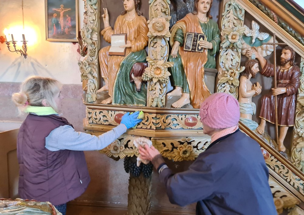 Lielajā talkā Vecpilī sestdien, 22. aprīlī, talkoja kuršu pilskalnā un Svētā Laurencija Romas katoļu baznīcā.