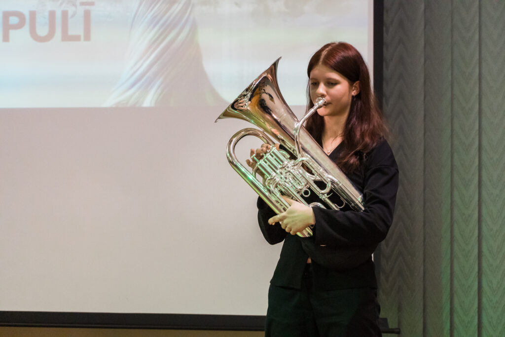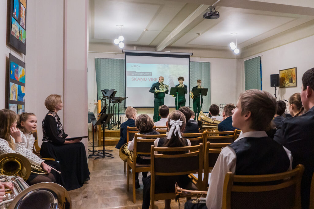 Aizvadītajā nedēļā Liepājas Mūzikas, mākslas un dizaina vidusskola sadarbībā ar biedrību “Kurzemes radošās industrijas attīstības centrs” pulcēja Liepājas reģiona mūzikas skolu audzēkņus pūšaminstrumentu spēles festivālā “Skaņu virpulī”. Šogad festivāls bija veltīts metāla pūšaminstrumentu spēlei.