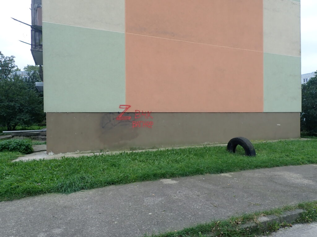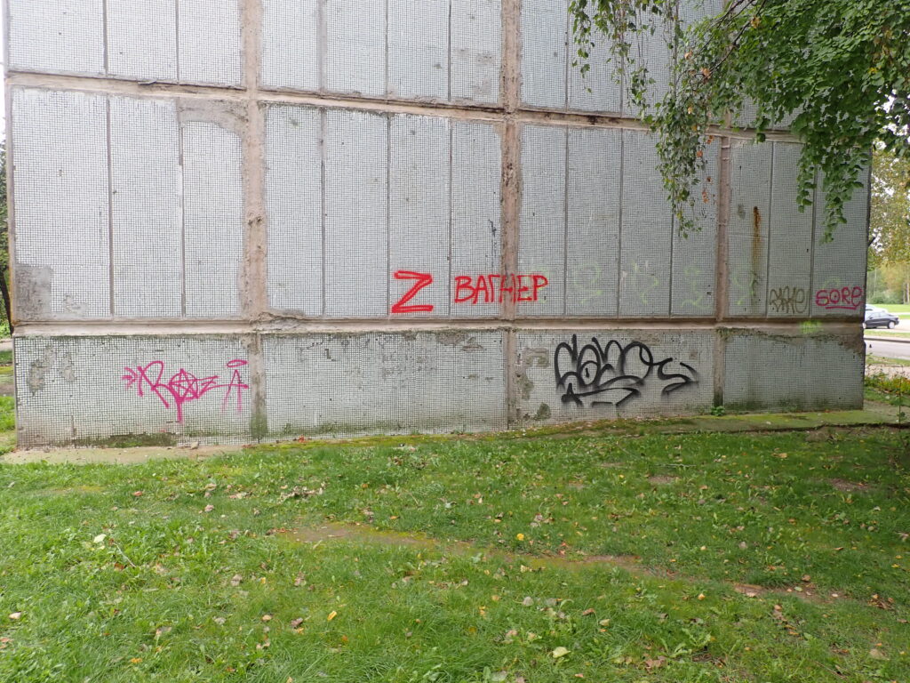 Valsts policijā saņemta informācija par to, ka Liepājā, Ģenerāļa Baloža ielā 11, 13, 17 un 19 ir uzkrāsota militārās agresijas un kara noziegumu slavinoša simbolika – burti “Z” un uzraksts “VAGNER”.