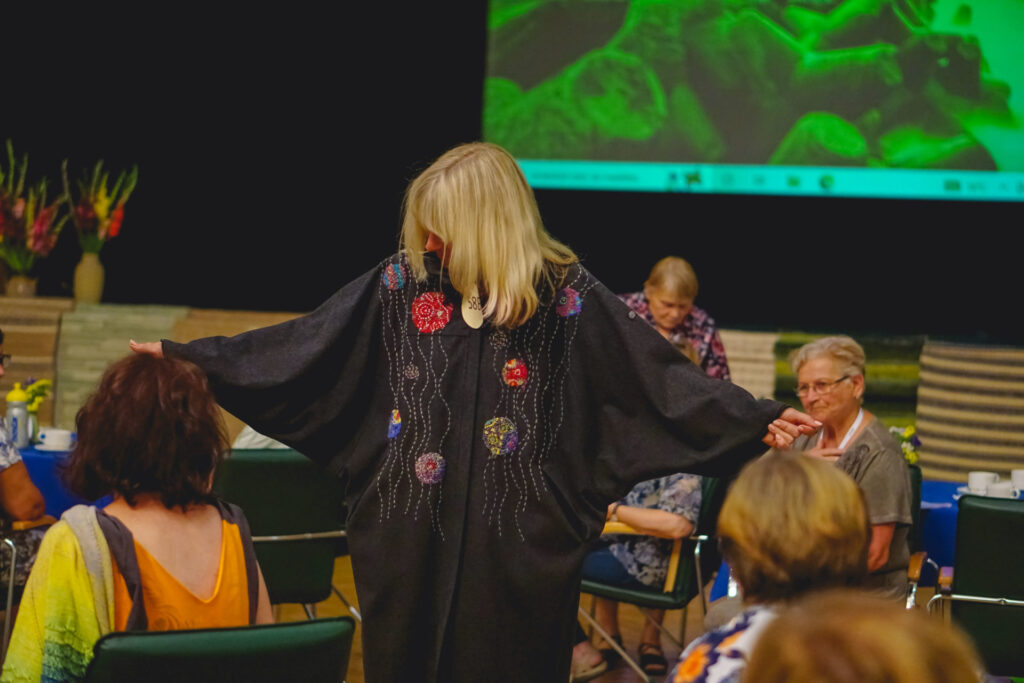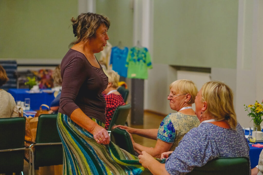 Rokdarbi ir ilgstoši sēdoša nodarbe, tāpēc rīkotāji bija padomājuši arī par fiziskām aktivitātēm. Projektu vadītāja Liene Šnipke, kura pati ir sportiska un aktīva dzīvesveida piekritēja, saieta dalībniecēm bija noorganizējusi sportisku pauzi treneres Daces Dieviņas vadībā. Šajā nodarbībā rokdarbnieces izkustējās un apguva dažādus noderīgus vingrojumus fiziskās veselības uzlabošanai un uzturēšanai.