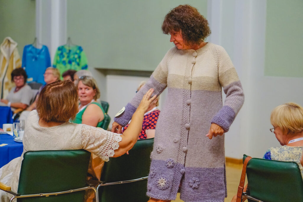 Rokdarbnieces rādīja arī savu veikumu ekspresizstādē, kurā bija skatāmi cimdi, zeķes, cepures, linu dvieļi, jostas, dažādas sedziņas, izšūti krekli, aubes, priekšauti, adīti un tamborēti lakati, dažādi austi audumi un paklāji, krēslu paliktņi, adīti un austi spilveni, apģērbu komplekti, somiņas un daudz citu skaistu darinājumu. Iedvesmojoša un interesanta bija modes skate, kurā pašas autores demonstrēja savus darinājumus un notika balsošana par interesantāko tērpu. Pašdarināto tērpu skatē “Manis paša radīts…” lielāko popularitāti balsotāju vidū ieguva pašdarināti mēteļi – 3. vieta tika Ilzei Pūpoliņai no Kuldīgas, otrajā vietā ventspilniece Ina Dātava ar lina kleitu un tamborētu mēteli, bet uzvaras laurus plūca vēl viena ventspilniece – Liga Muižarāja ar izšūtu džinsa auduma mēteli. “Šī mums bija lieliska iespēja būt kopā ar līdzīgi domājošiem, apgūt ko jaunu, iedvesmoties un dibināt kontaktus”, iespaidos dalījās saietā sastaptās rokdarbnieces.