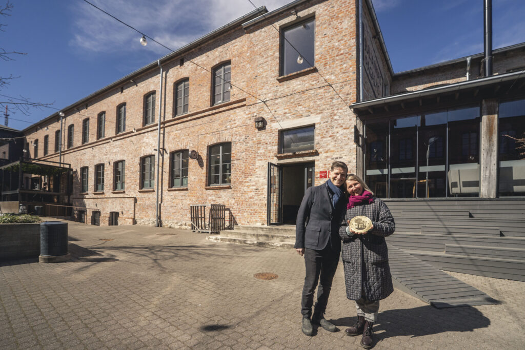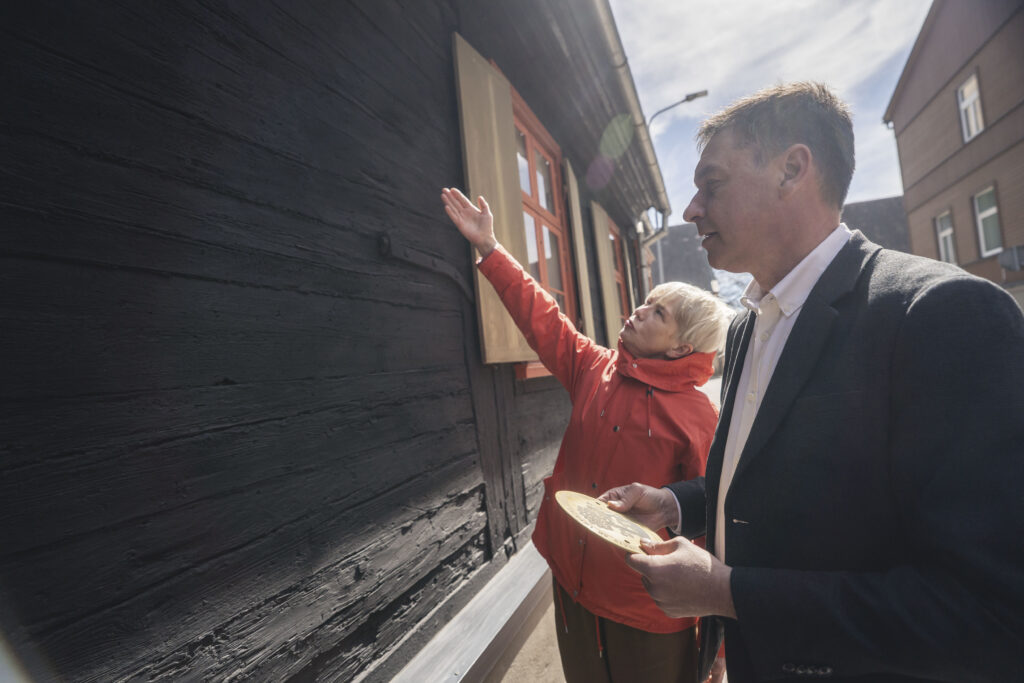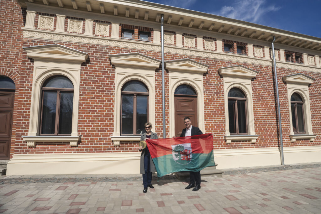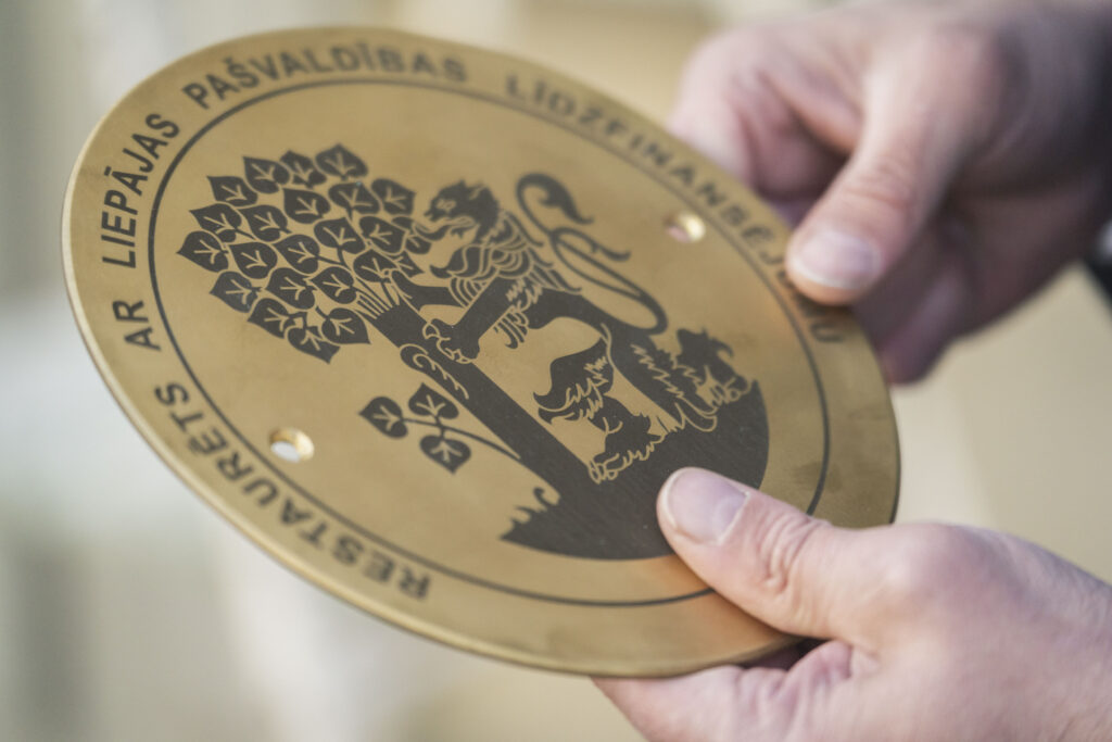 Ēku īpašnieki saņēma Liepājas pilsētas karogu un Reiņa Kuncīša darināto misiņa plāksni, kas apliecina realizēto pašvaldības finansējuma daļu un godina īpašnieku ieguldījumu Liepājas vēsturisko vērtību saglabāšanā un atjaunošanā.