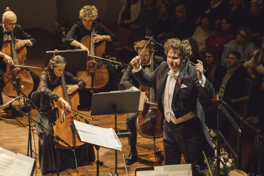 Vērienīgā programma tika atklāta ar atmodas laikā tapušo Ādolfa Skultes Devīto simfoniju, kura tiek uzskatīta par komponista daiļrades vainagojumu. Pats autors tai devis pavārdu “Dramatiskā”. Un šeit klausītājam bija iespēja saklausīt piesātinātas orķestra krāsas, bangojošu jūru, enerģētiskumu un sirdspukstu motīvus, kas atspoguļo tā laika notikumus.