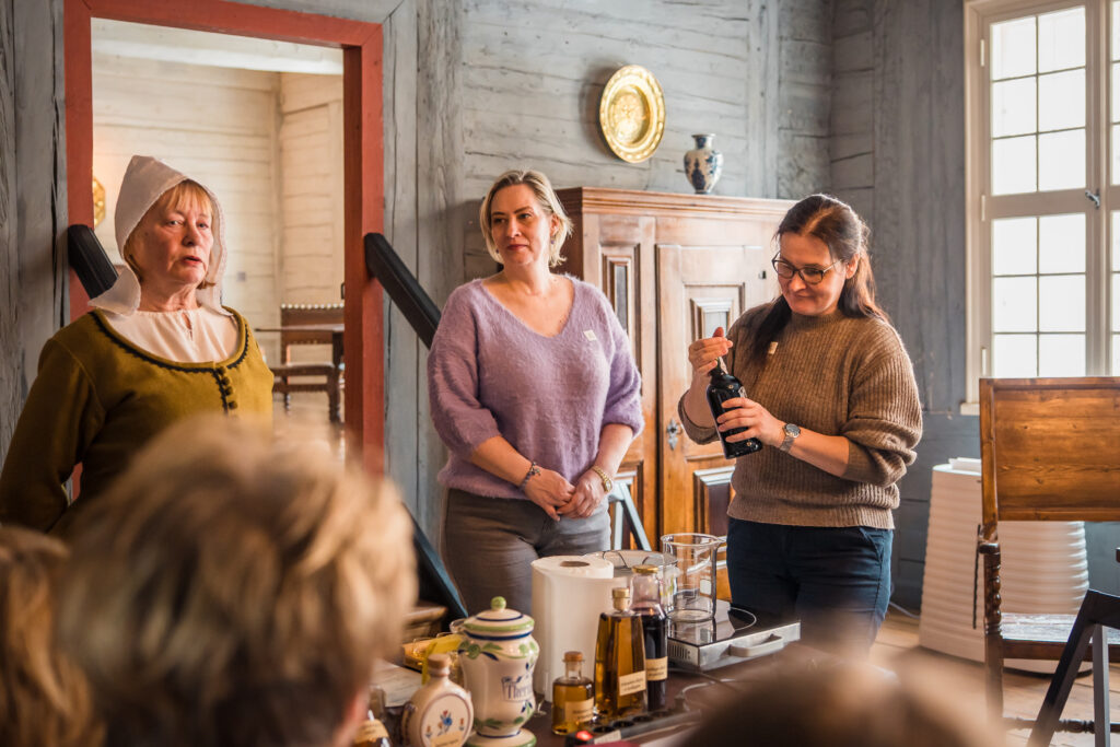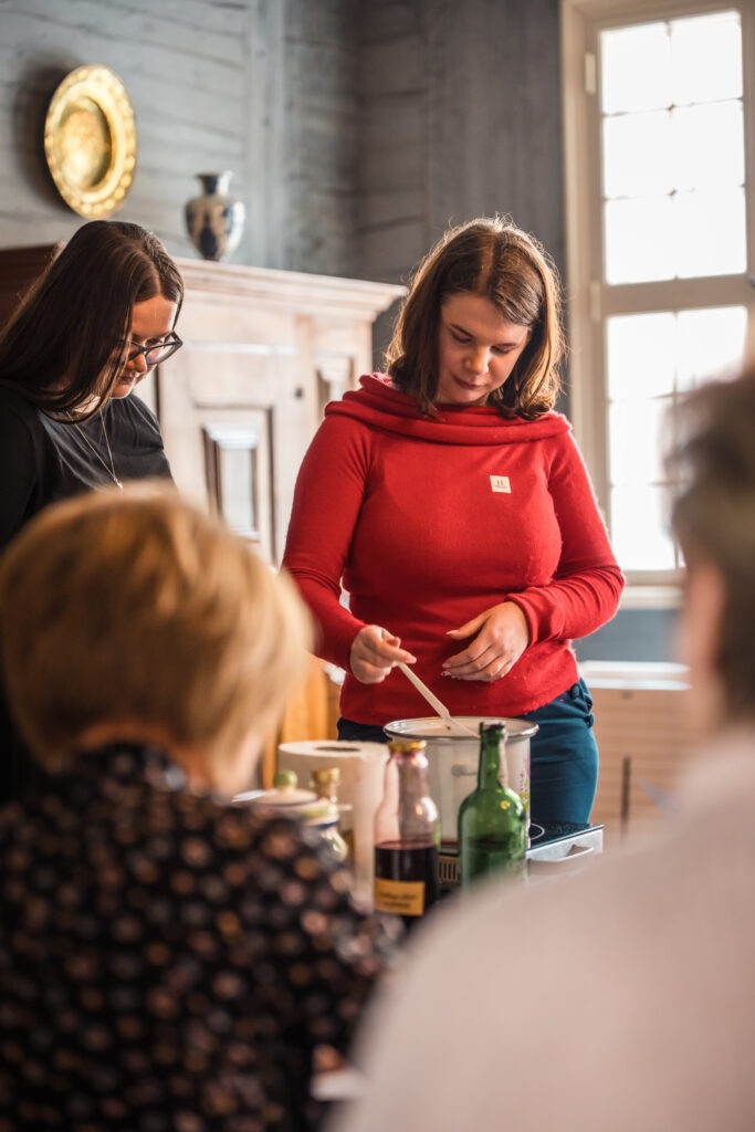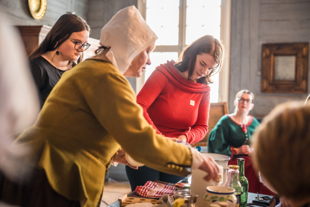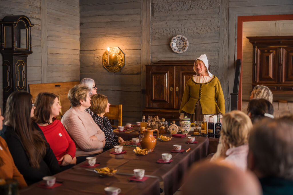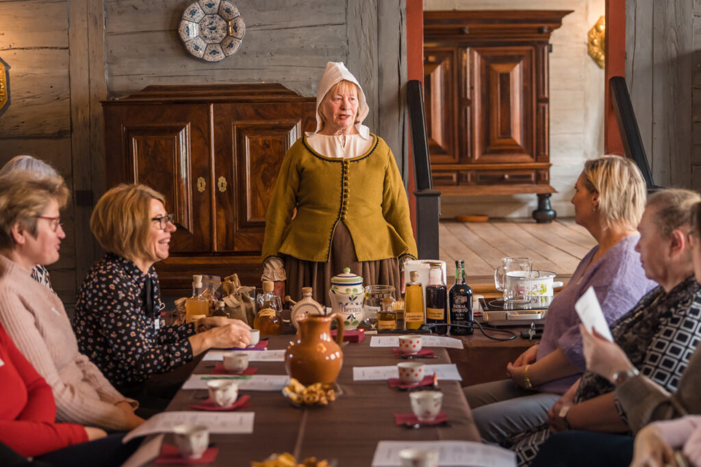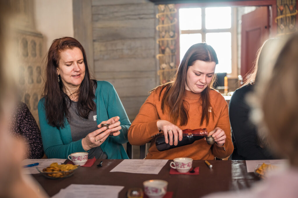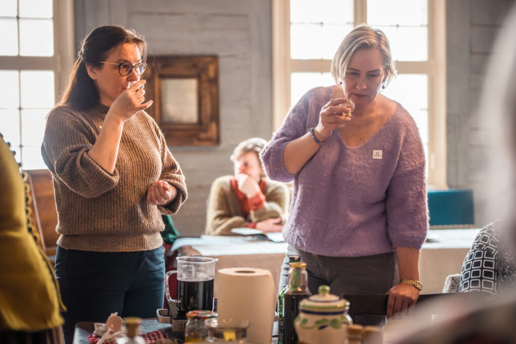 “Holandiešu veselības eliksīru” darbnīcā dalībniekiem bija iespēja uzzināt, kā mūsdienās mājas apstākļos gatavot veselības tonikus, kuru pamatā ir vēsturiskās receptes un eliksīru pagatavošanas tehnoloģijas. Klātesošajiem bija iespēja pagatavot un nogaršot kopumā septiņu veidu veselības eliksīrus, kuru gatavošanā izmantotas ogas, ziedi un garšvielas, tostarp holandiešu eliksīru ar kadiķogām, teriaku, kadiķu eliksīru ar plūškoku. muskatvīnu, kā arī citus, portālu “ReKurZeme” informē Liepājas muzeja struktūrvienības Liepājas 17.-19.gs. interjera muzejs “Hoijeres kundzes viesu nams” vadītāja Ieva Dzintare.