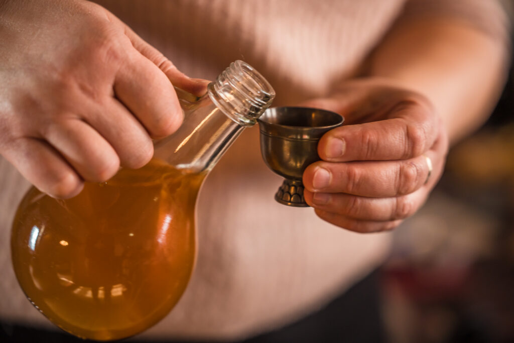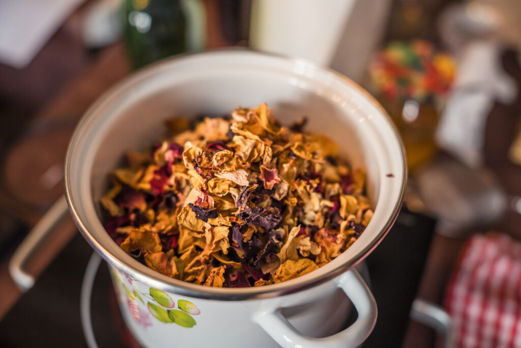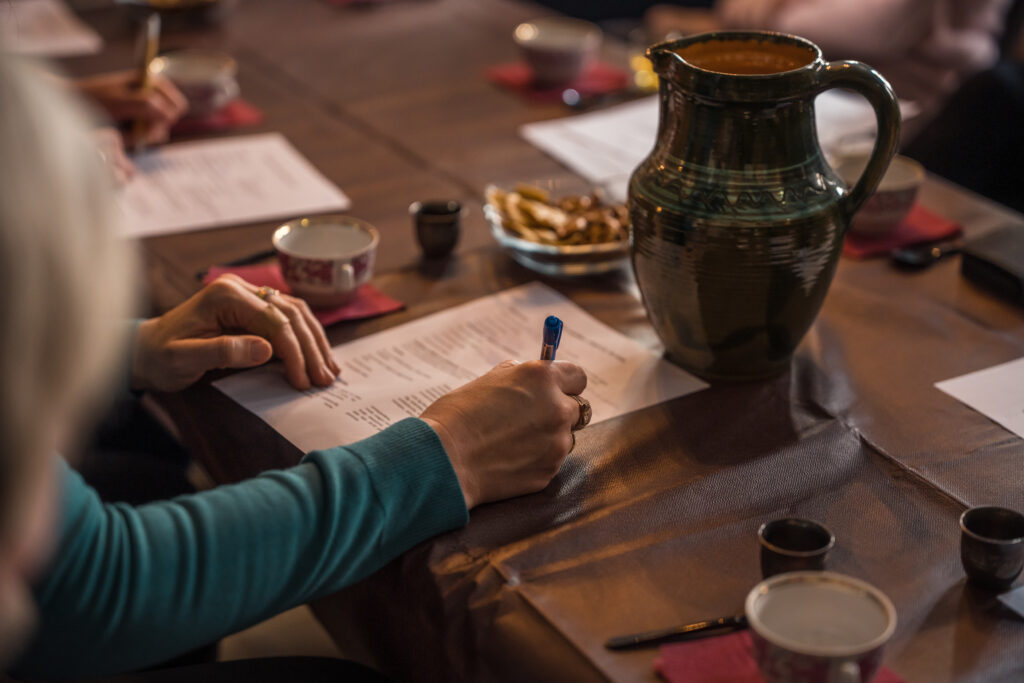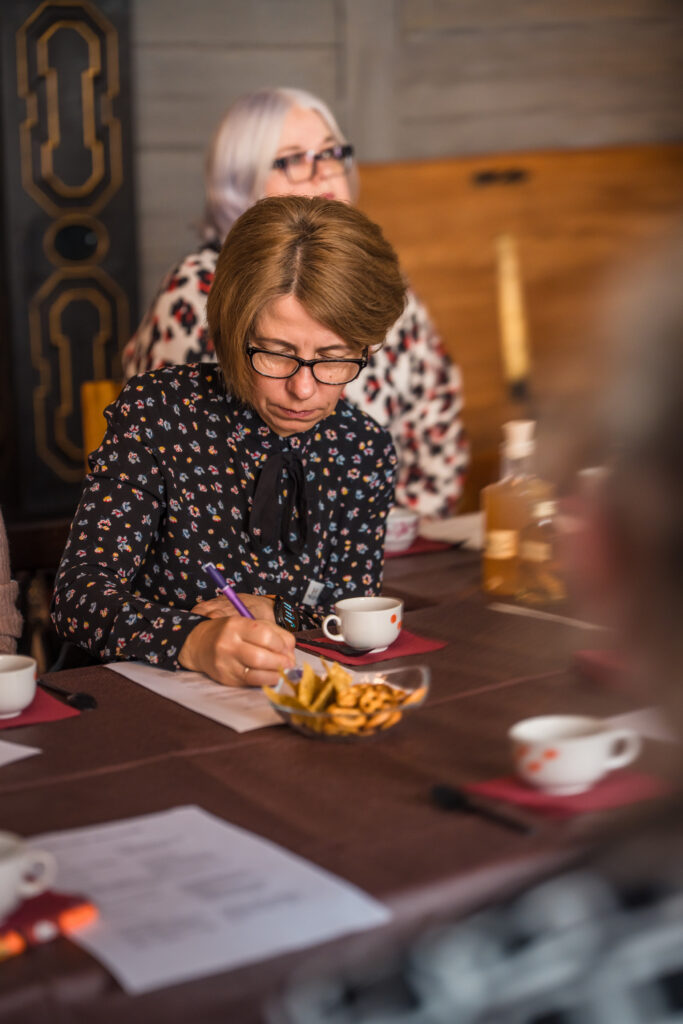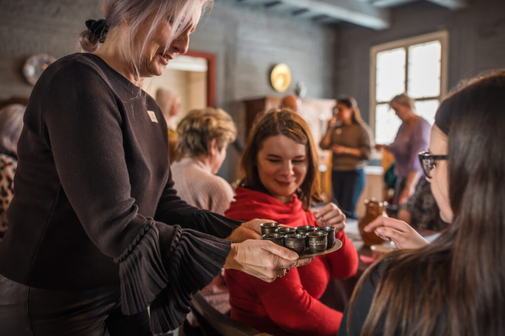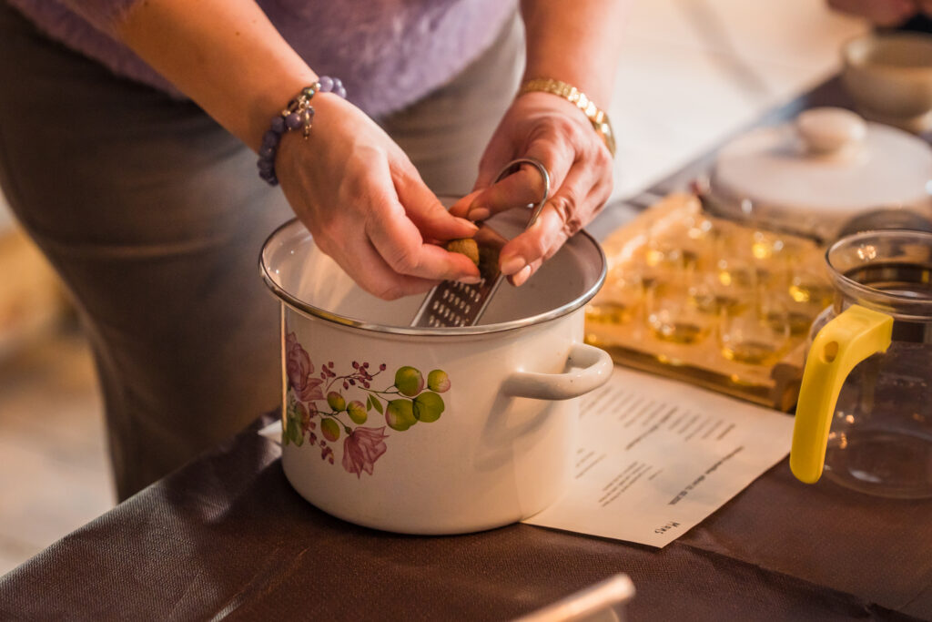 “Holandiešu veselības eliksīru” darbnīcā dalībniekiem bija iespēja uzzināt, kā mūsdienās mājas apstākļos gatavot veselības tonikus, kuru pamatā ir vēsturiskās receptes un eliksīru pagatavošanas tehnoloģijas. Klātesošajiem bija iespēja pagatavot un nogaršot kopumā septiņu veidu veselības eliksīrus, kuru gatavošanā izmantotas ogas, ziedi un garšvielas, tostarp holandiešu eliksīru ar kadiķogām, teriaku, kadiķu eliksīru ar plūškoku. muskatvīnu, kā arī citus, portālu “ReKurZeme” informē Liepājas muzeja struktūrvienības Liepājas 17.-19.gs. interjera muzejs “Hoijeres kundzes viesu nams” vadītāja Ieva Dzintare.
