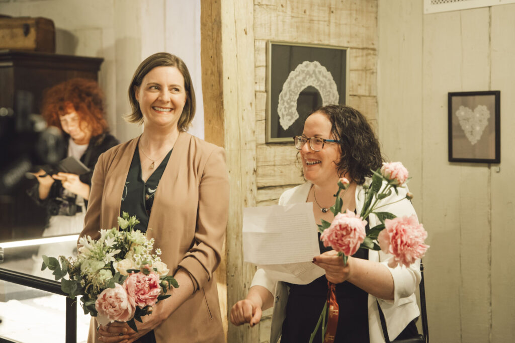Īrijas vēstniece pauda prieku par izstādes iekārtojumu un dalījās atmiņās, kā pirms aptuveni diviem gadiem, kad Liepājas vizītes laikā apmeklējusi toreiz nule kā atvērto “Hoijeres kundzes viesu namu”, radusies iecere par šādas izstādes rīkošanu.