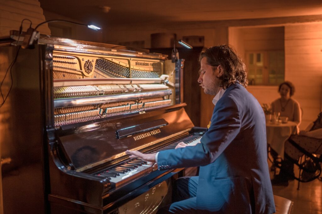 Pasaulē pieprasītais latviešu pianists muzicēja pie interjera muzejā esošajām “Diedrichs Frères” klavierēm, kuru ražošana datējama ar 20. gadsimta sākumu. Instruments savulaik piederējis Liepājas teātra direktoram (no 1967. līdz 1991. gadam) Voldemāram Pūcem un šobrīd ir daļa no jaunajā muzejā apskatāmā interjera.